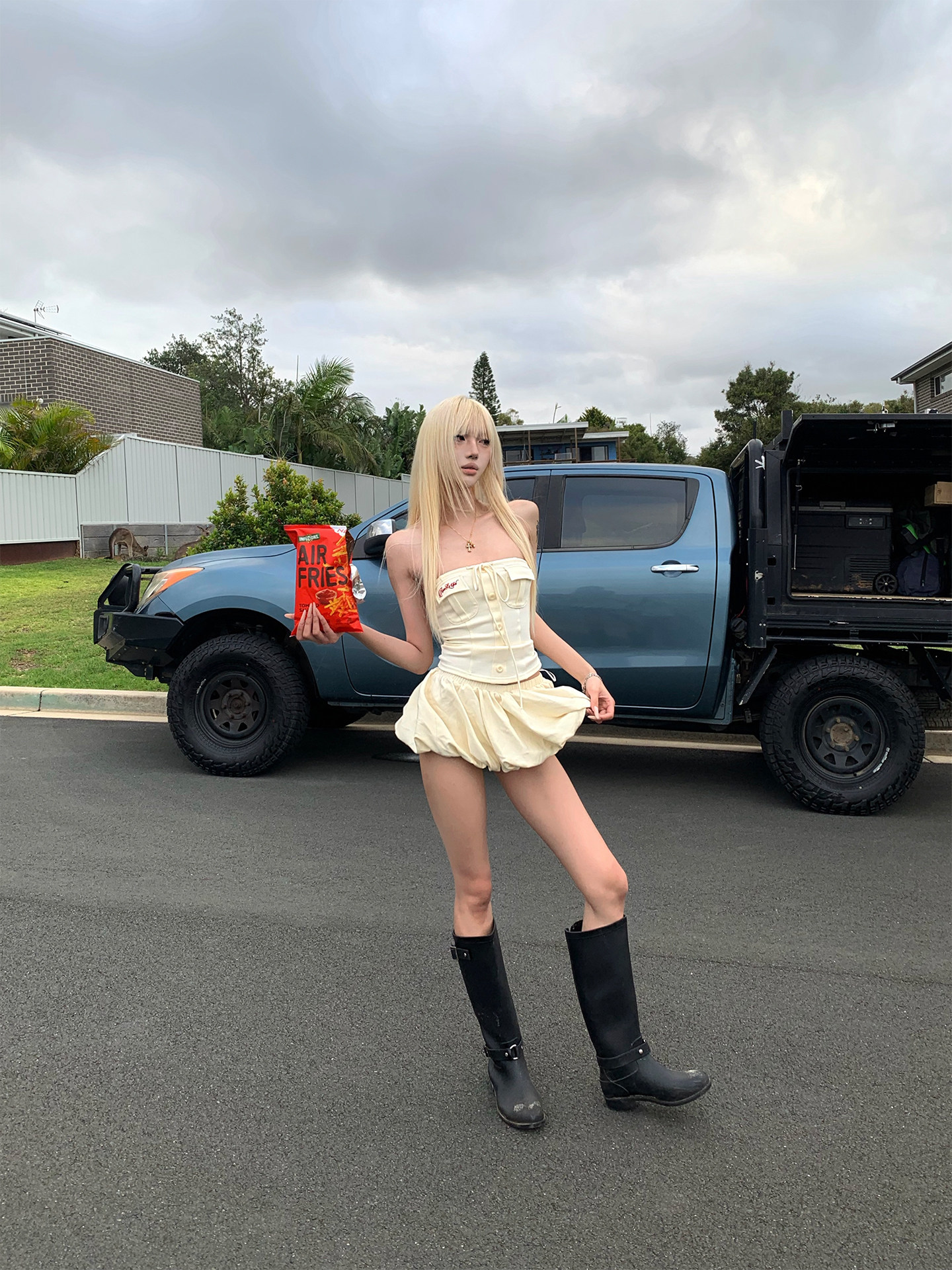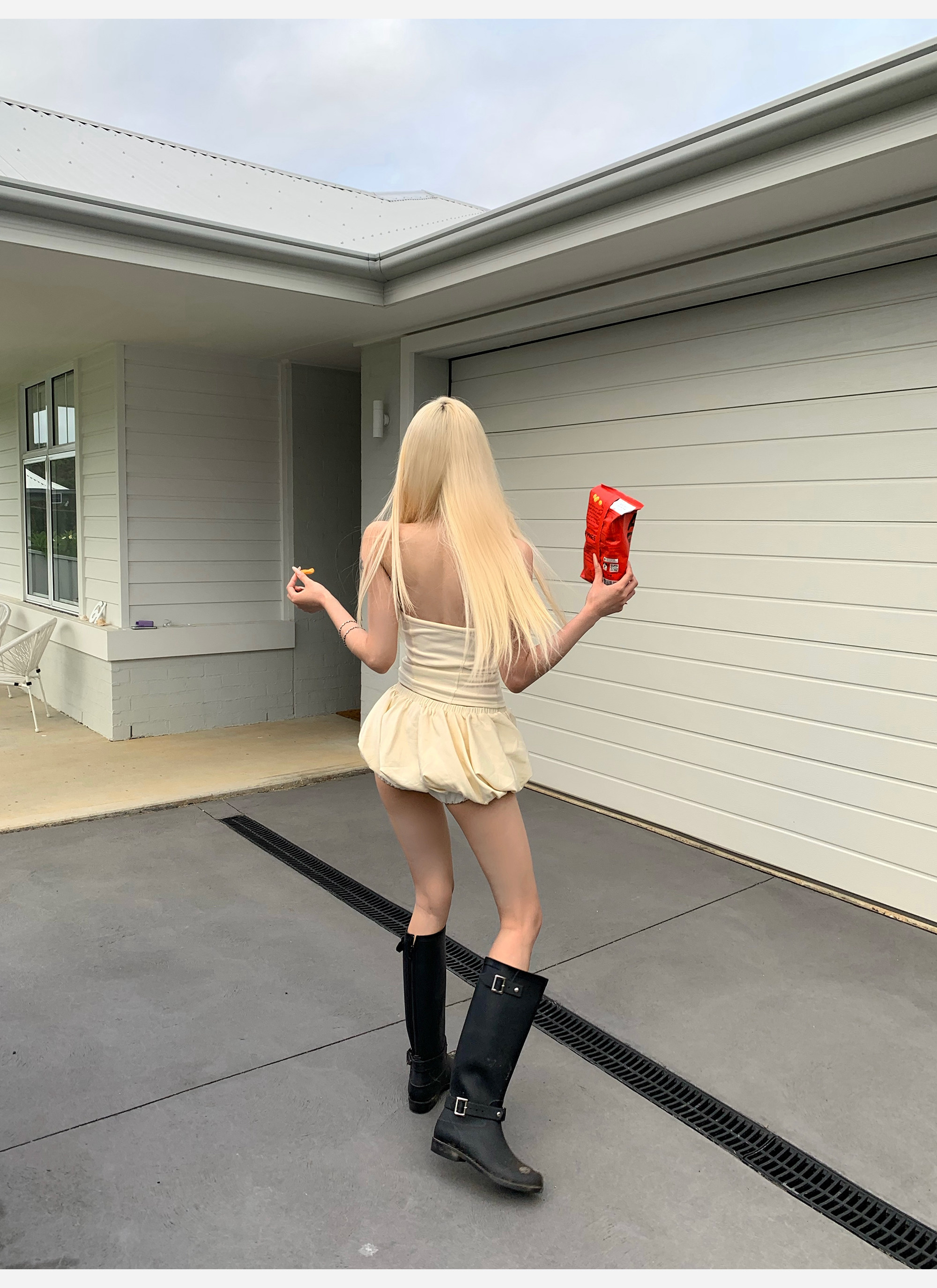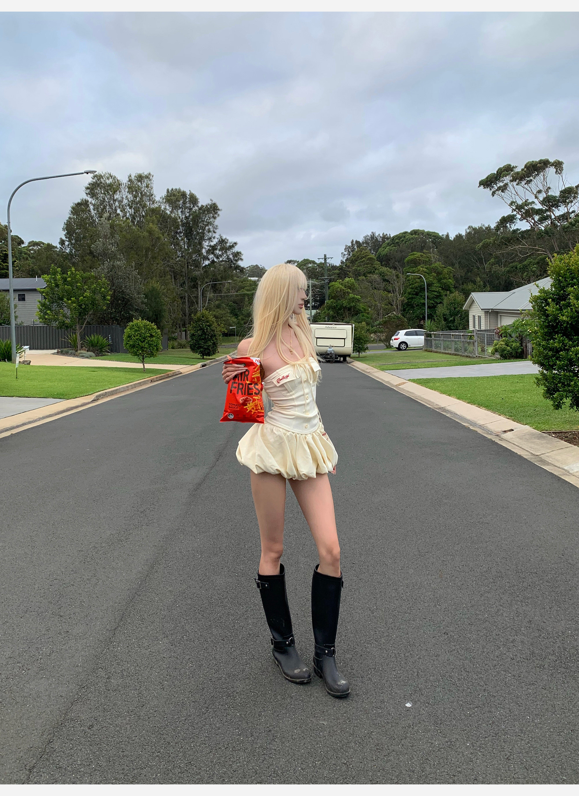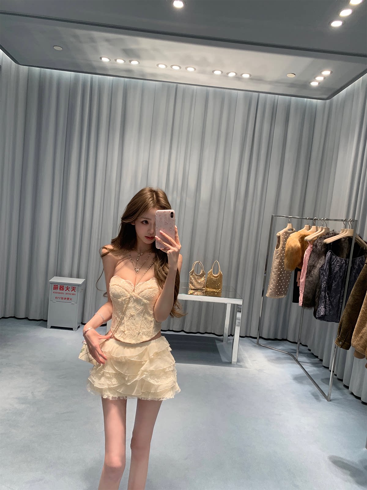 joykiki 튜브탑 맨위 여성 순수한 욕망 바람 코르셋 퍼프 미니 스커트 하이웨이스트 슬림해 보이는 디자인 반신 치마 세트