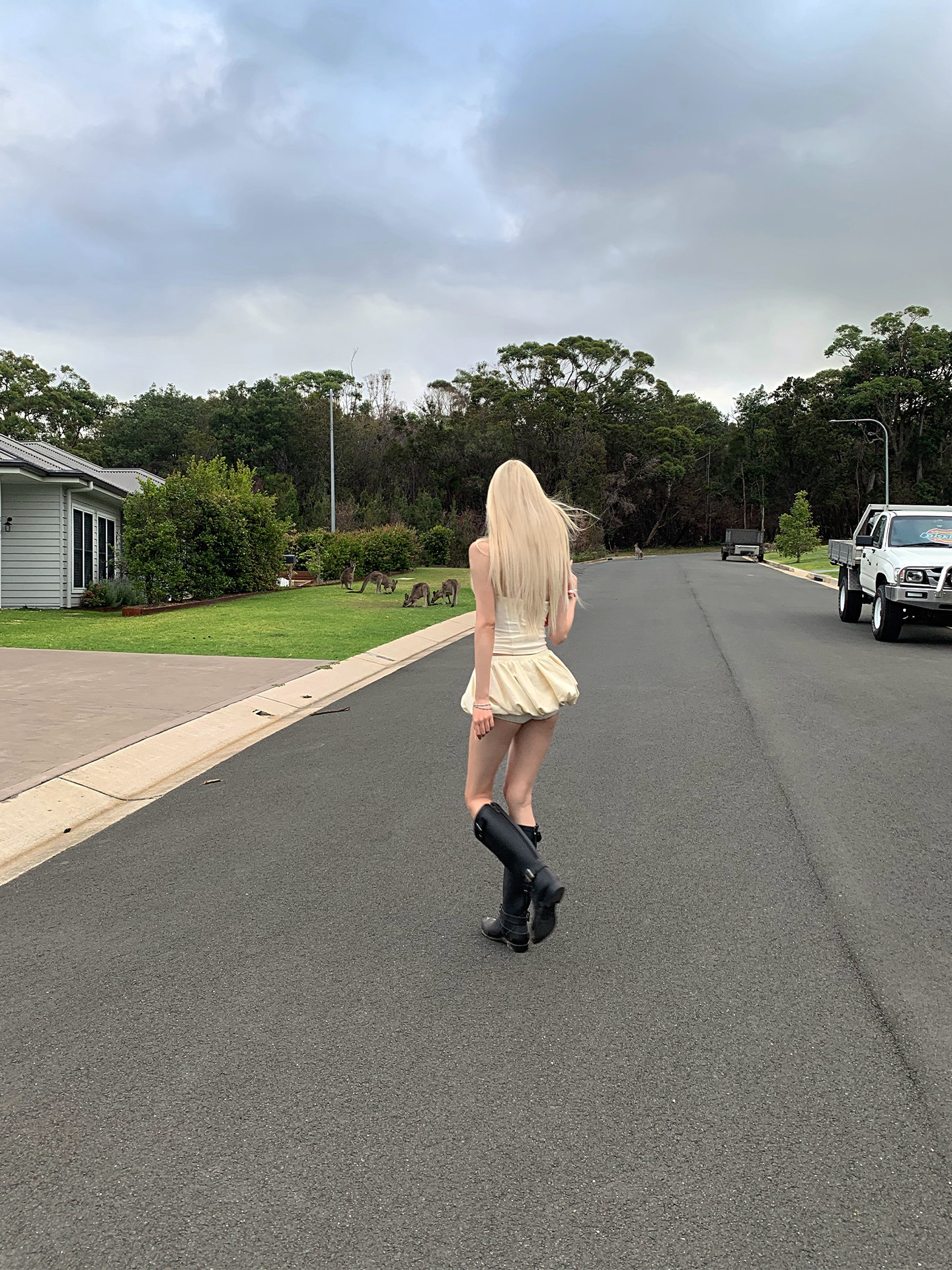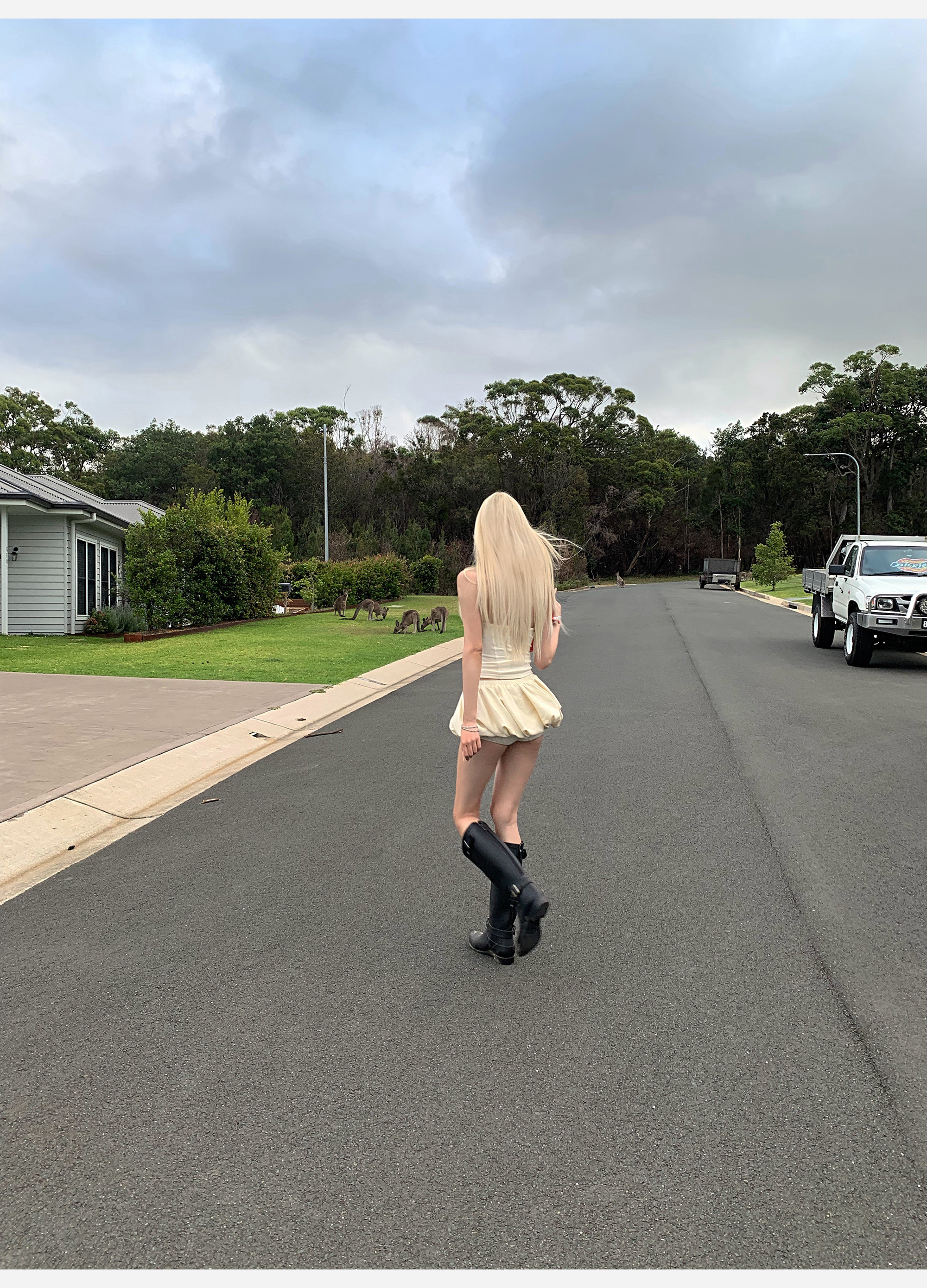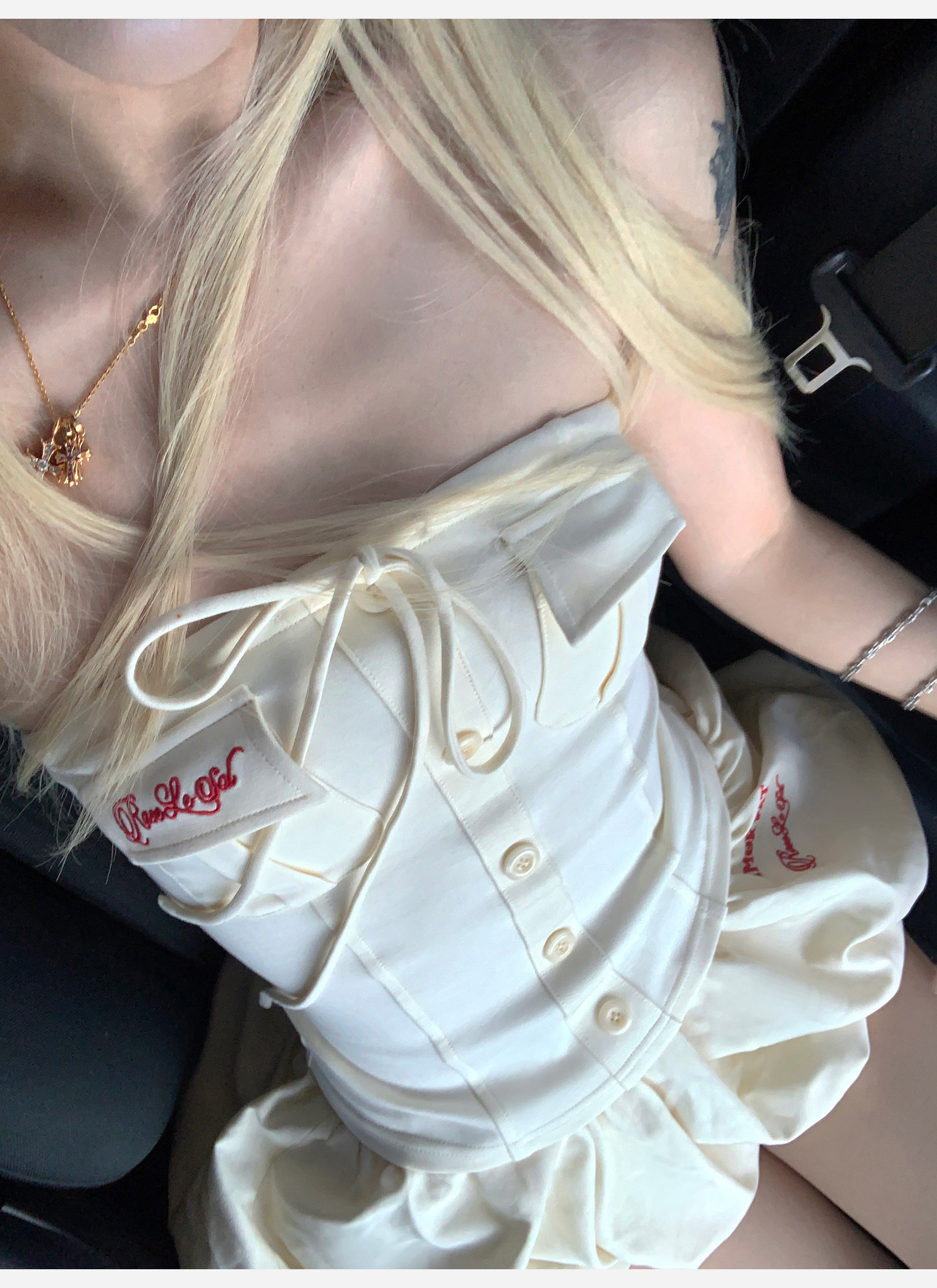 bb blue 화이트 파우더 가을 사쿠라 프랑스식 달콤함 품격 허리 수축 민소매 그라데이션 고급 센스 중간 길이 행사 치마 여성