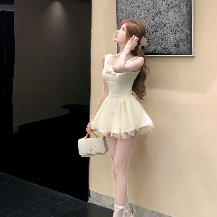그리드 새싹 소녀 린 린 있음 바쁜 귀여운 소녀 바람 몸매 가꾸기 슬림해 보이는 레이스 레이스 절묘한 투피스 세트
