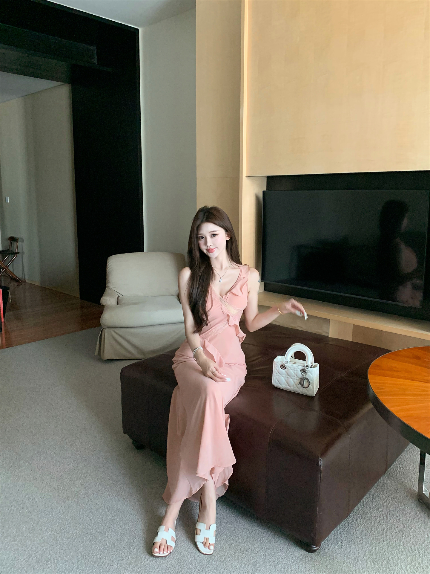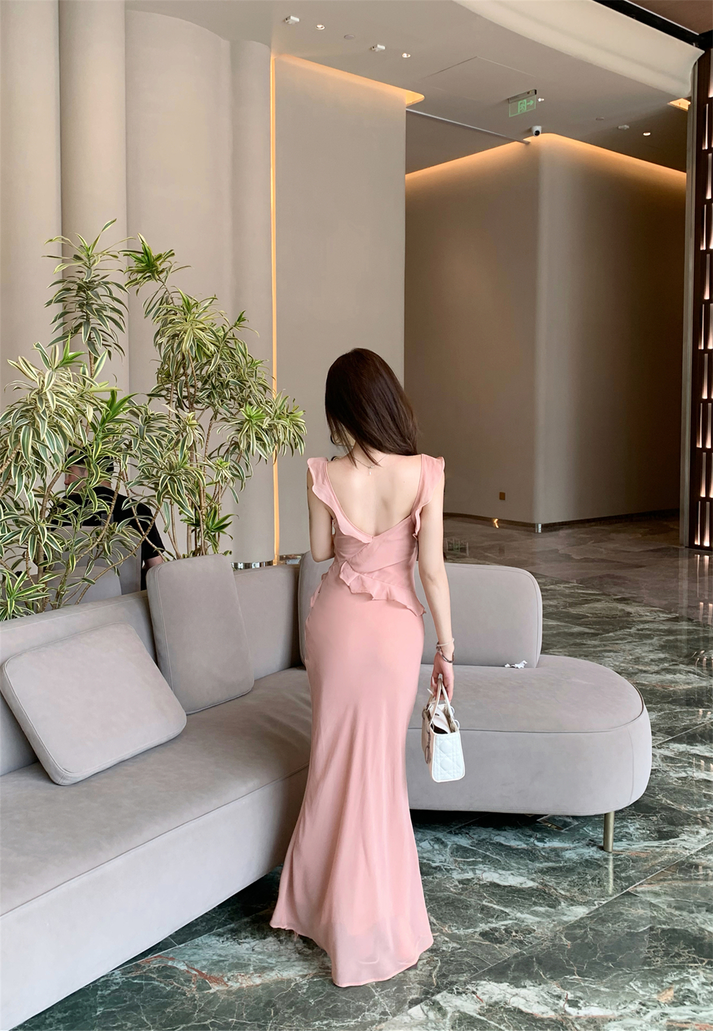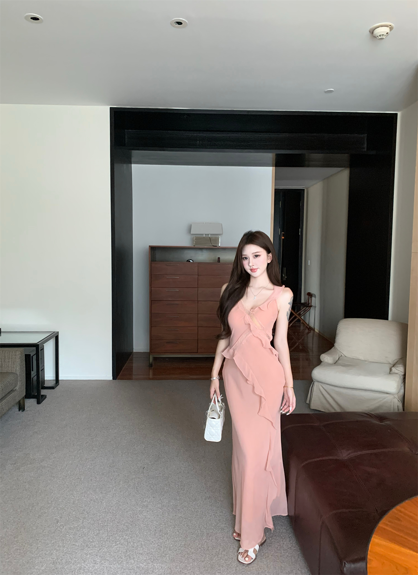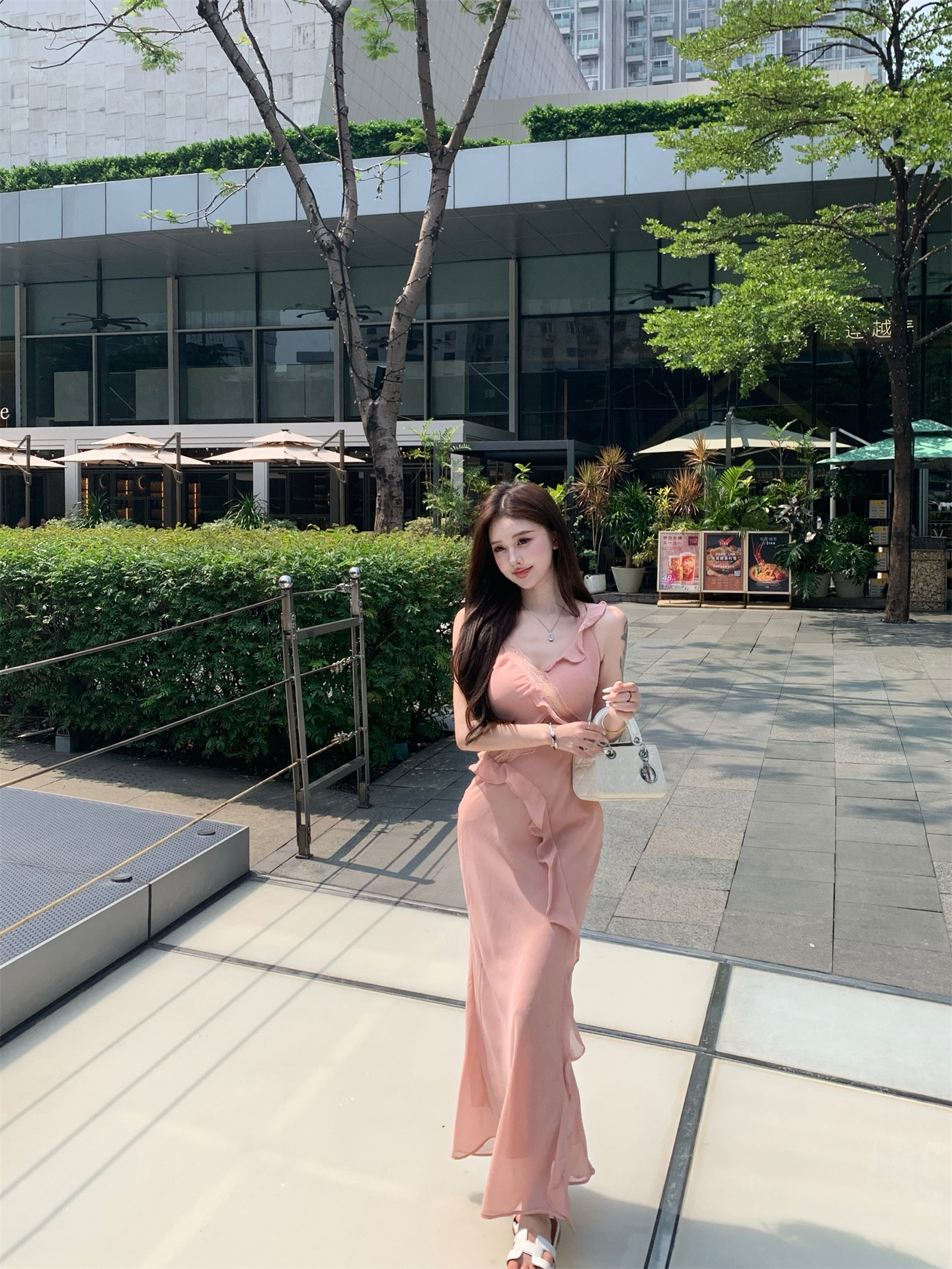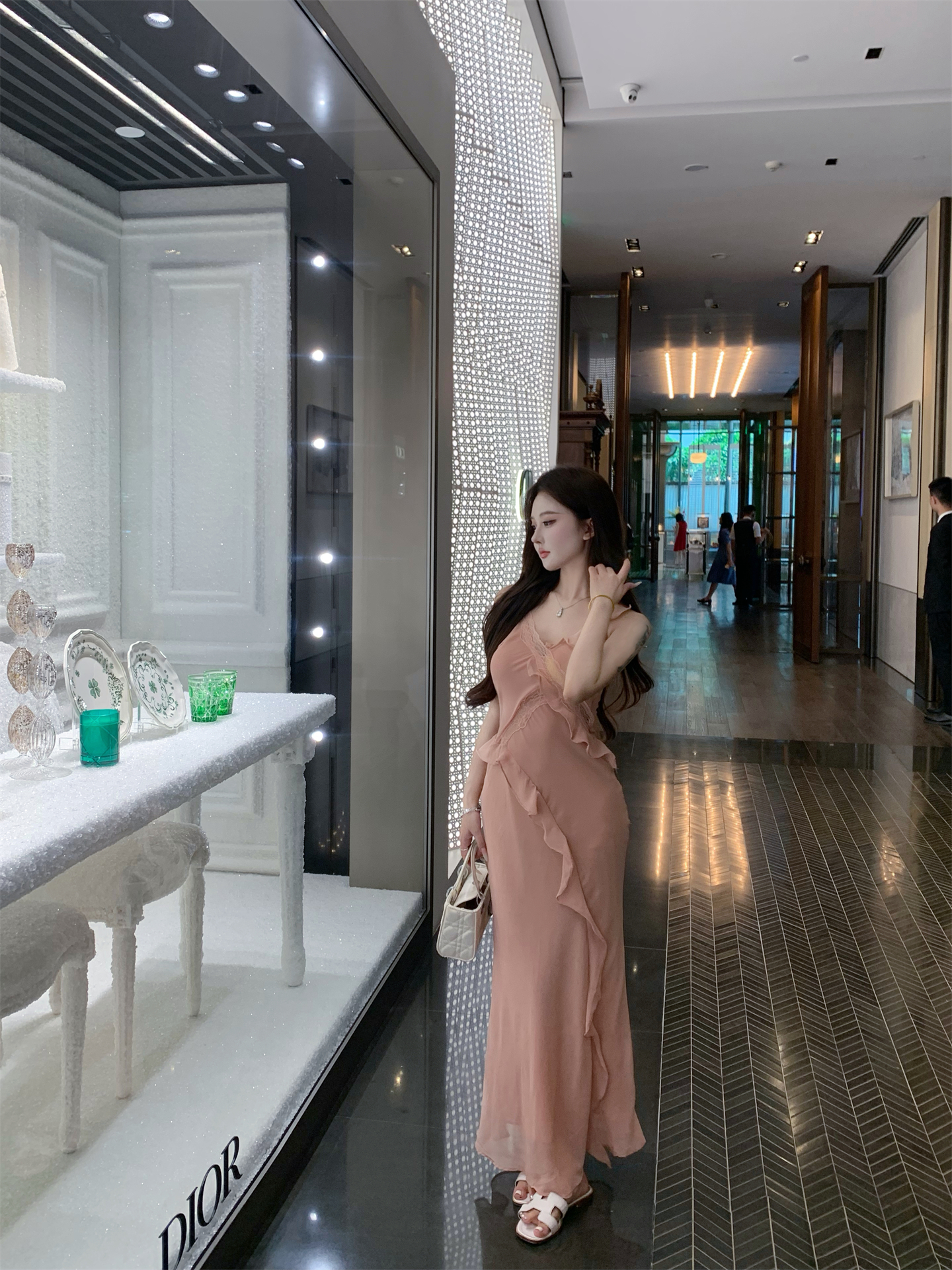 실사 청각 장애인 아니요 자기 인식 프랑스식 우아함 프릴 쉬폰 레이스 슬립 점프 슈트 롱 스커트 여성