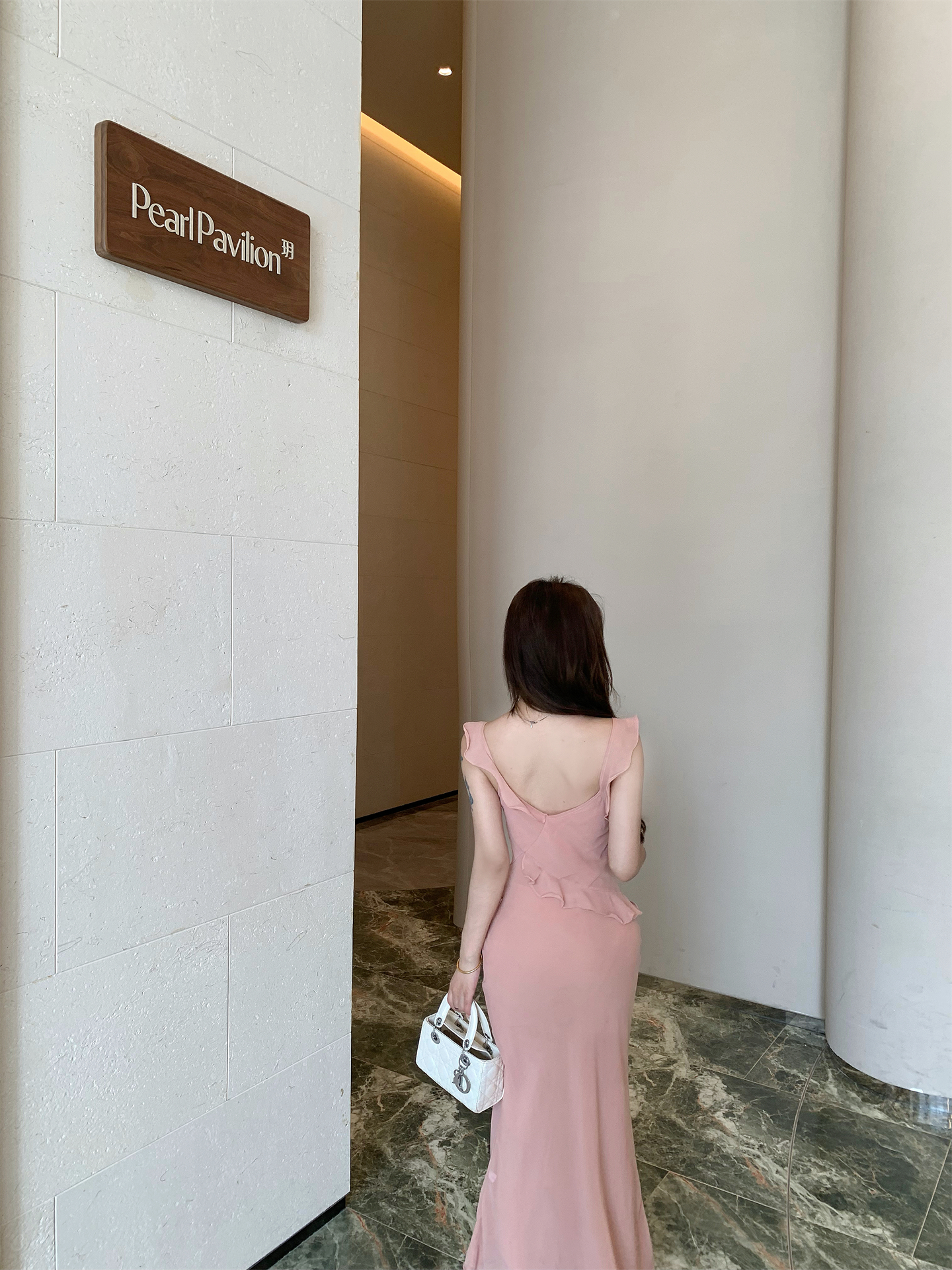 실사 자오 이슬 생각하기 같은 단락 여성 드레스 여름 프랑스식 오프숄더 고급 센스 튜브탑 아름다운 스타 분말 롱 스커트