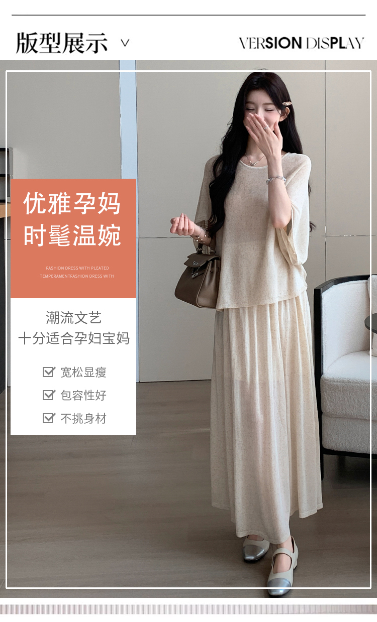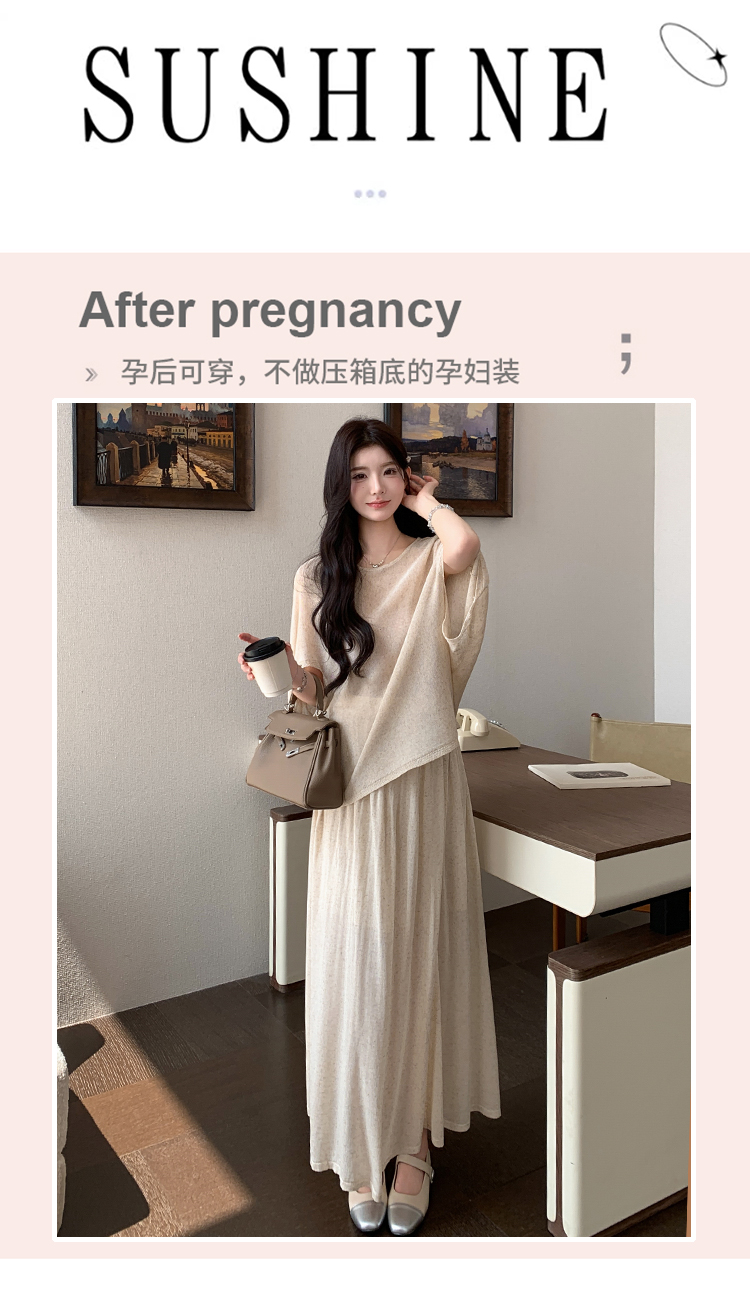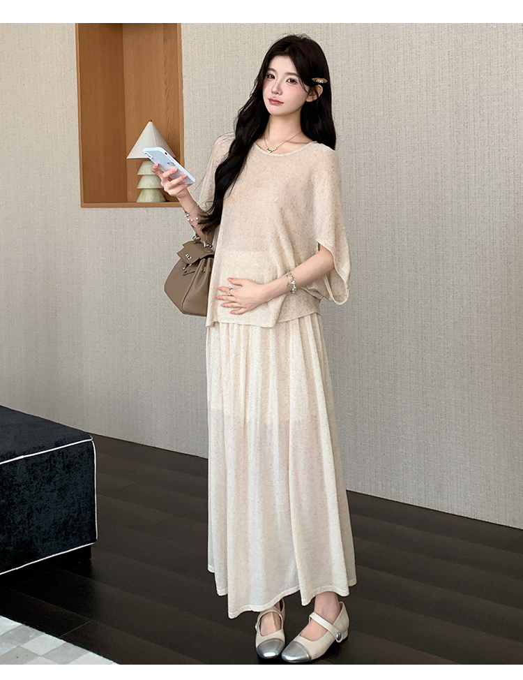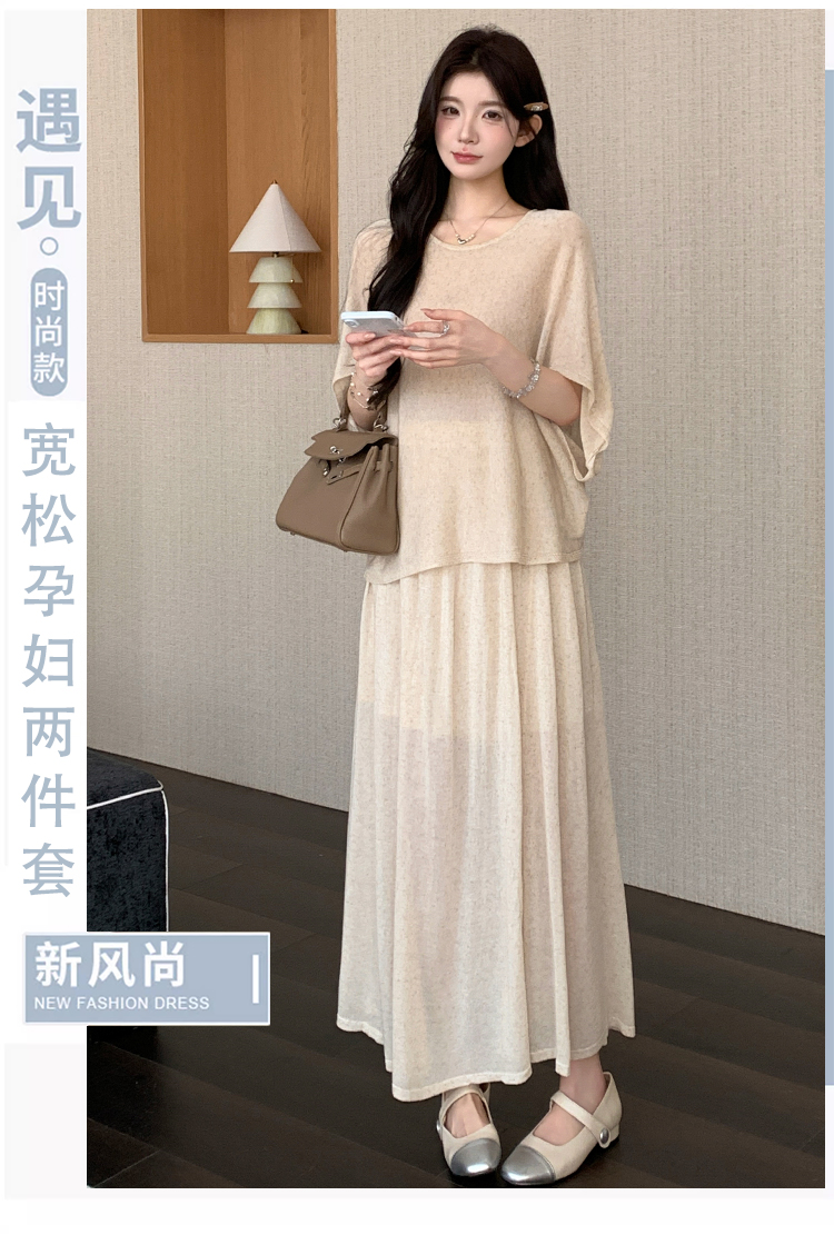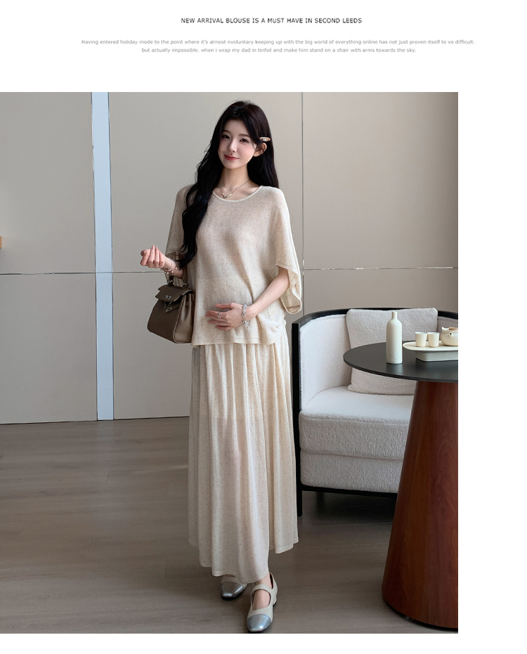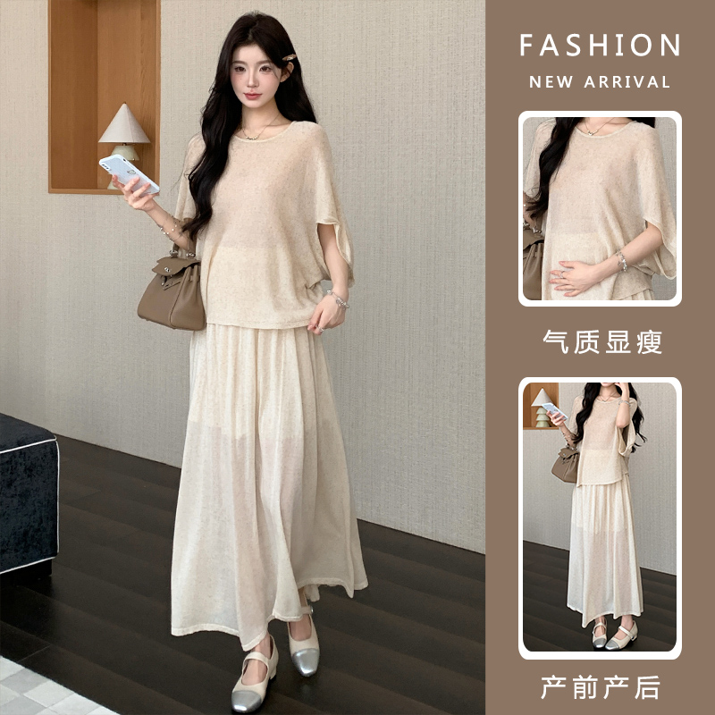 실사 xian 물품 느긋한 센스 배트윙 소매 라운드 넥 맨위 반 스커트 니트 임산부 세트