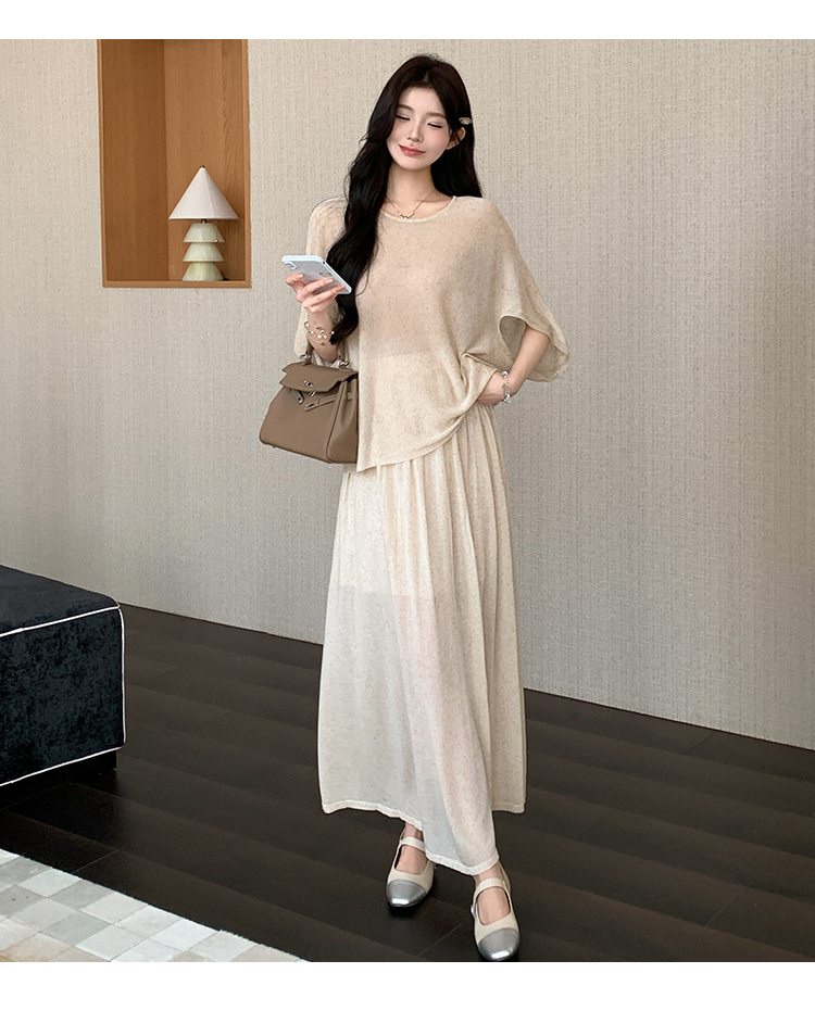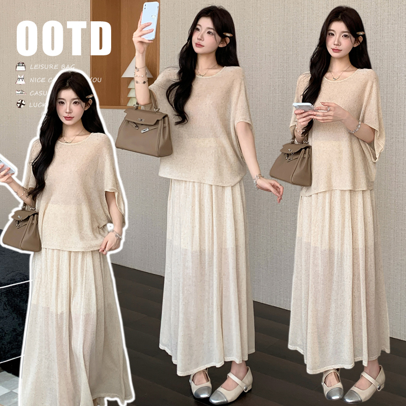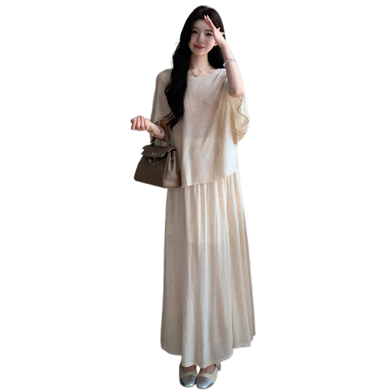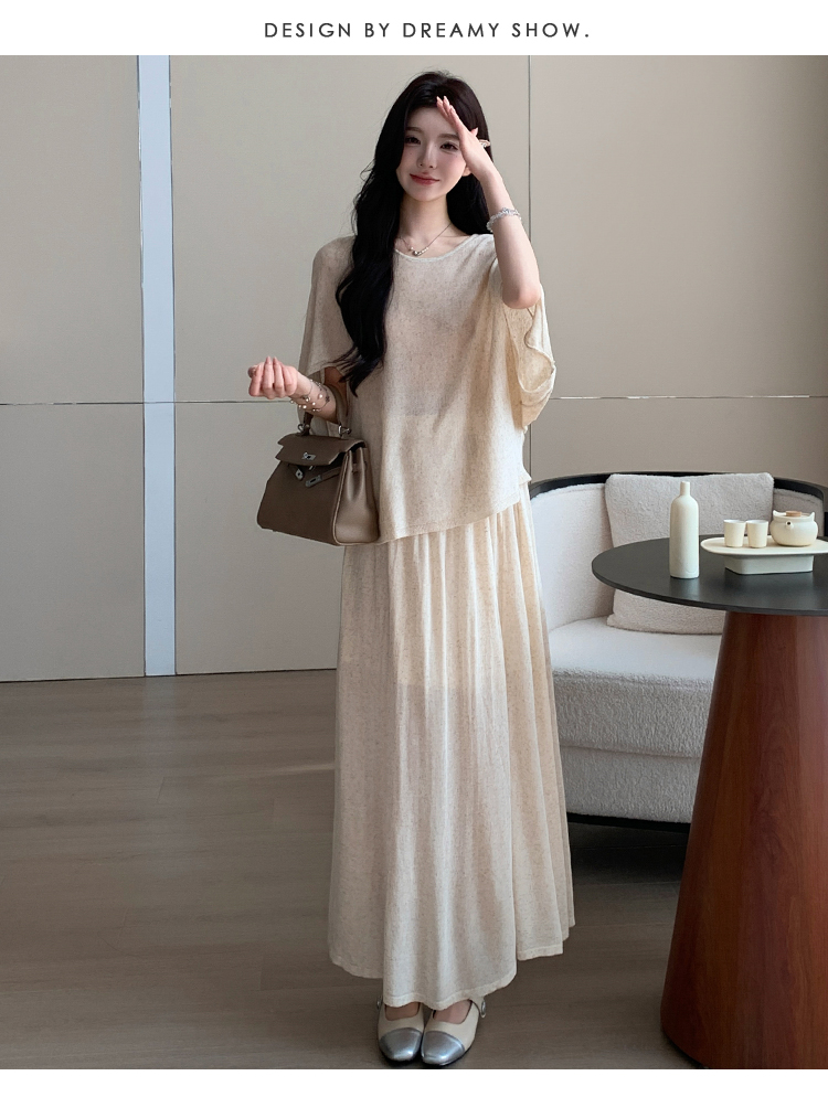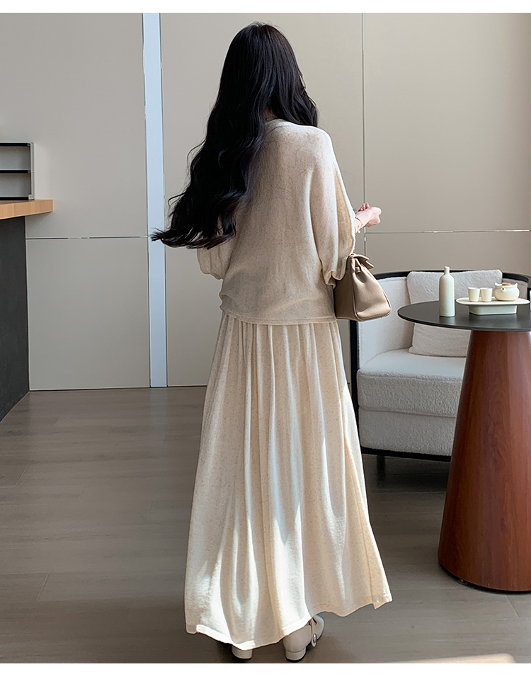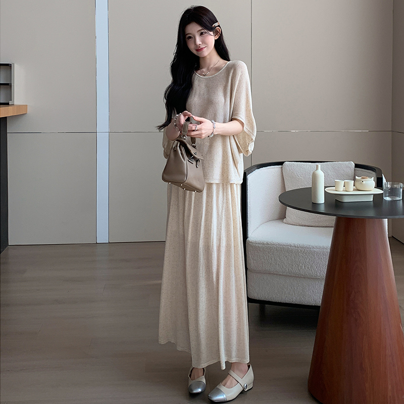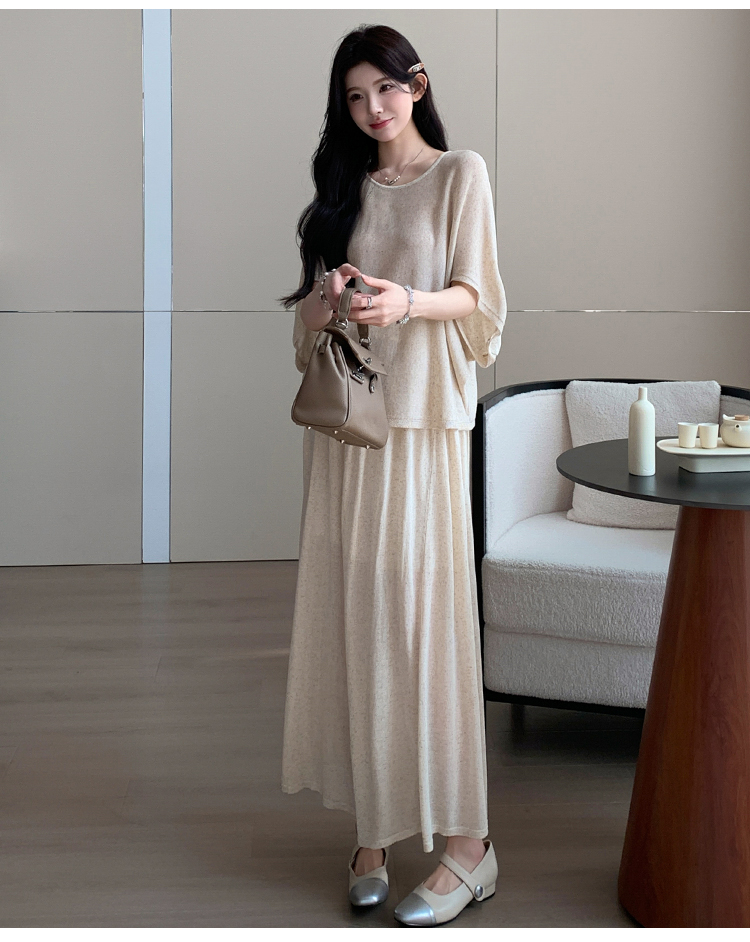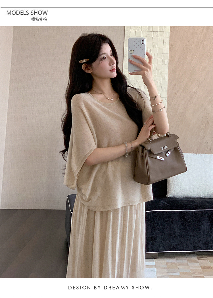 실사 xian 물품 느긋한 센스 배트윙 소매 라운드 넥 맨위 반 스커트 니트 임산부 세트