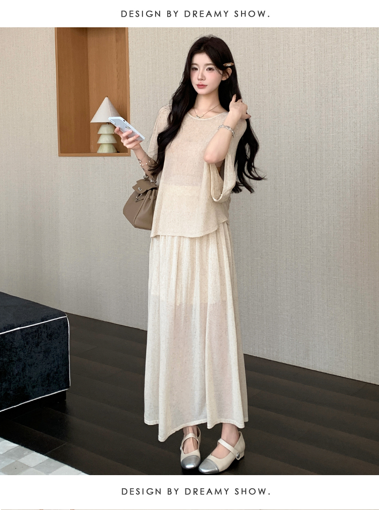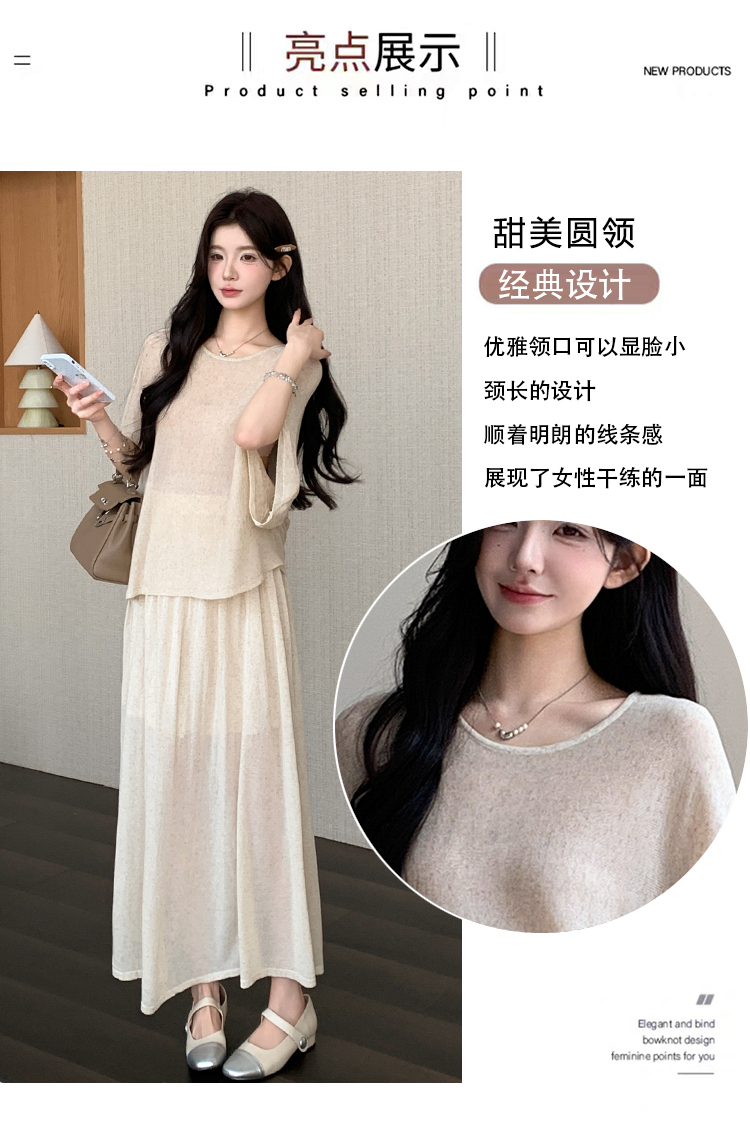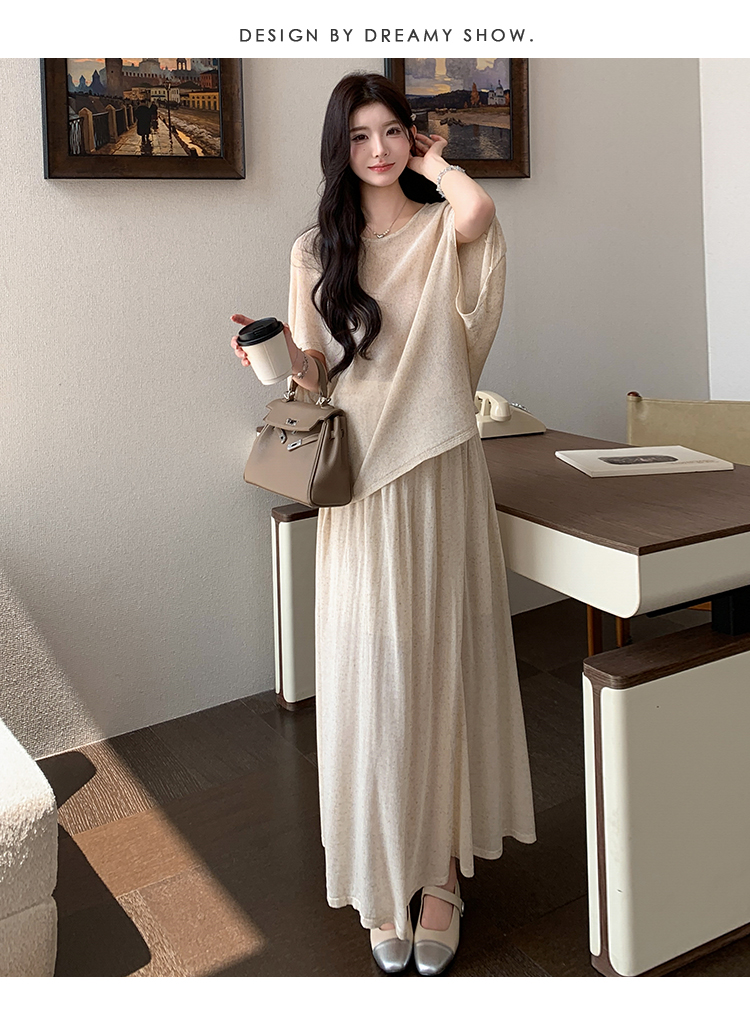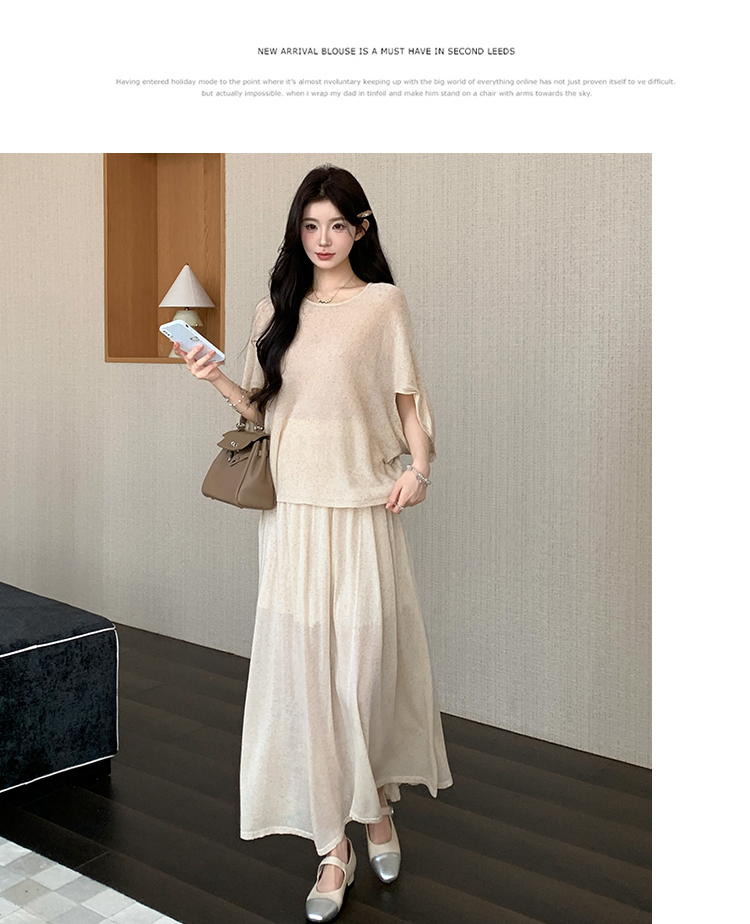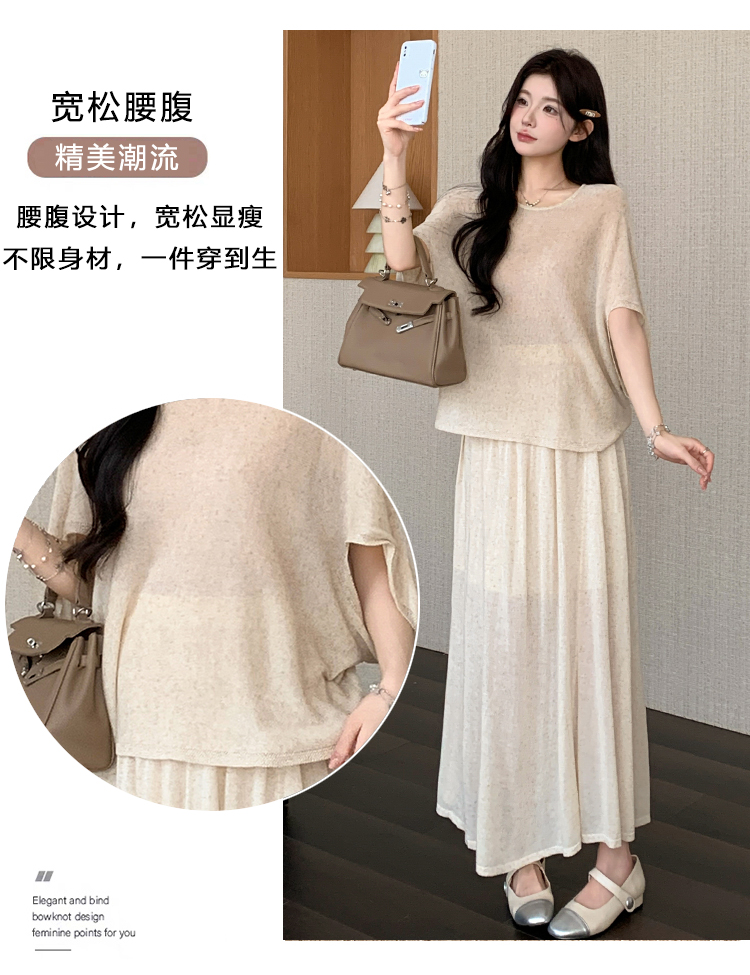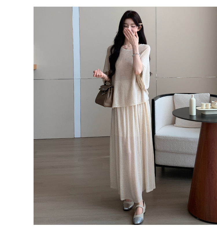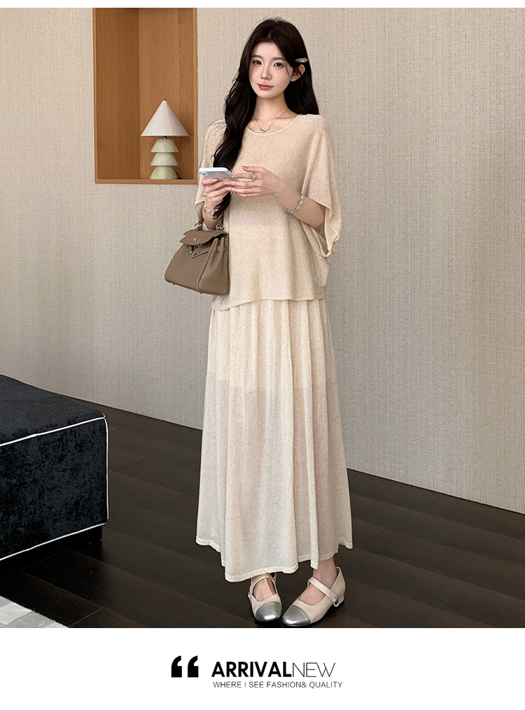 실사 xian 물품 느긋한 센스 배트윙 소매 라운드 넥 맨위 반 스커트 니트 임산부 세트
