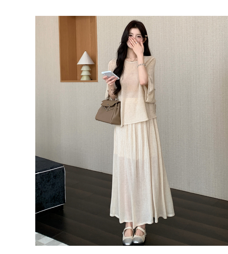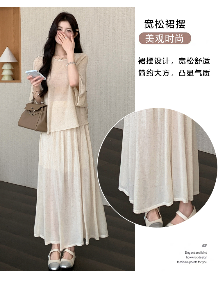 실사 프랑스식 부드러운 바람 레이스 조각 페이크 레이어드 슬립 드레스 니트 오픈 가디건 투피스 세트