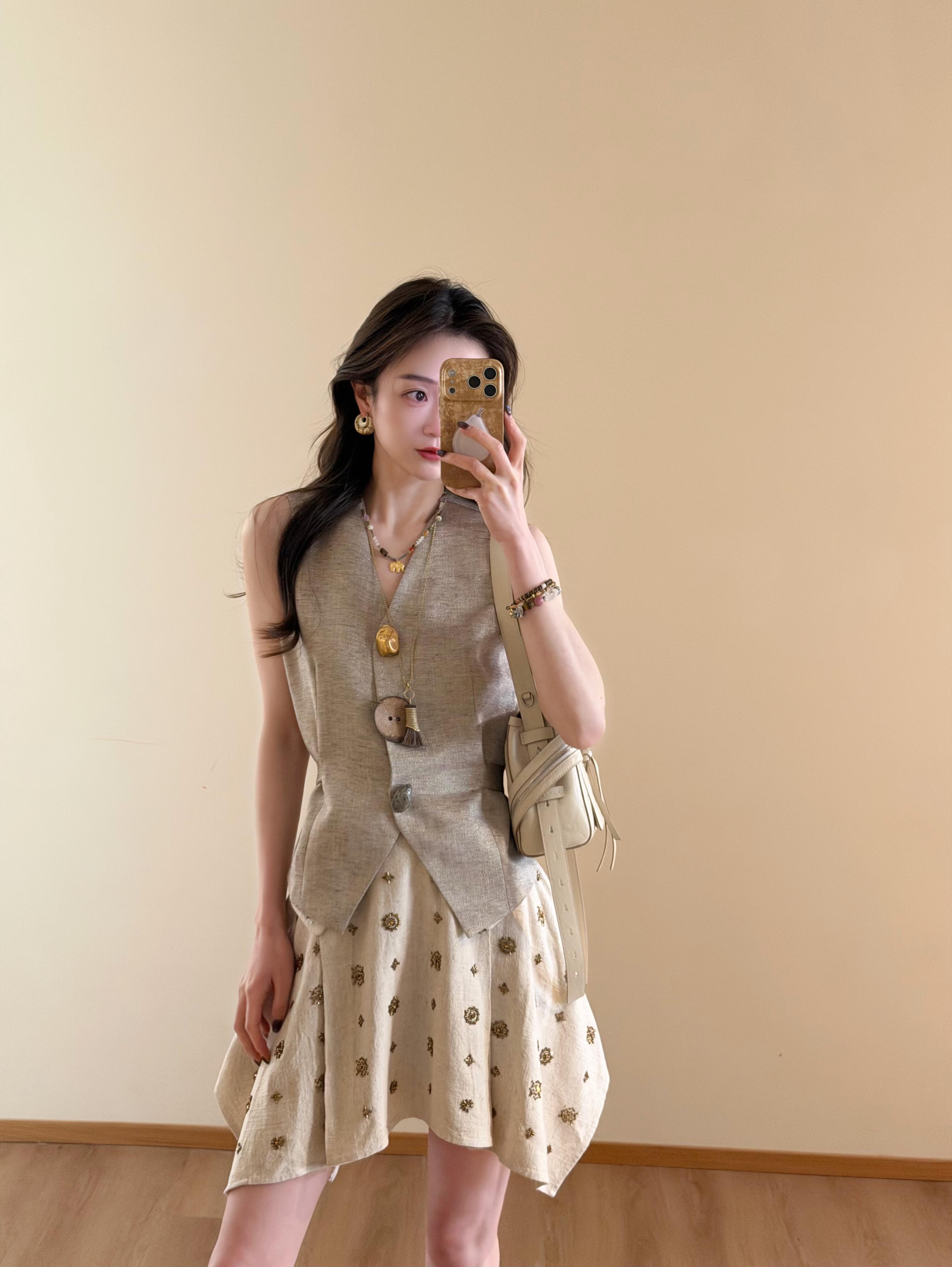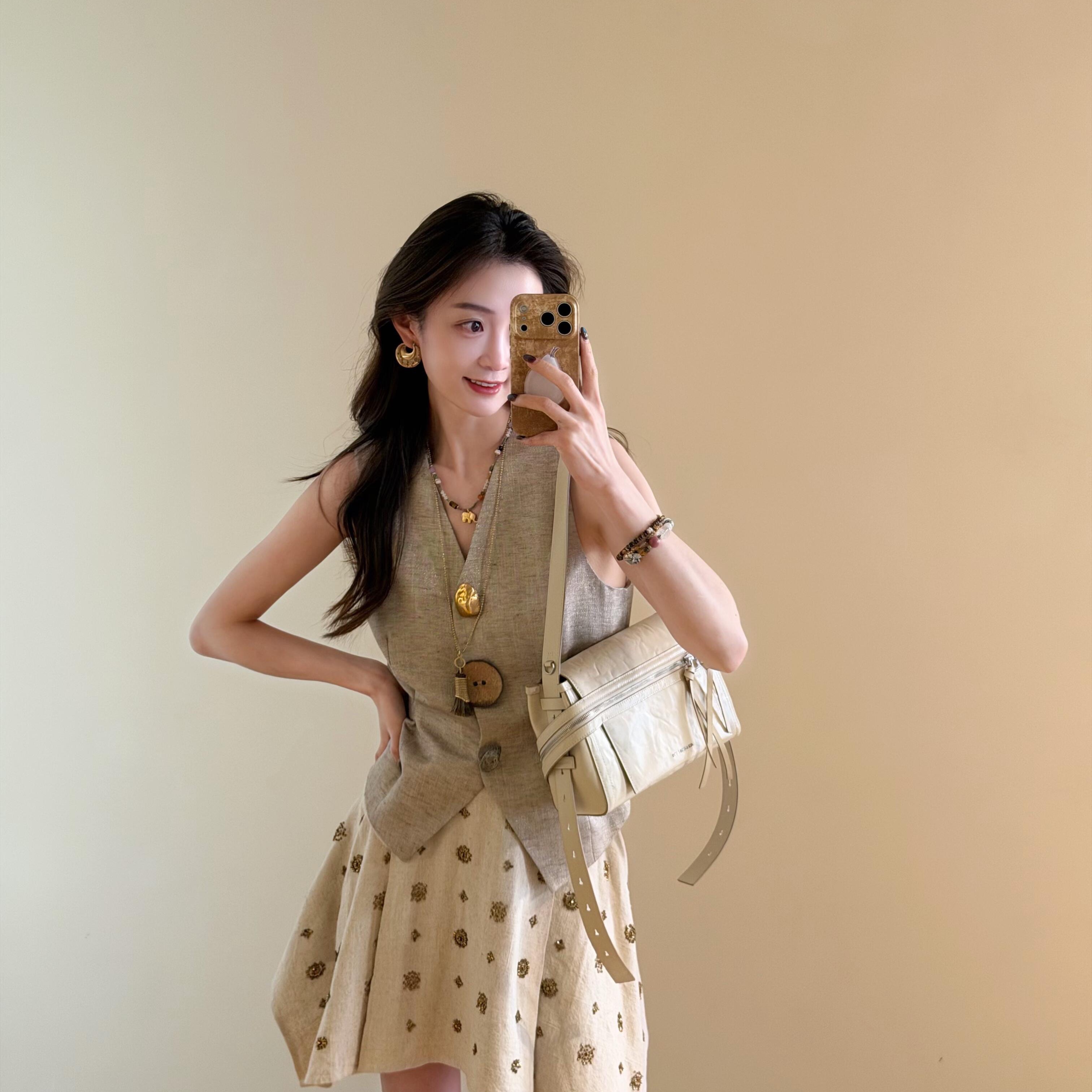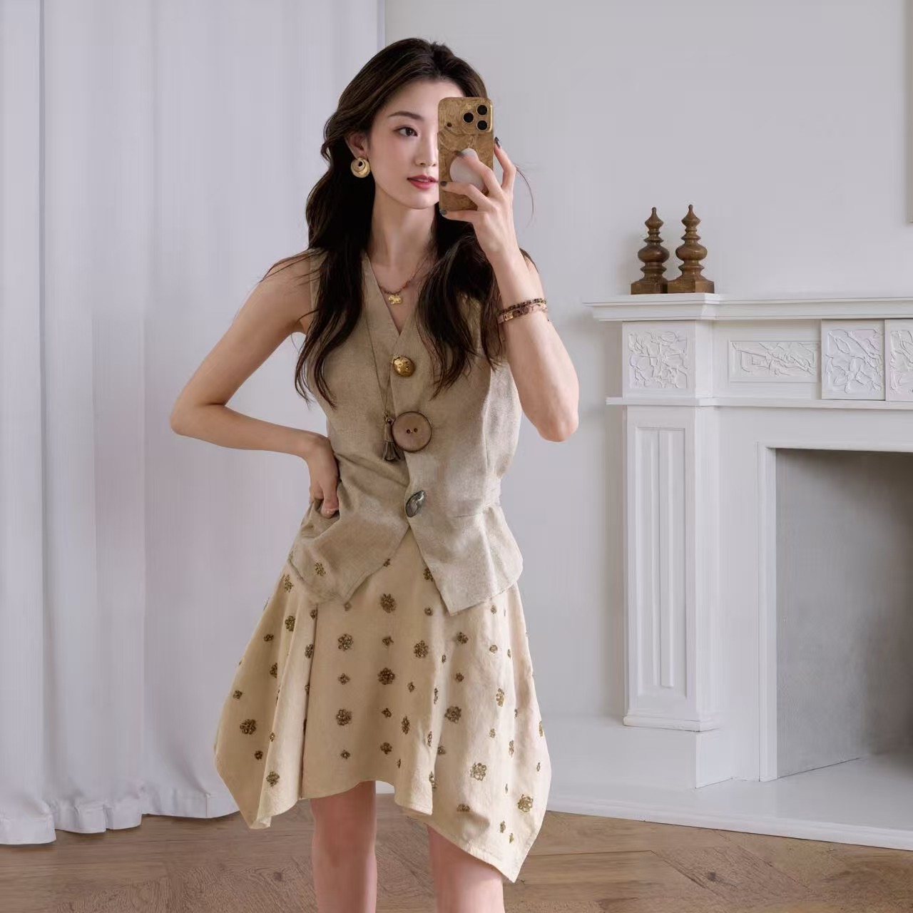 아마 민소매 베스트 반신 치마 세트 여성 2026 슈퍼 화재 열린 봄 착용 가져 가라. 자이언트 잘 생긴 캐주얼 고유 한 디자인 센스