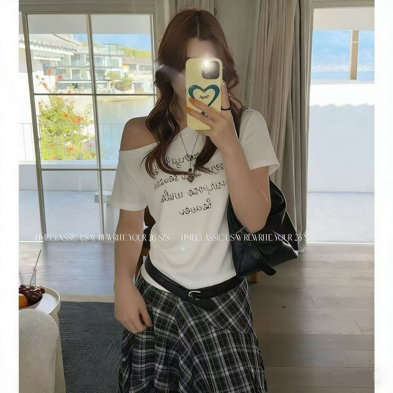 새로운 한국 스타일 패션 캐주얼 스트랩 비스듬한 어깨 반팔 맨위 허리밴드 슬림해 보이는 캐주얼 바지 투피스 세트