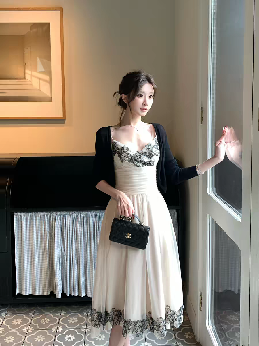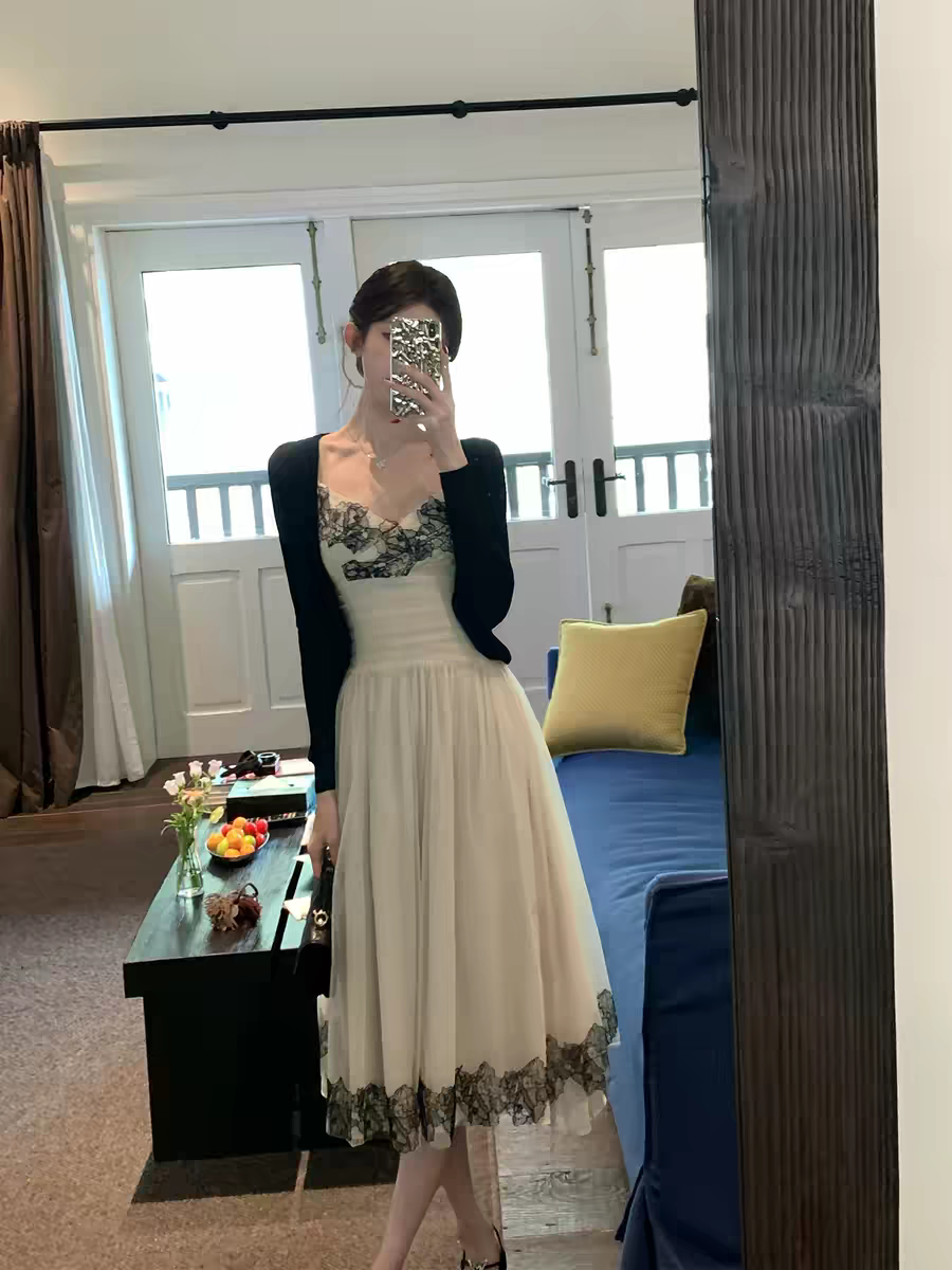 박하 녹색 스웨터 오픈 가디건 레이스 케이크 슬립 여성 드레스 봄 여름 새로운