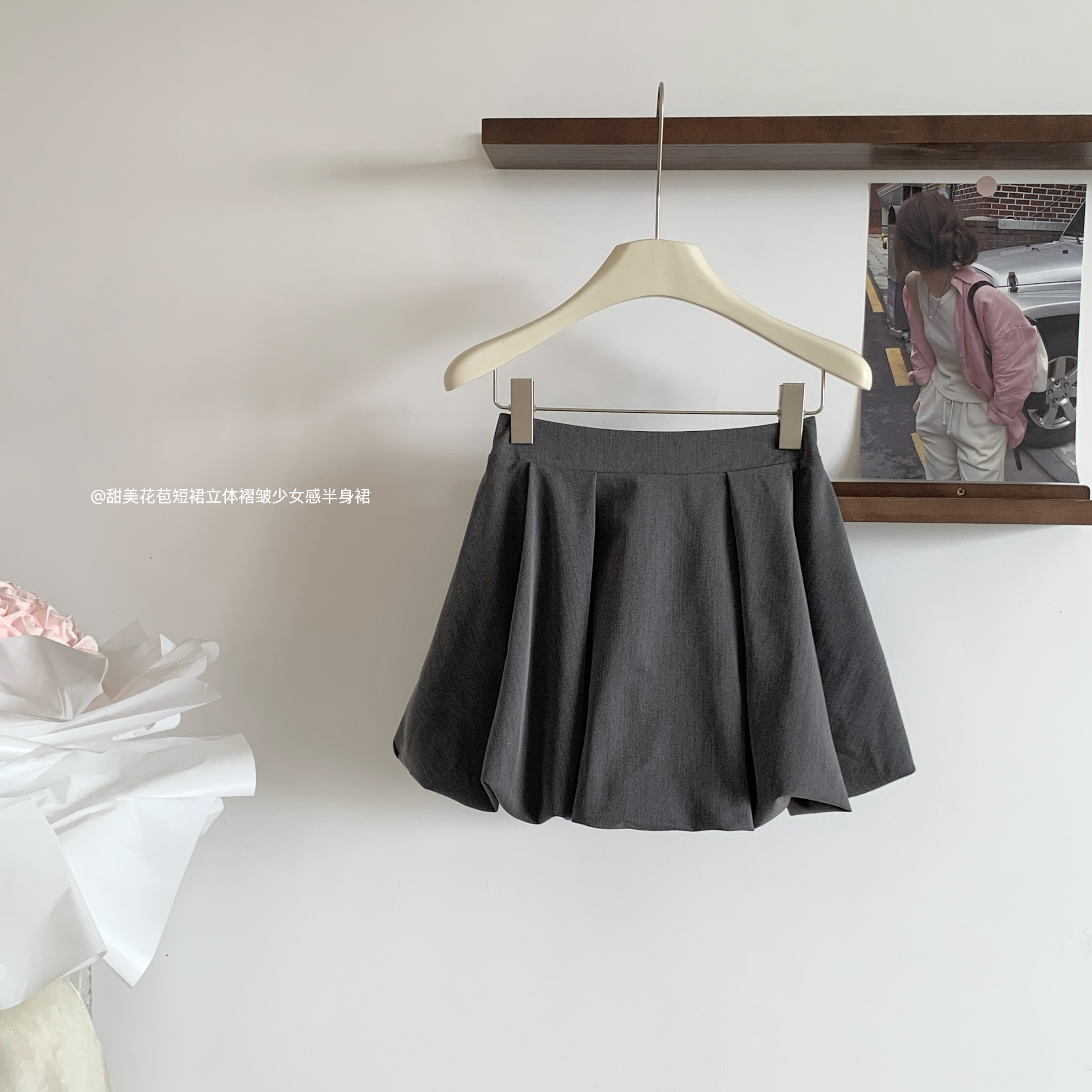 popwest 오리지널 학원 스타일 거품 소매 셔츠 드레스 허리 수축 다용도 핫걸 치마 A라인 스커트 미니 스커트