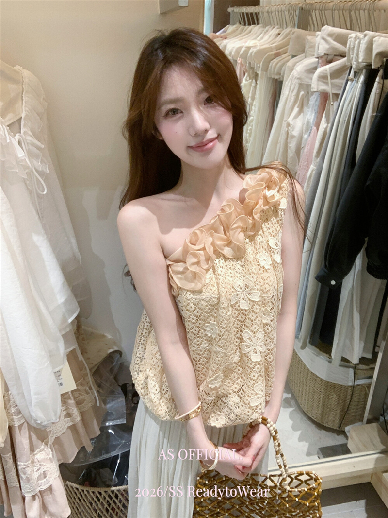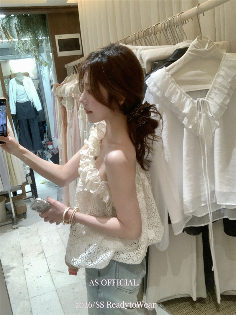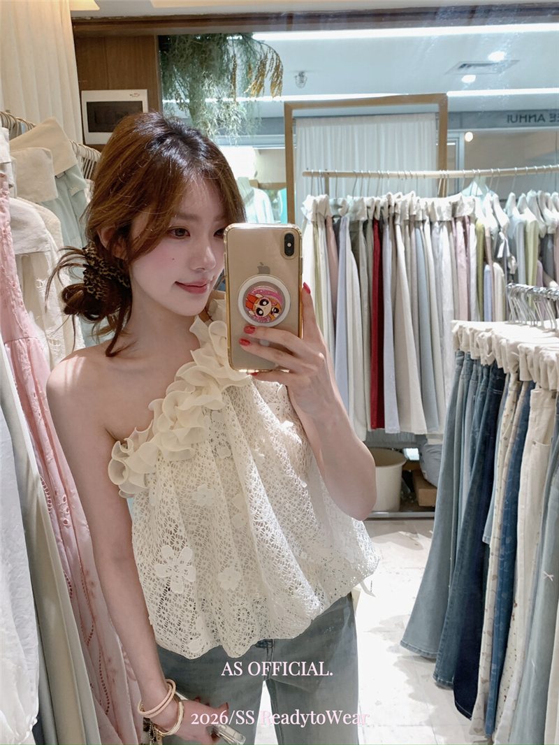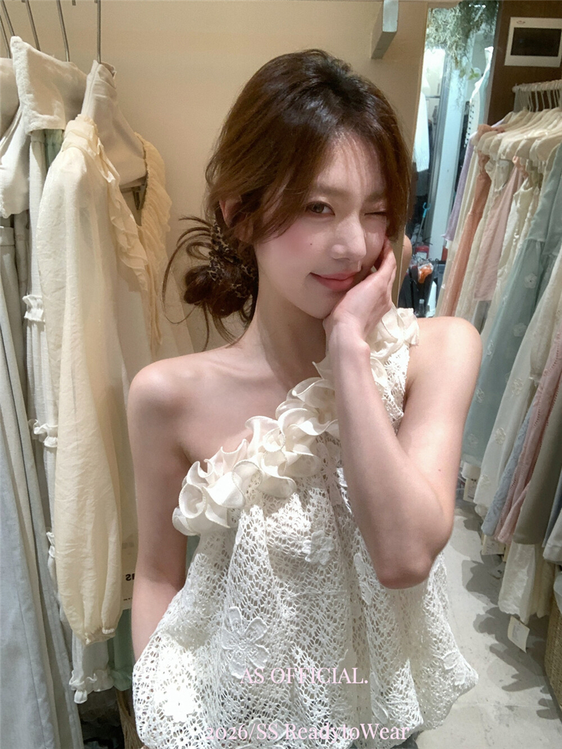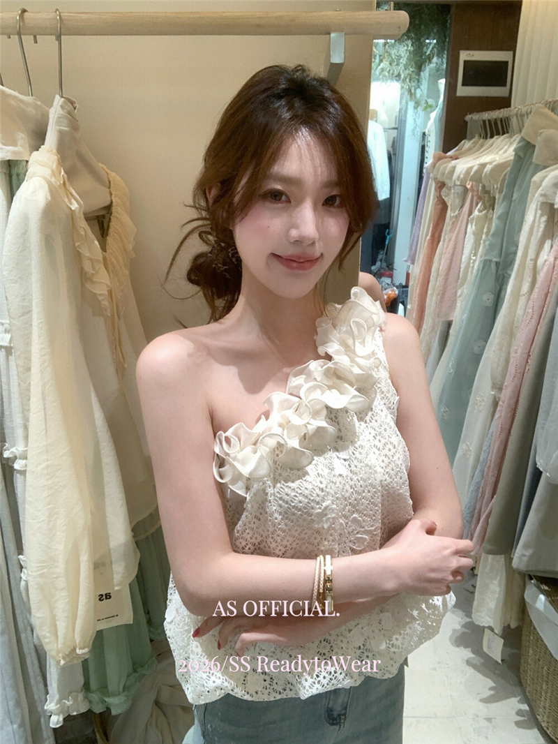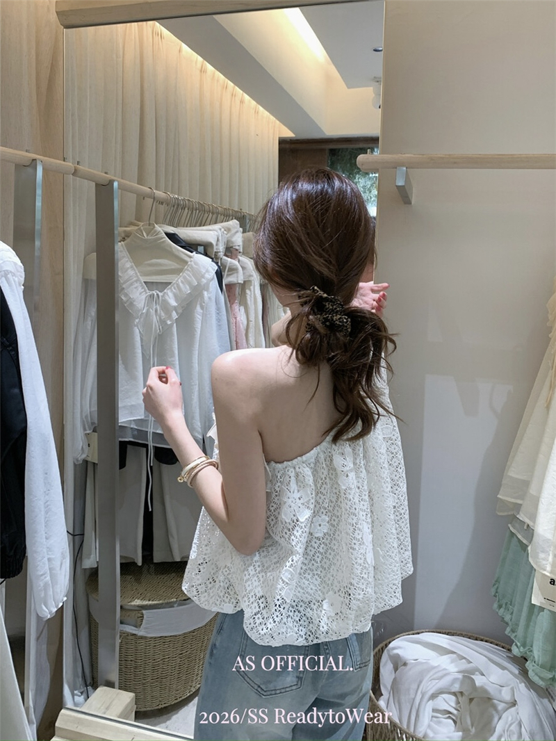 Mingyan 아름다움 대 주요 추진력 높은 품질 전체 점수 모델링 고대 조기 달콤한 자매 분위기 자수 비스듬한 어깨 레이스 작은 셔츠