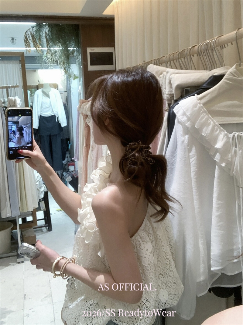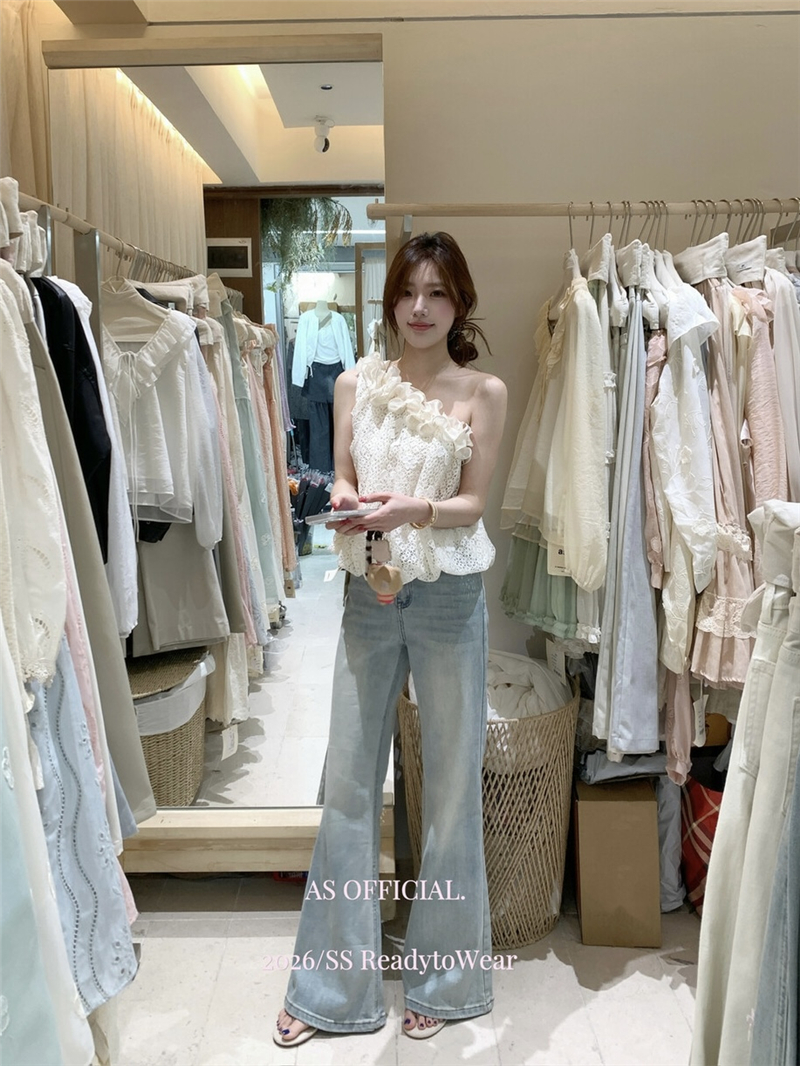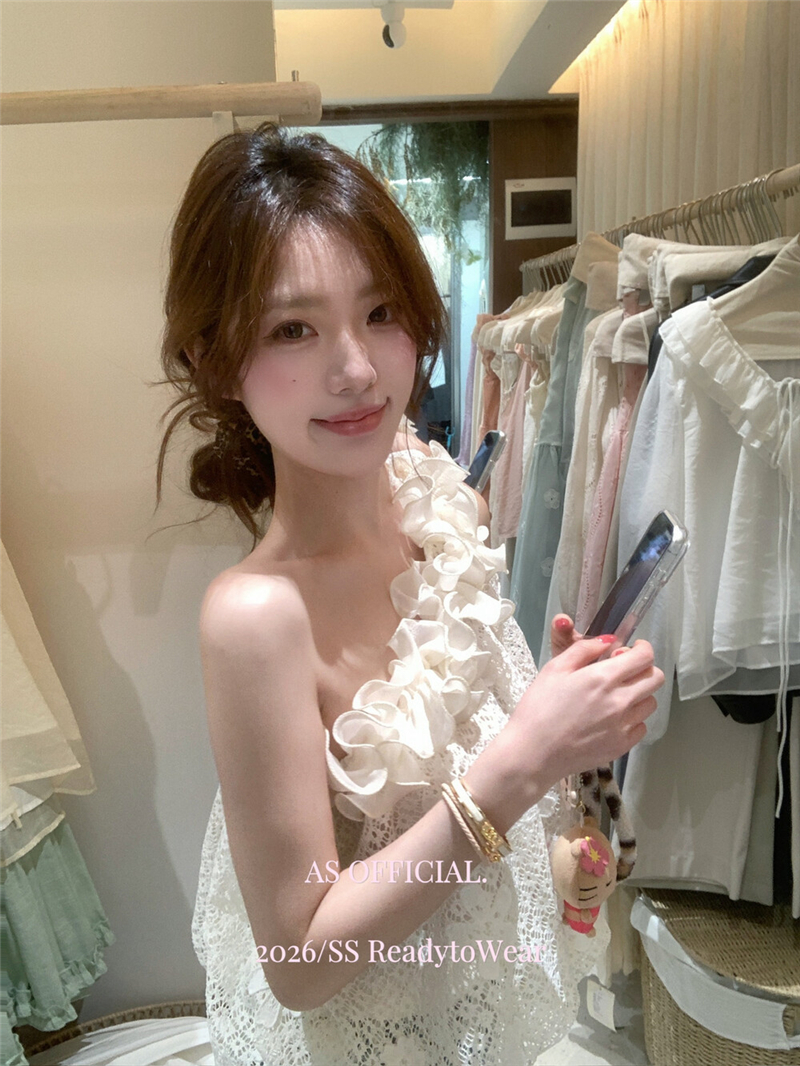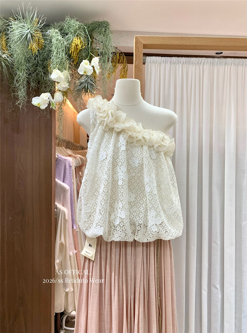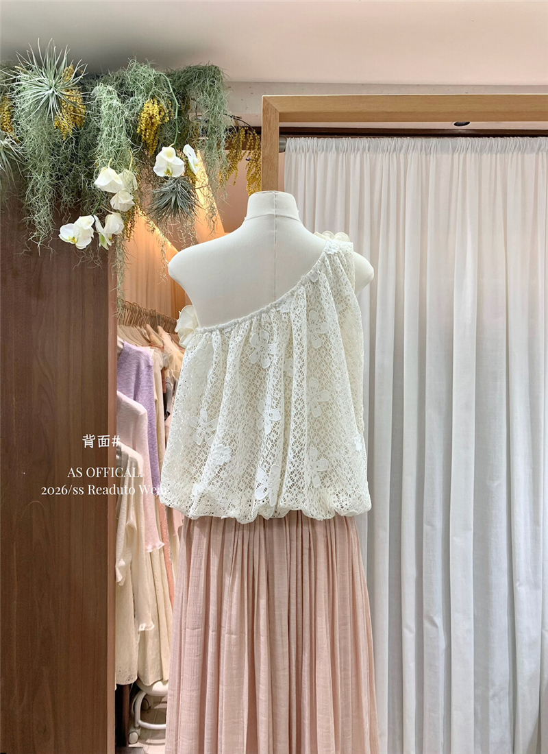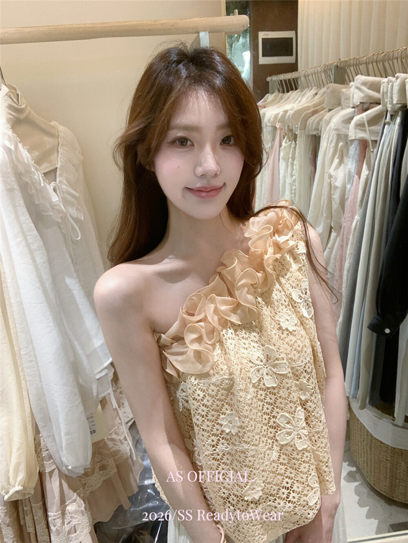 Mingyan 아름다움 대 주요 추진력 높은 품질 전체 점수 모델링 고대 조기 달콤한 자매 분위기 자수 비스듬한 어깨 레이스 작은 셔츠