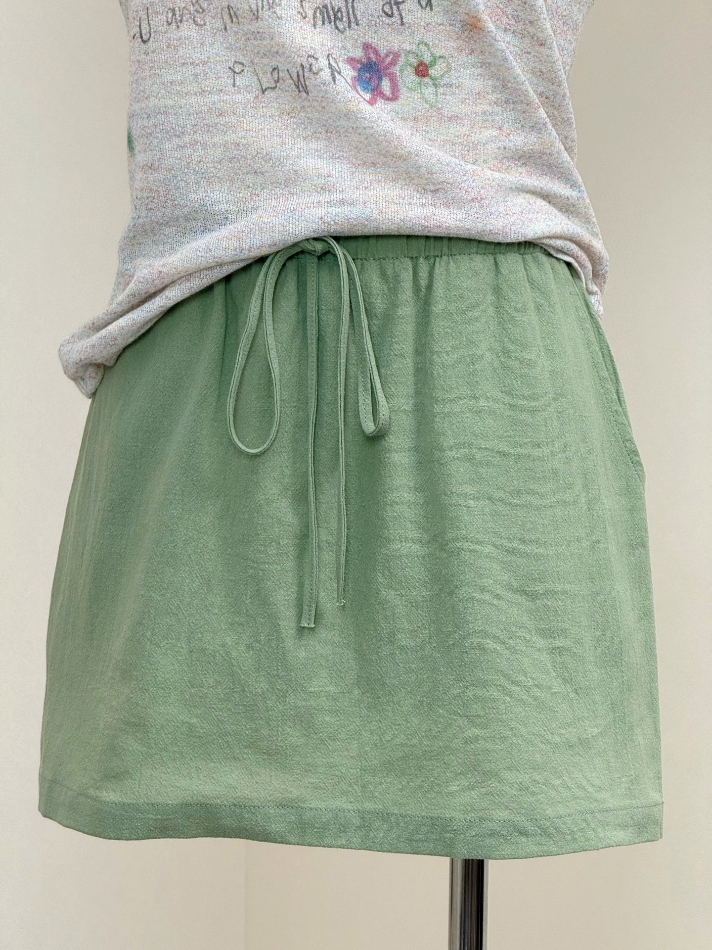 버섯 찹쌀 찹쌀 아마 센스 황록색 반신 스커트