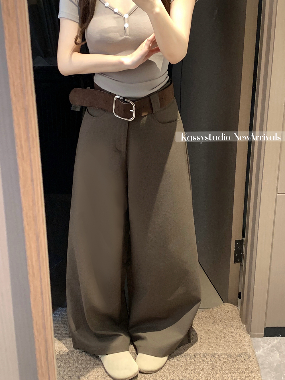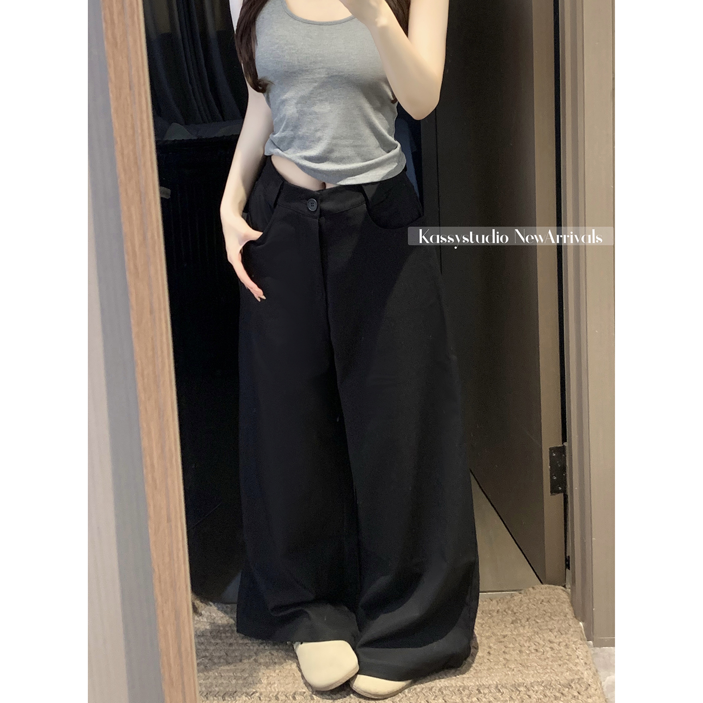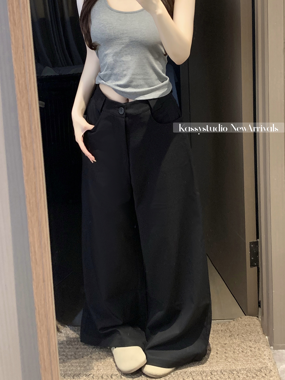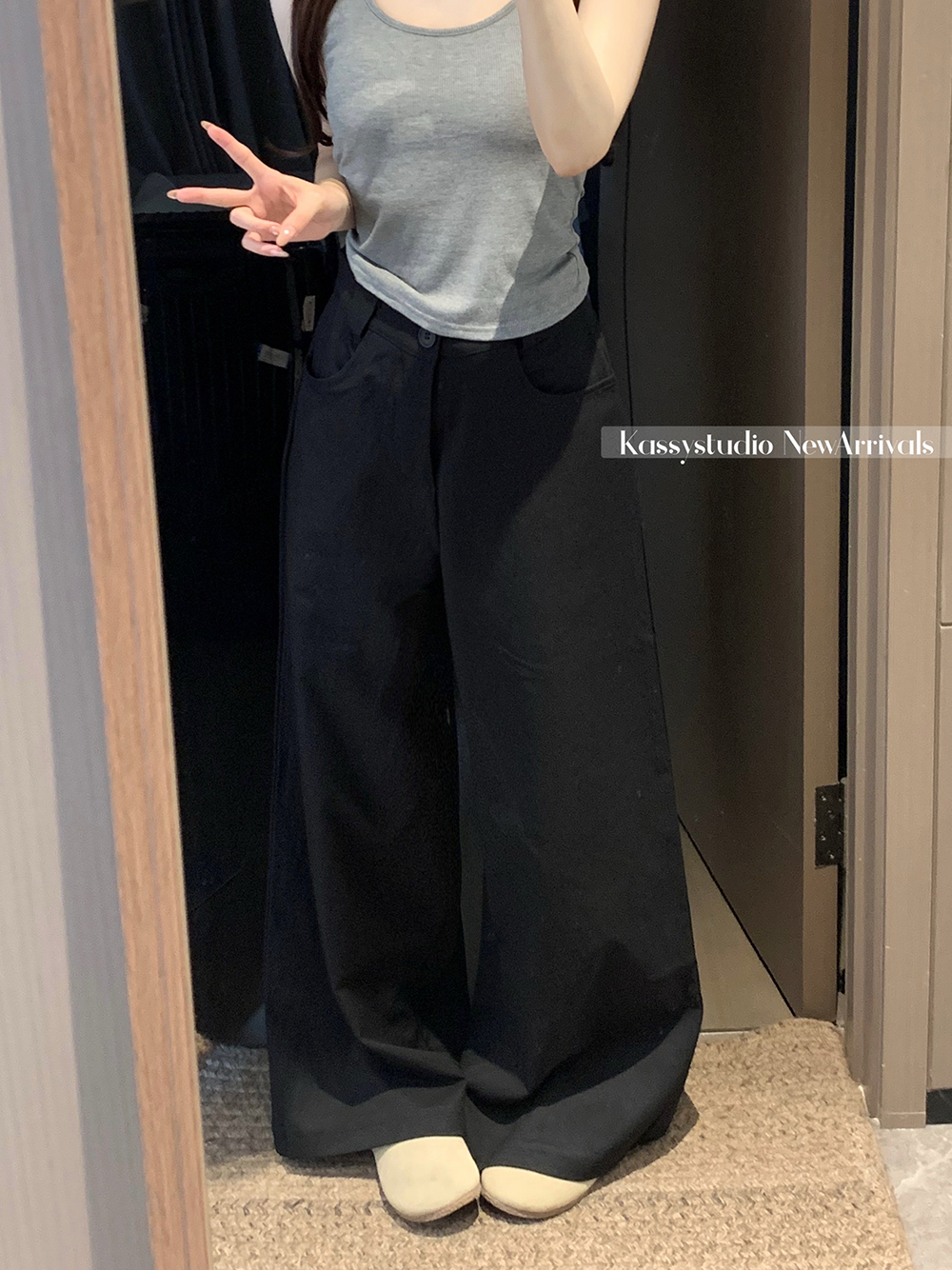 실사 2026 새로운 와이드 레깅스 바지 루즈핏 캐주얼 정장 바지