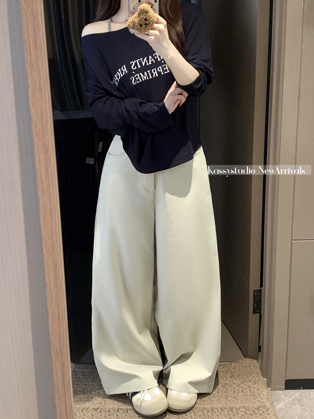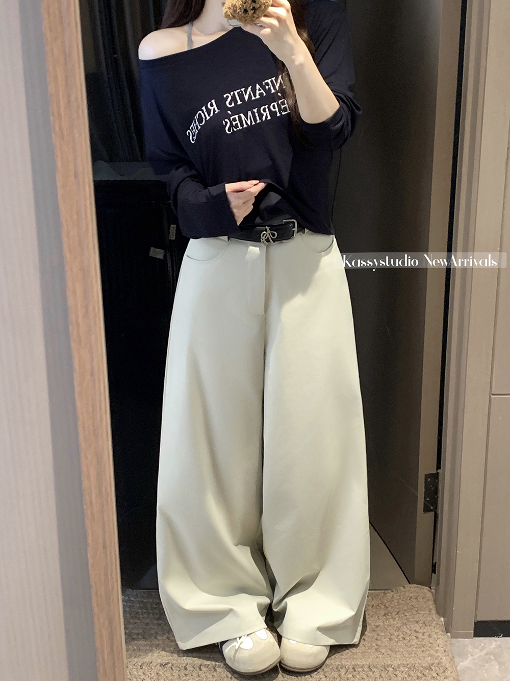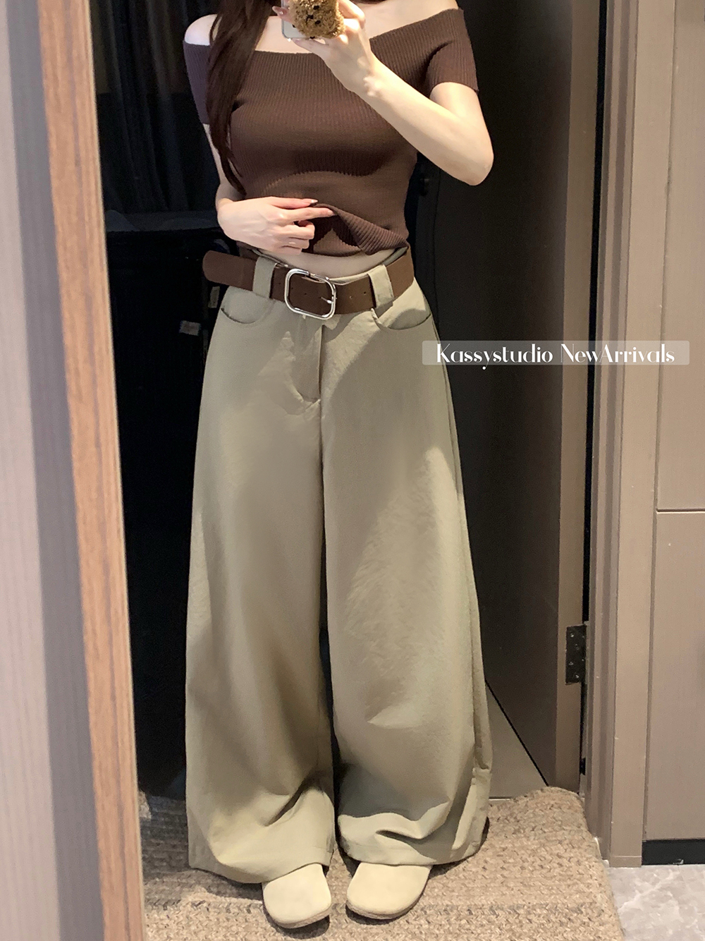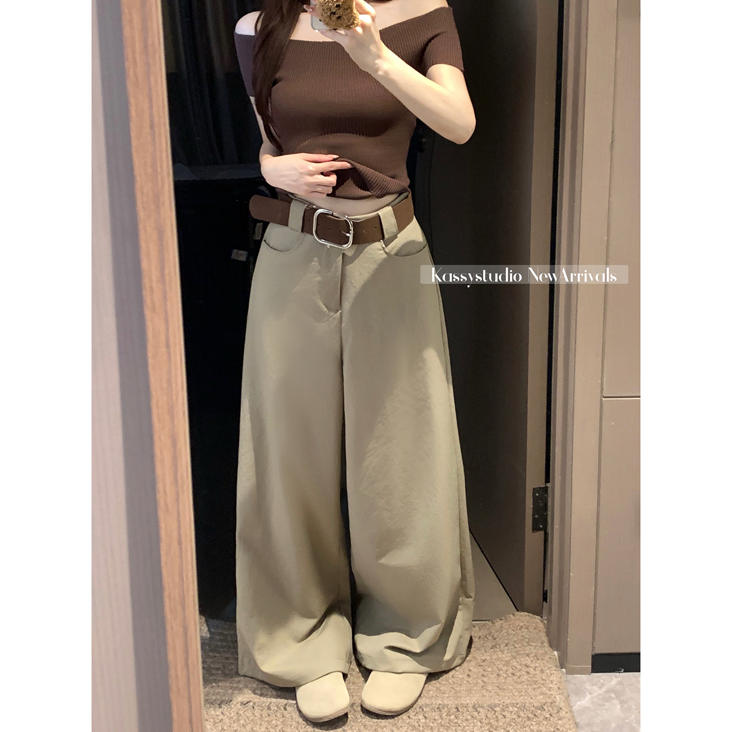 실사 2026 새로운 와이드 레깅스 바지 루즈핏 캐주얼 정장 바지