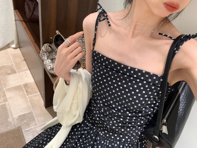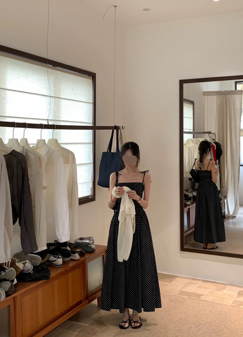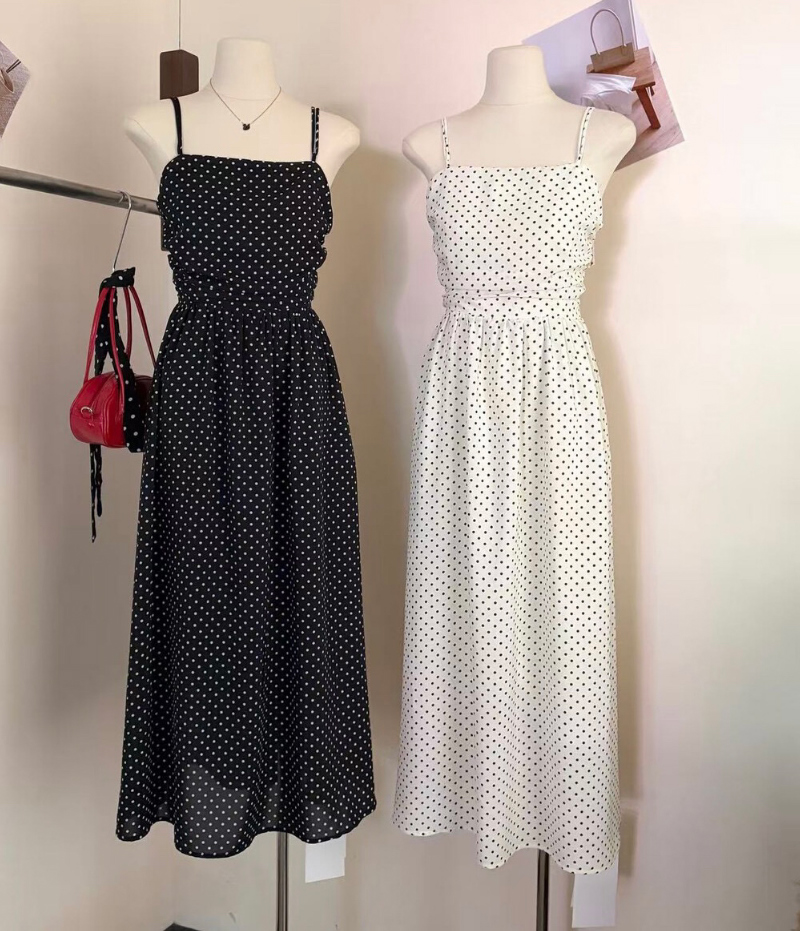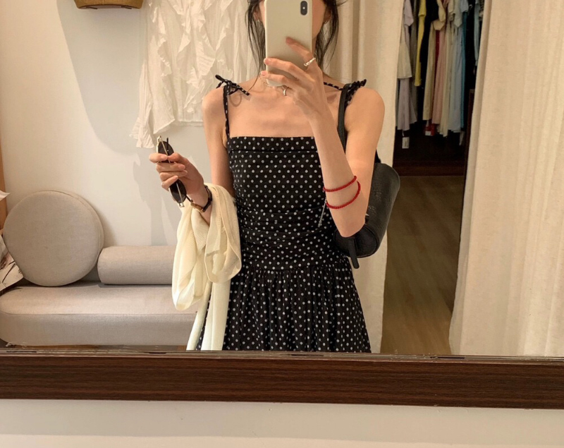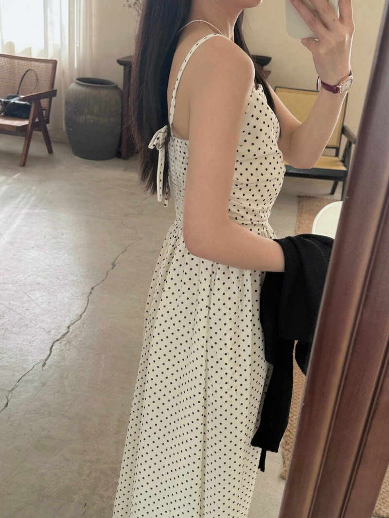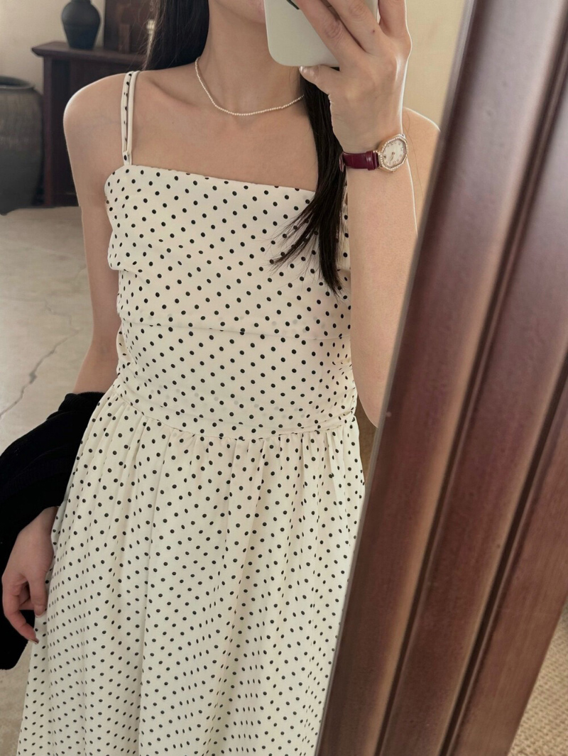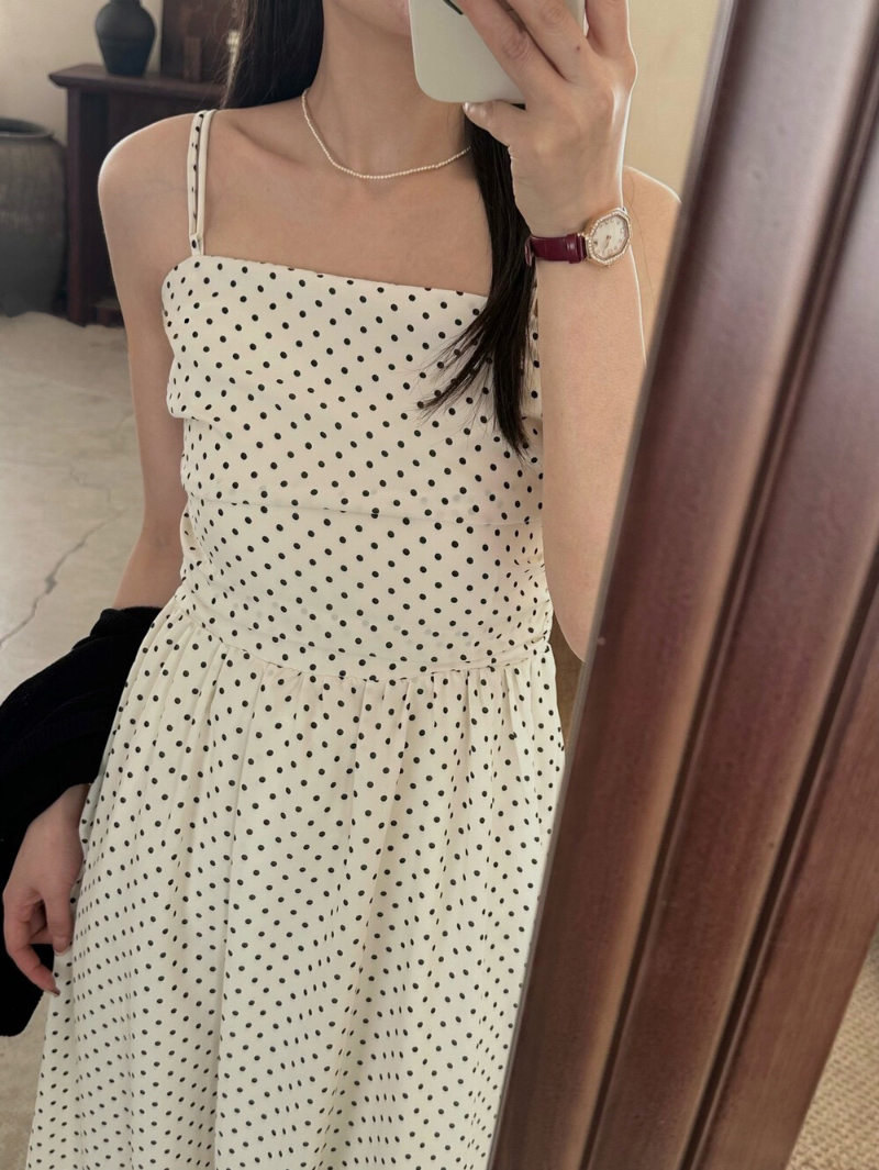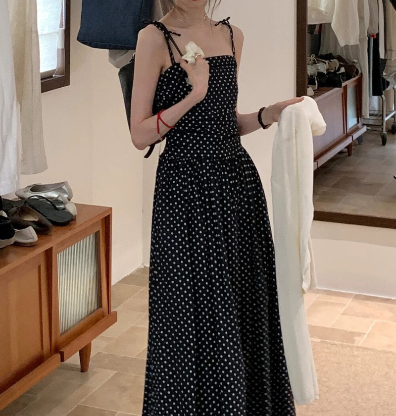 익스트림 제인 바람 도트 무늬 슬립 드레스 도루 센스 롱 코트 빅 플레어 스커트 프랑스식 레트로 품격 슬립 롱 스커트