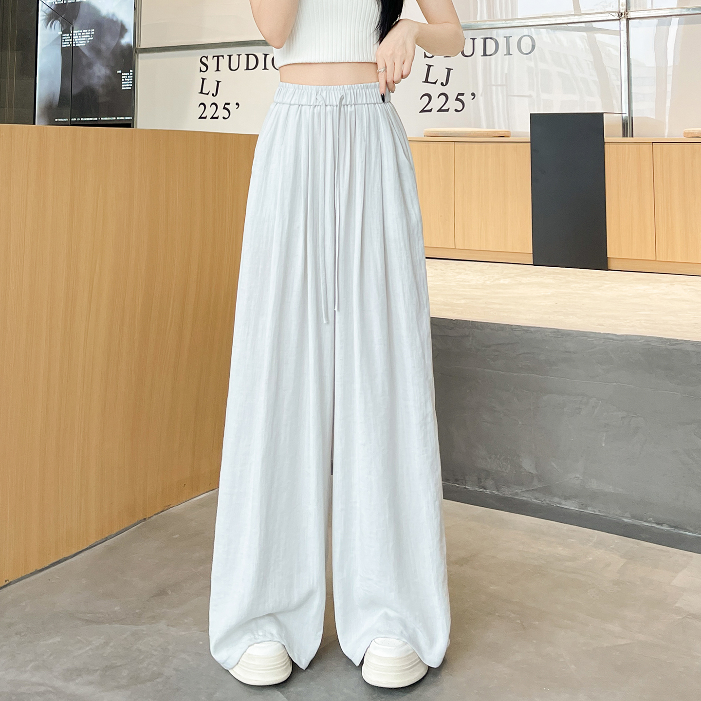 실사 얼음 실크 면 린넨 바지 펌프 로프 와이드 레깅스 바지 여름 도루 하이웨이스트 루즈핏 느긋한 바람 캐주얼 스트레이트 바닥 청소 바지