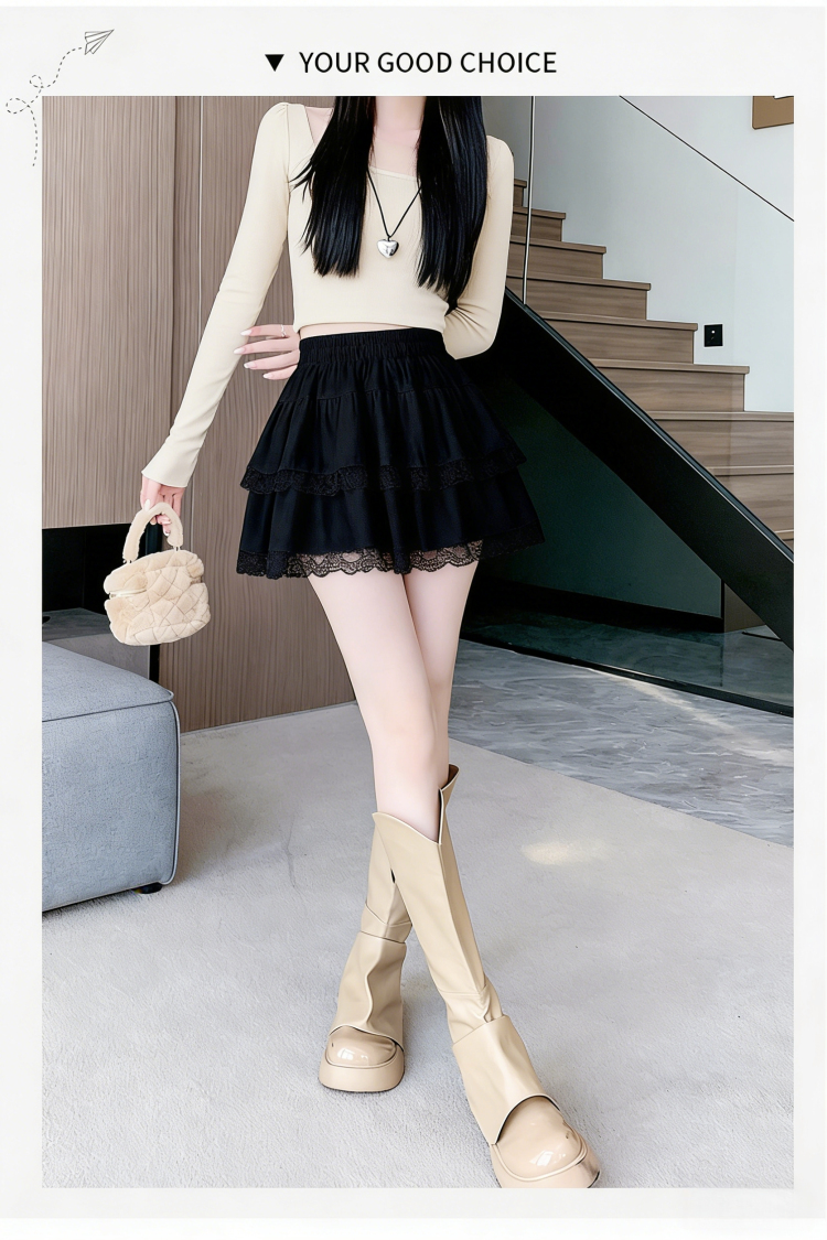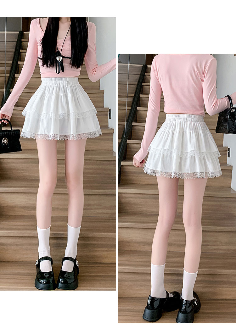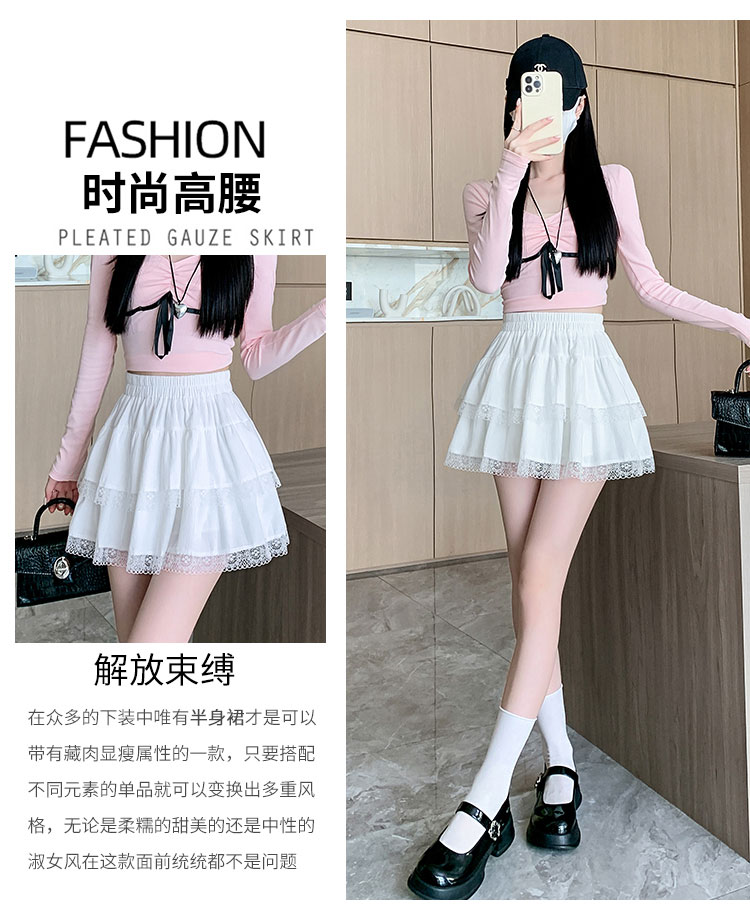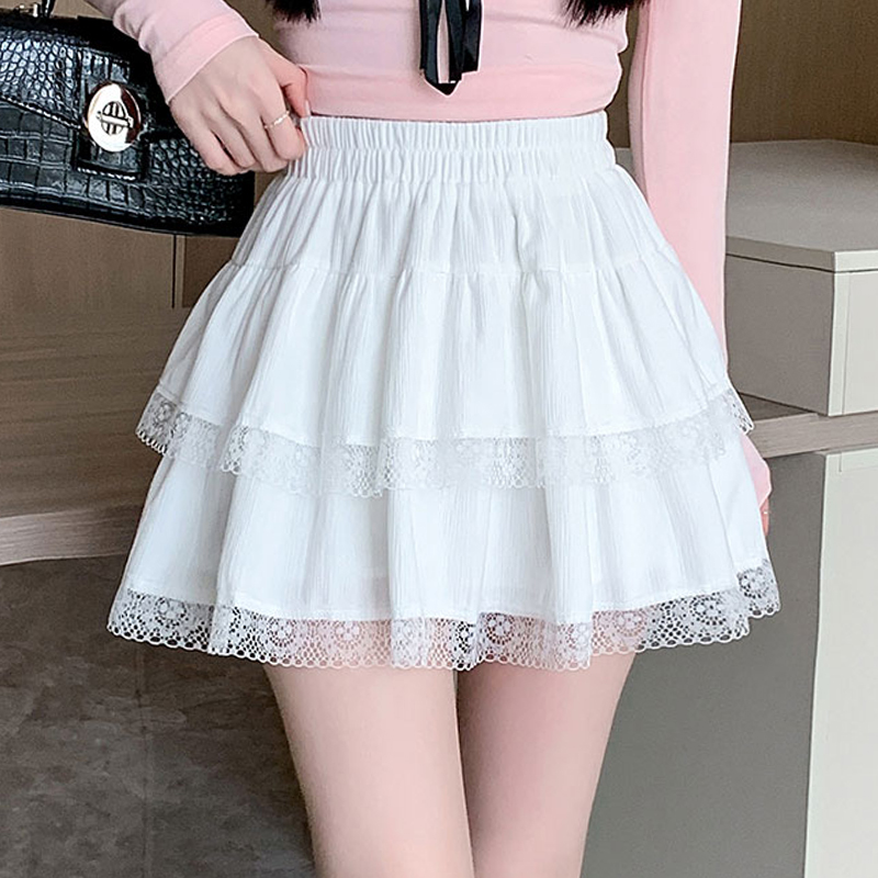 실사 지방 mm 빅 사이즈 레이스 레이스 반신 스커트 케이크 드레스 여성 하이웨이스트 노출 방지 프릴 치마 미니 스커트
