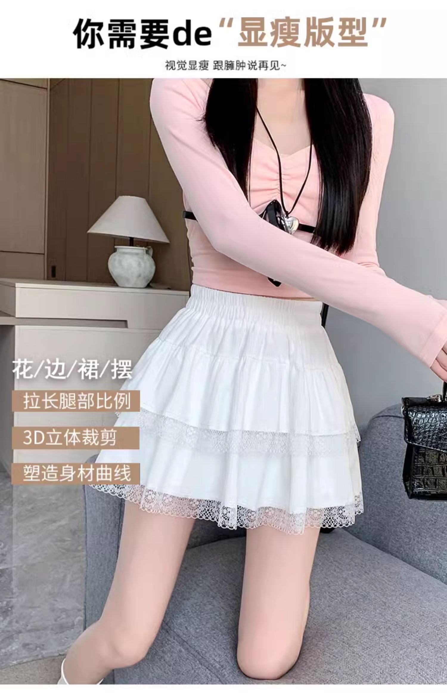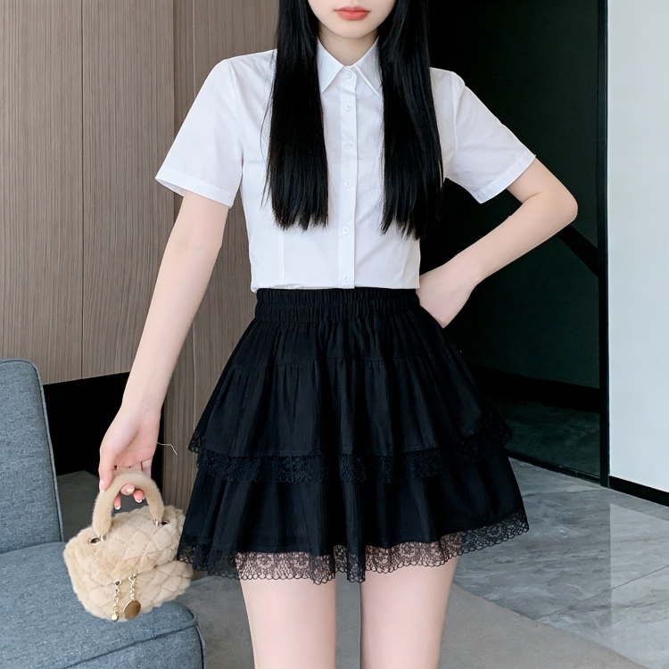 실사 지방 mm 빅 사이즈 화이트 목이버섯 레이스 케이크 반신 스커트 여성 여름 슬림해 보이는 하이웨이스트 한 마디 ins 짧은 치마