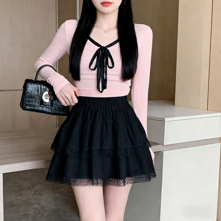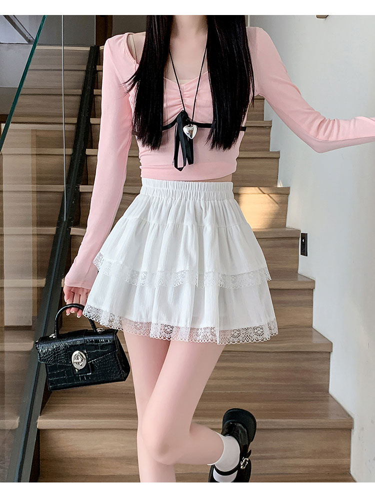 실사 지방 mm 발레 바람 레이스 레이스 퍼프 반신 스커트 여성 여름 하이웨이스트 한 마디 달콤함 케이크 짧은 치마
