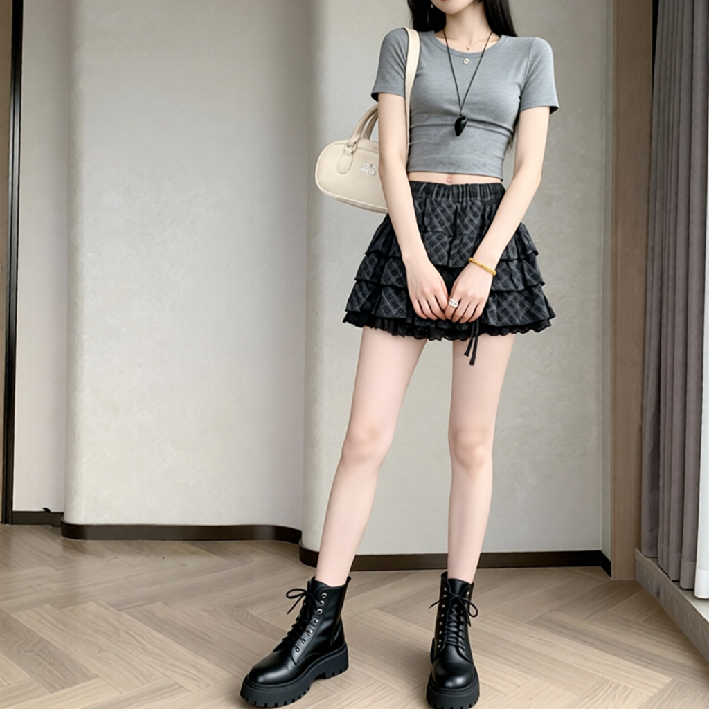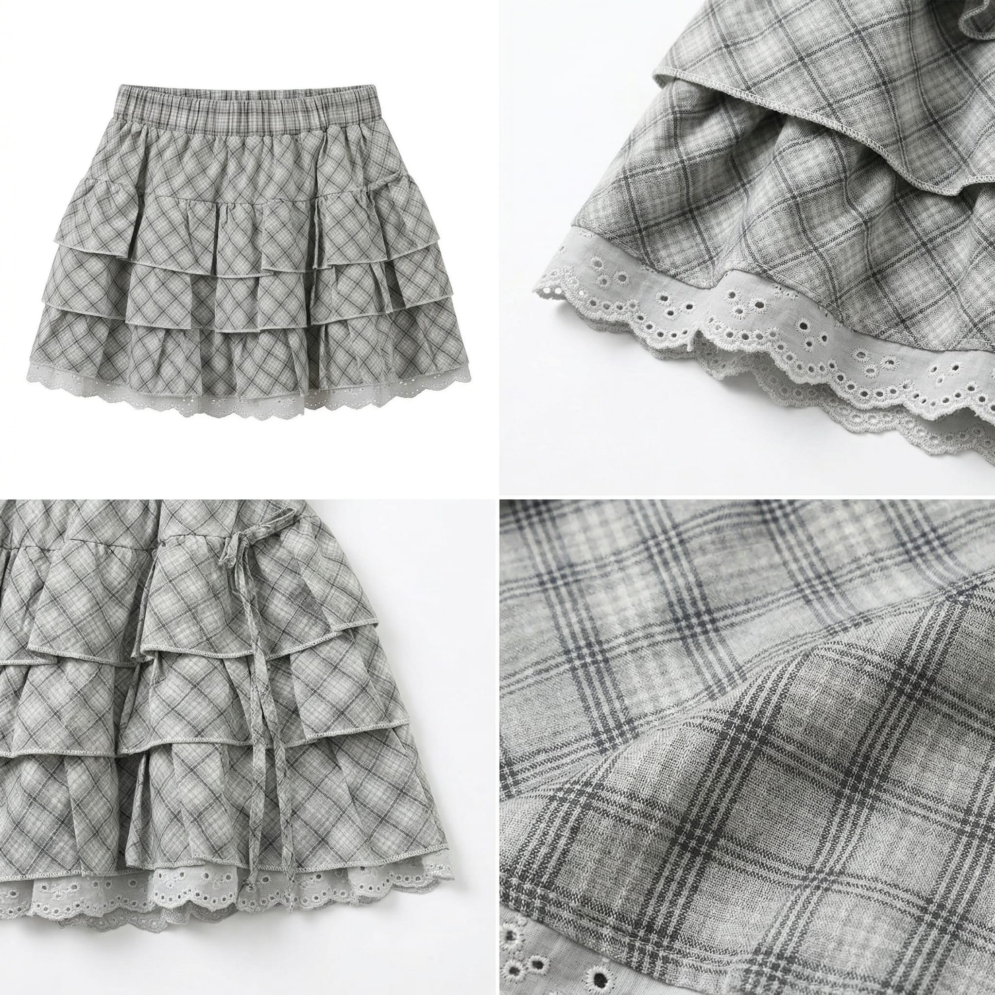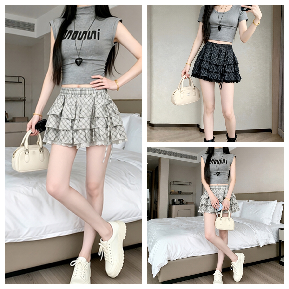 실사 2026 새로운 체크무늬 케이크 드레스 반신 스커트 패션 몸매 가꾸기 한국 스타일 신선함 퍼프 스커트