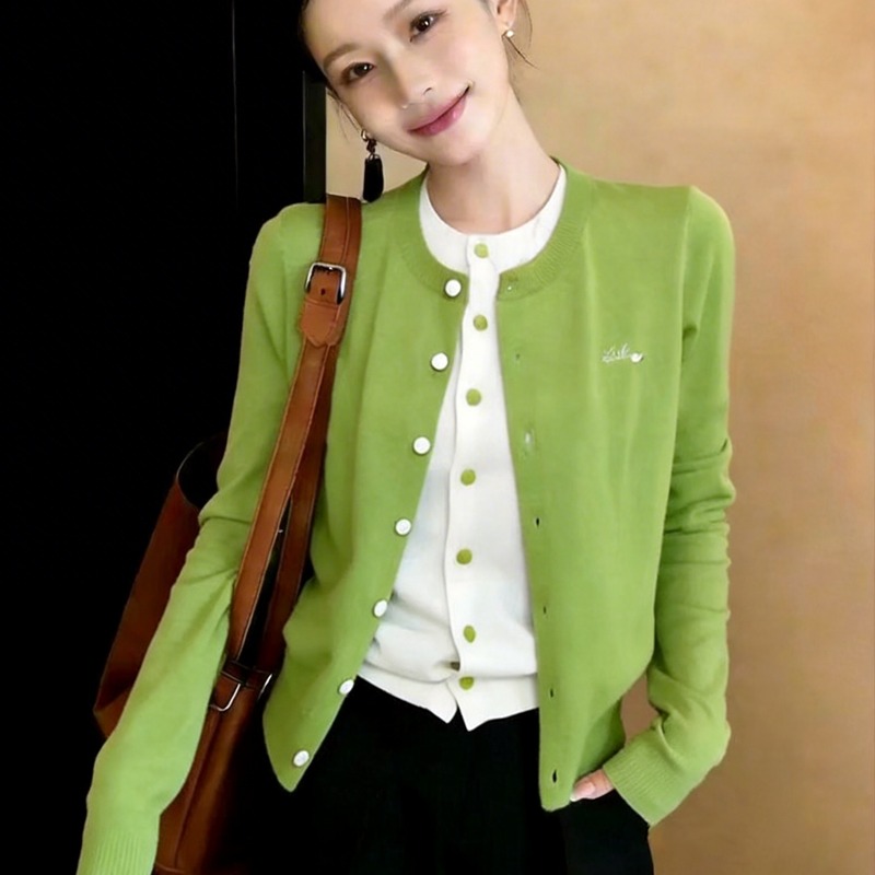 2026 봄 새로운 한 부서 슈퍼 잘 생긴 닥스 훈트 자수 부드럽다 편안함 얼음 실크 긴팔 오픈 가디건 니트 스웨터 여성