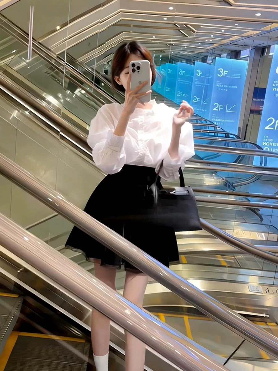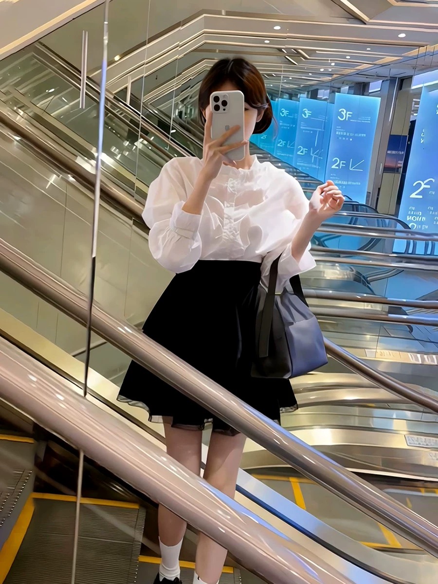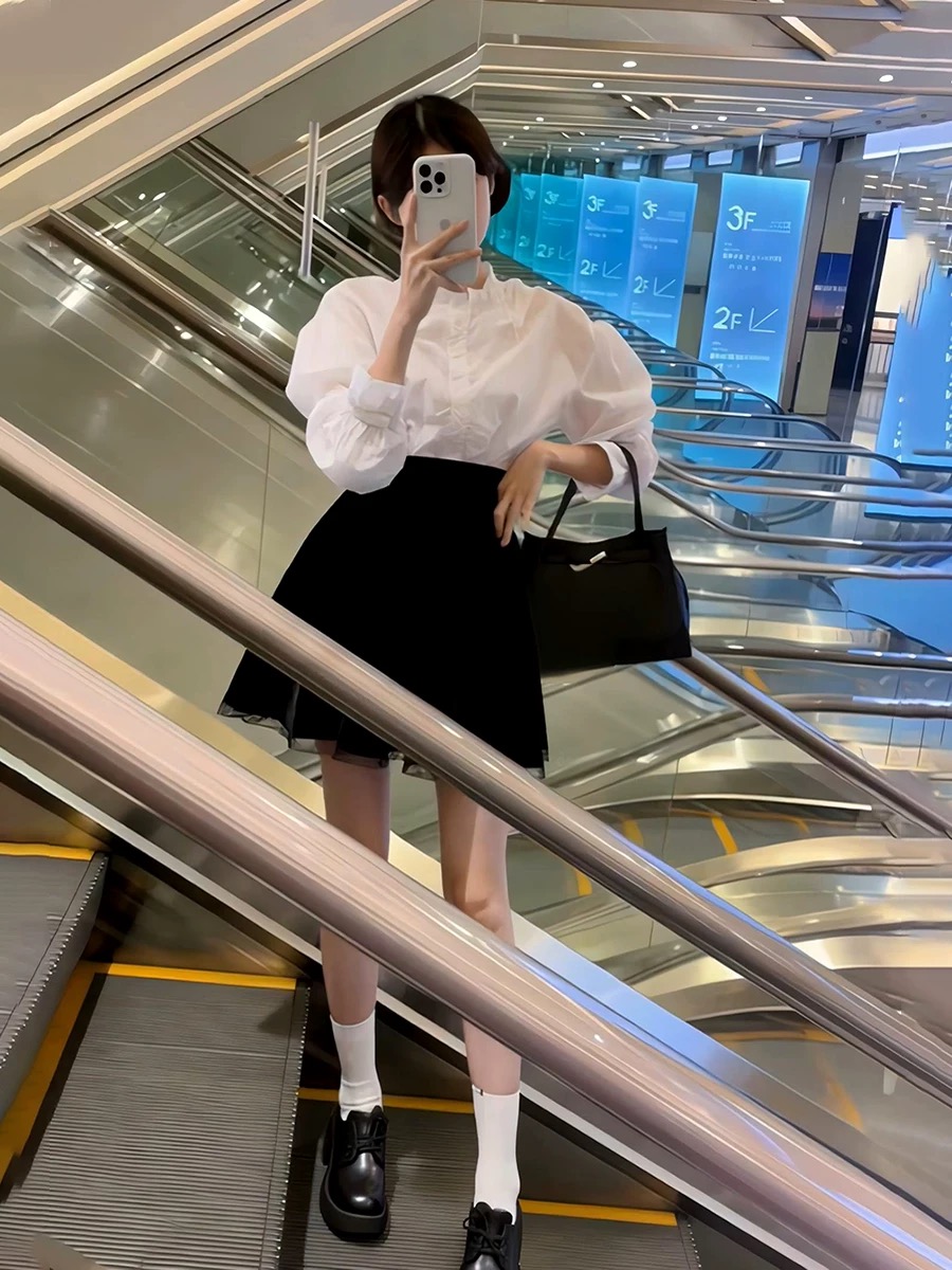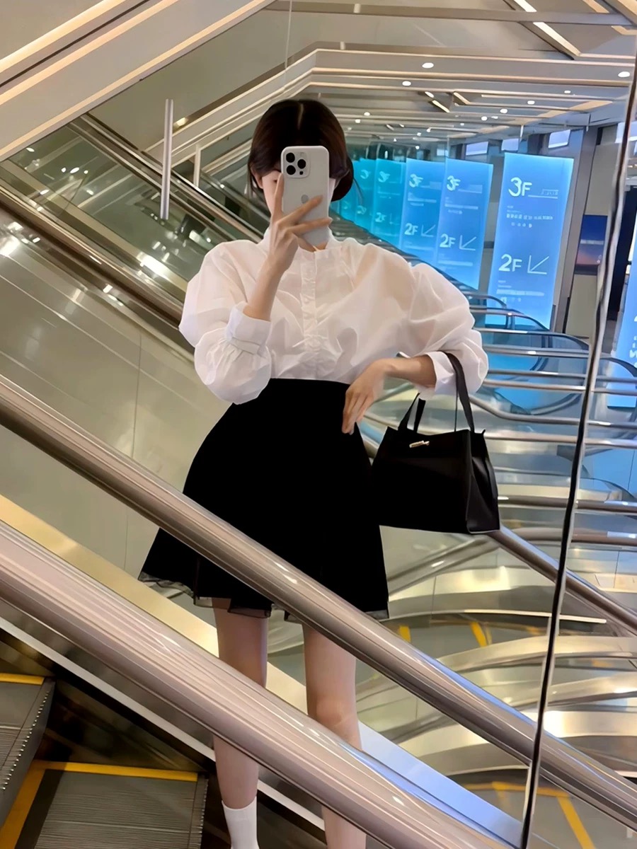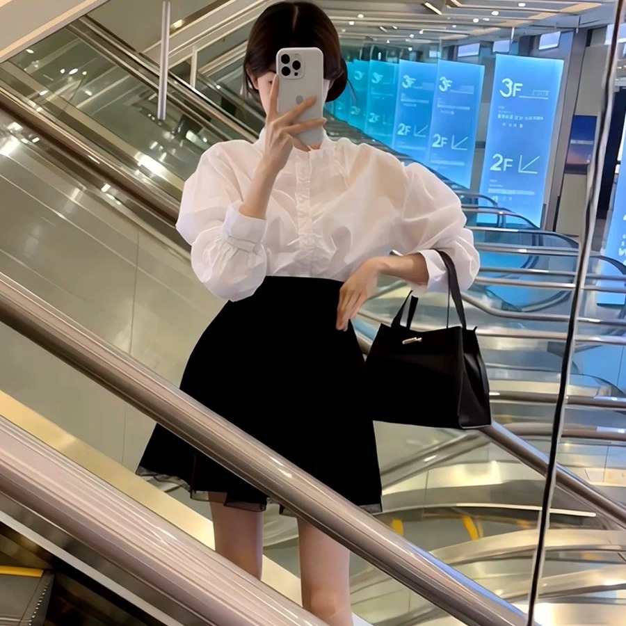 한국 동대문 2026 봄 새로운 패션 다용도 폴로 칼라 루즈핏 슬림해 보이는 연령 감소 긴팔 화이트 여성 셔츠