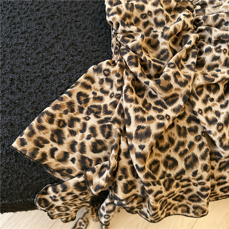 부드러운 바람 프릴 레오파드 무늬 캐미솔 봄 2026 불규칙 리본 루즈핏 연령 감소 치마 맨위