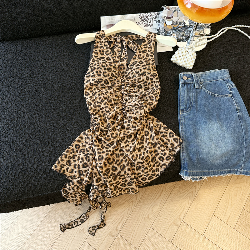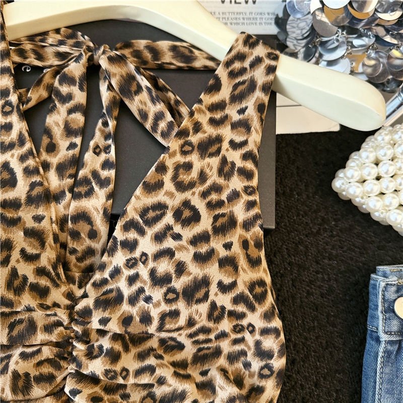 레트로 레오파드 무늬 아름다움 뒤로 V넥 행침 목 캐미솔 26 여름 핫걸 몸매 가꾸기 민소매 외출용 디자인 센스 맨위