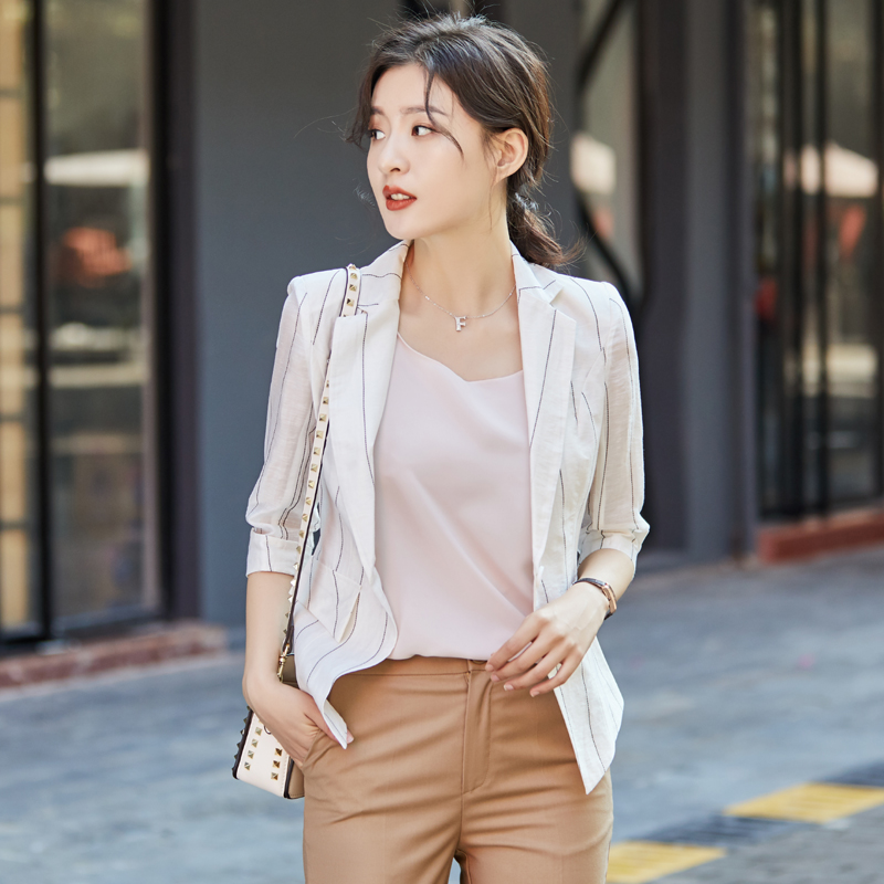 2026 작은 양복 여성 코트 봄 여름 얇은 스타일 중간 소매 작은 키 7부 소매 쇼트 스타일 도루 센스 인터넷 유명인 스트라이프 정장