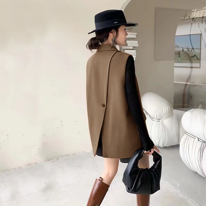 유럽 상품 루즈핏 2026 새로운 두 버클 조끼 여성 봄 가을 외부 가져 가라. 정장 베스트 재킷 디자인 센스 작은 대중