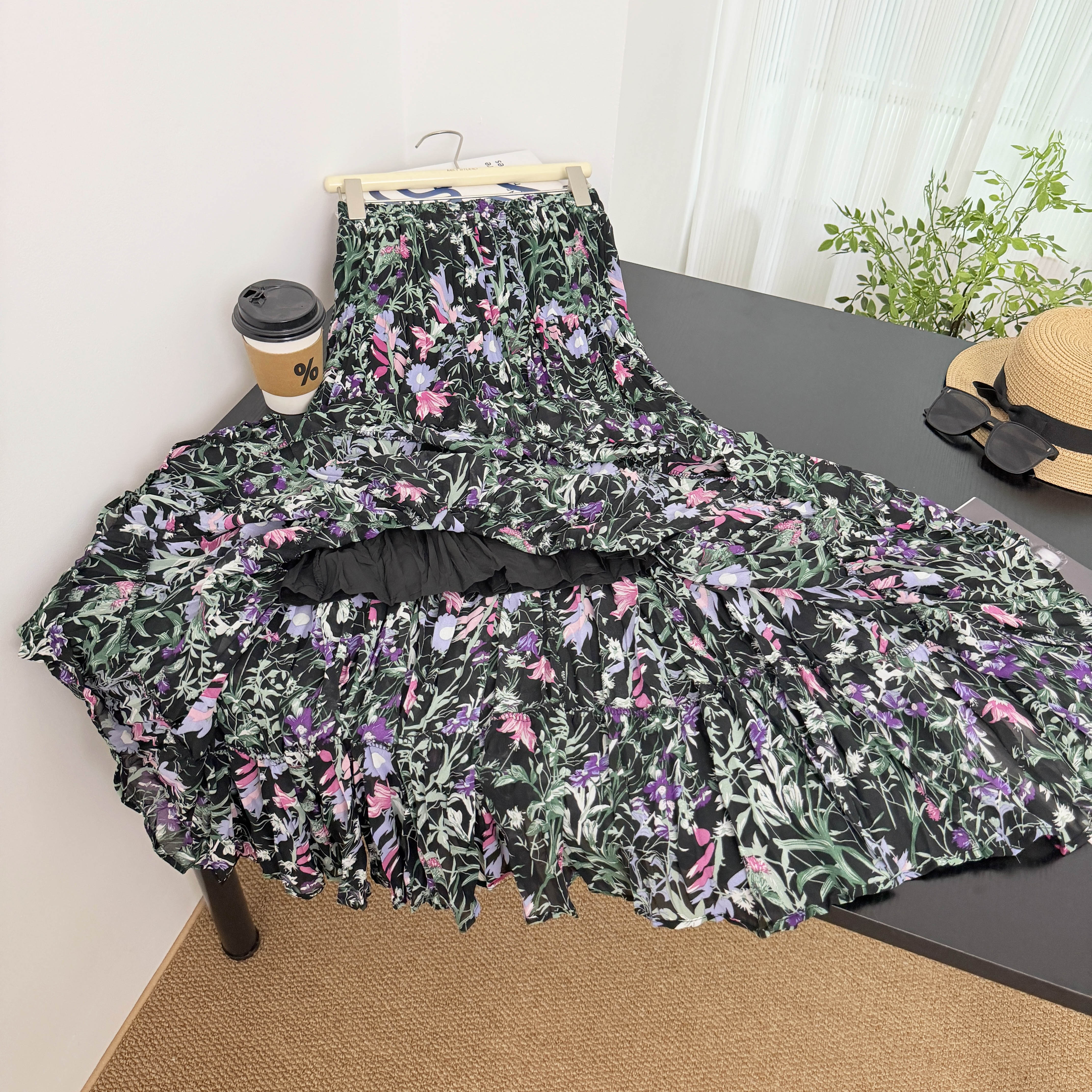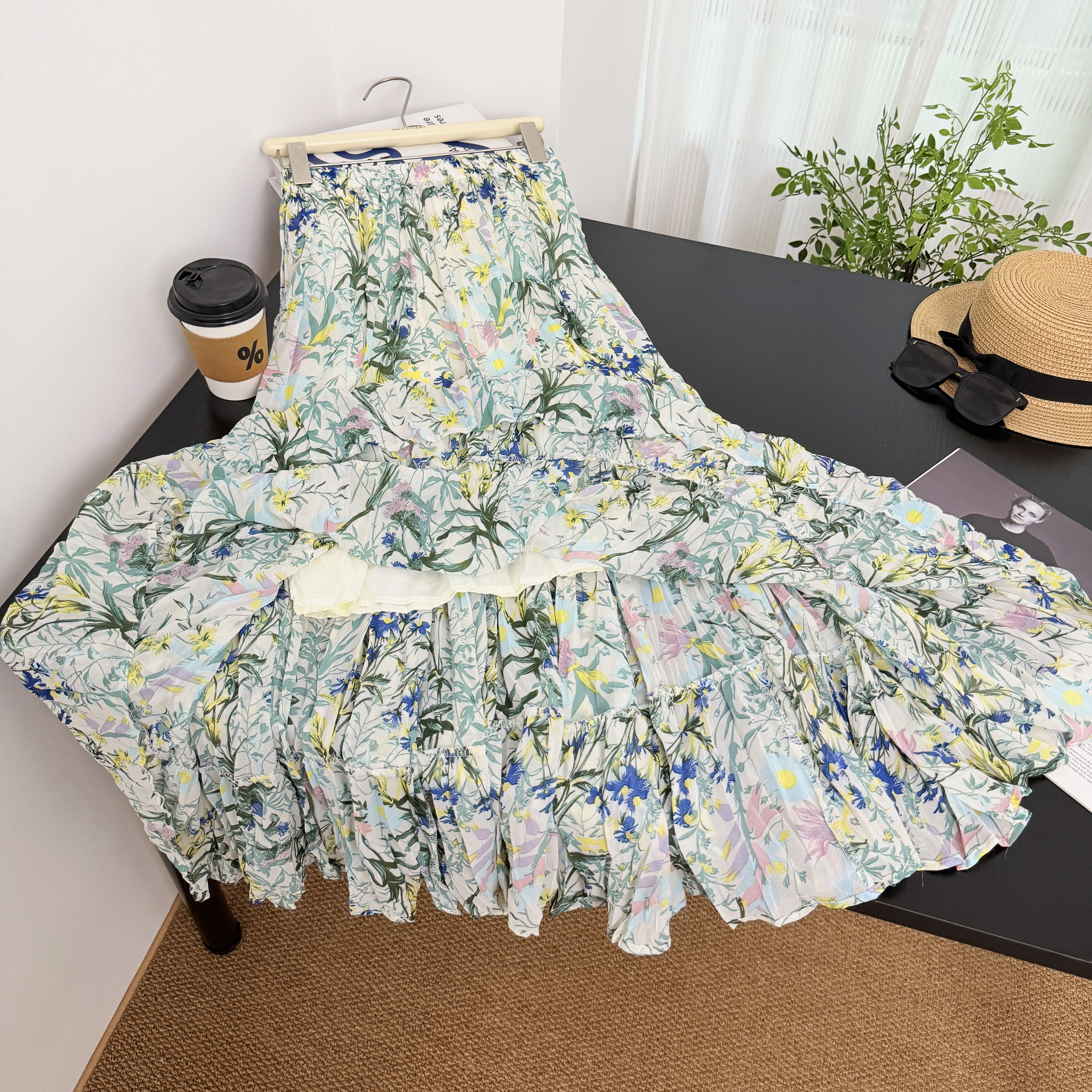 부드러운 바람 꽃무늬 쉬폰 반신 스커트 여성 2026 여름 새로운 다용도 도루 센스 큰 진자 롱 스커트 하이웨이스트 A라인 스커트