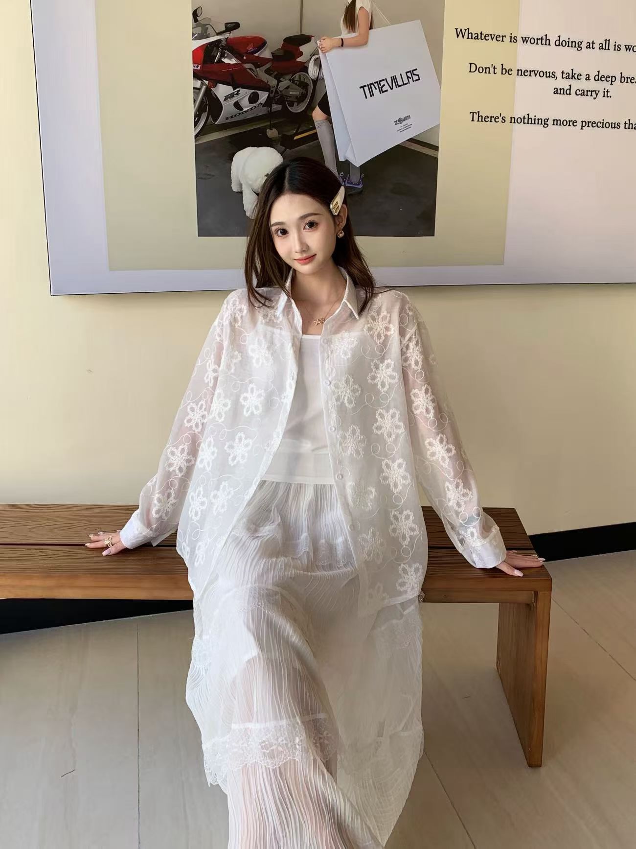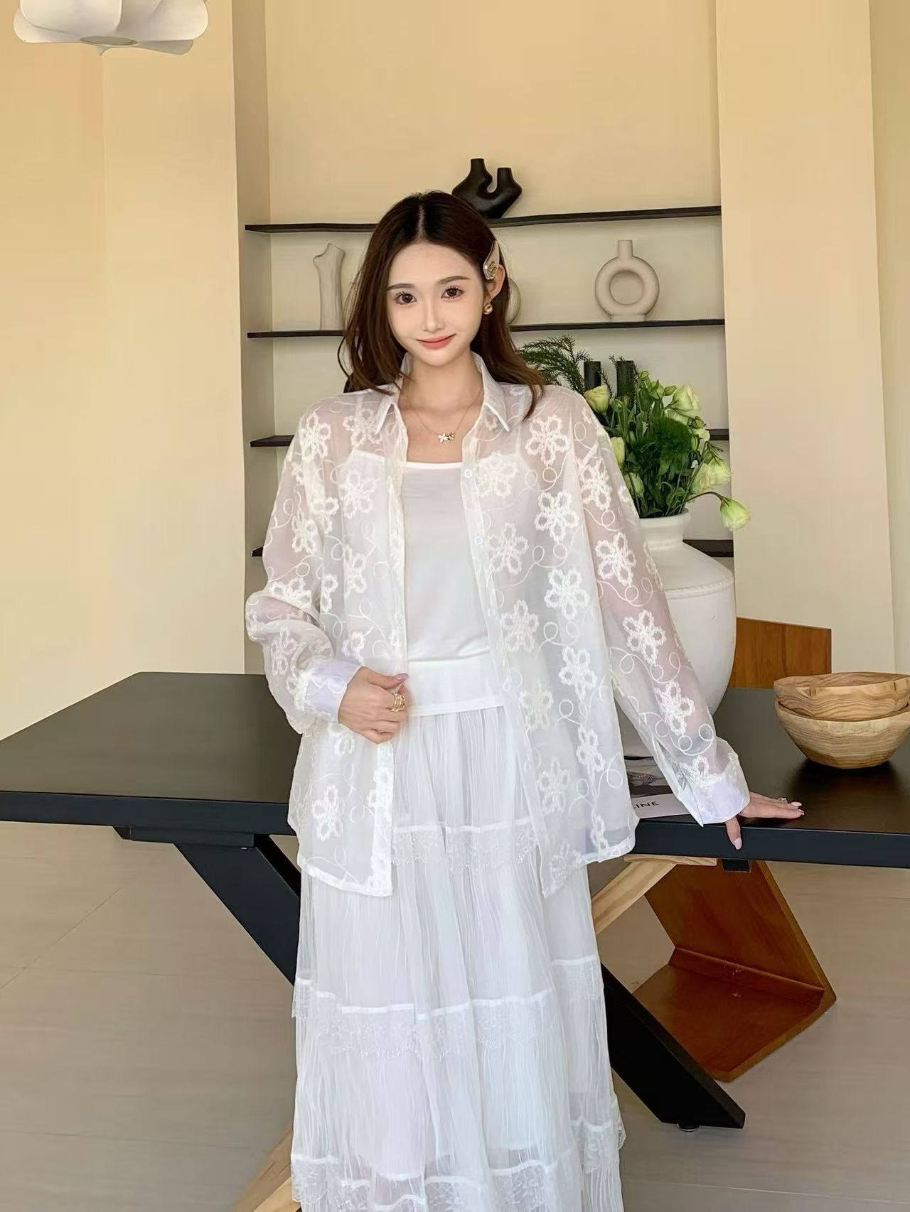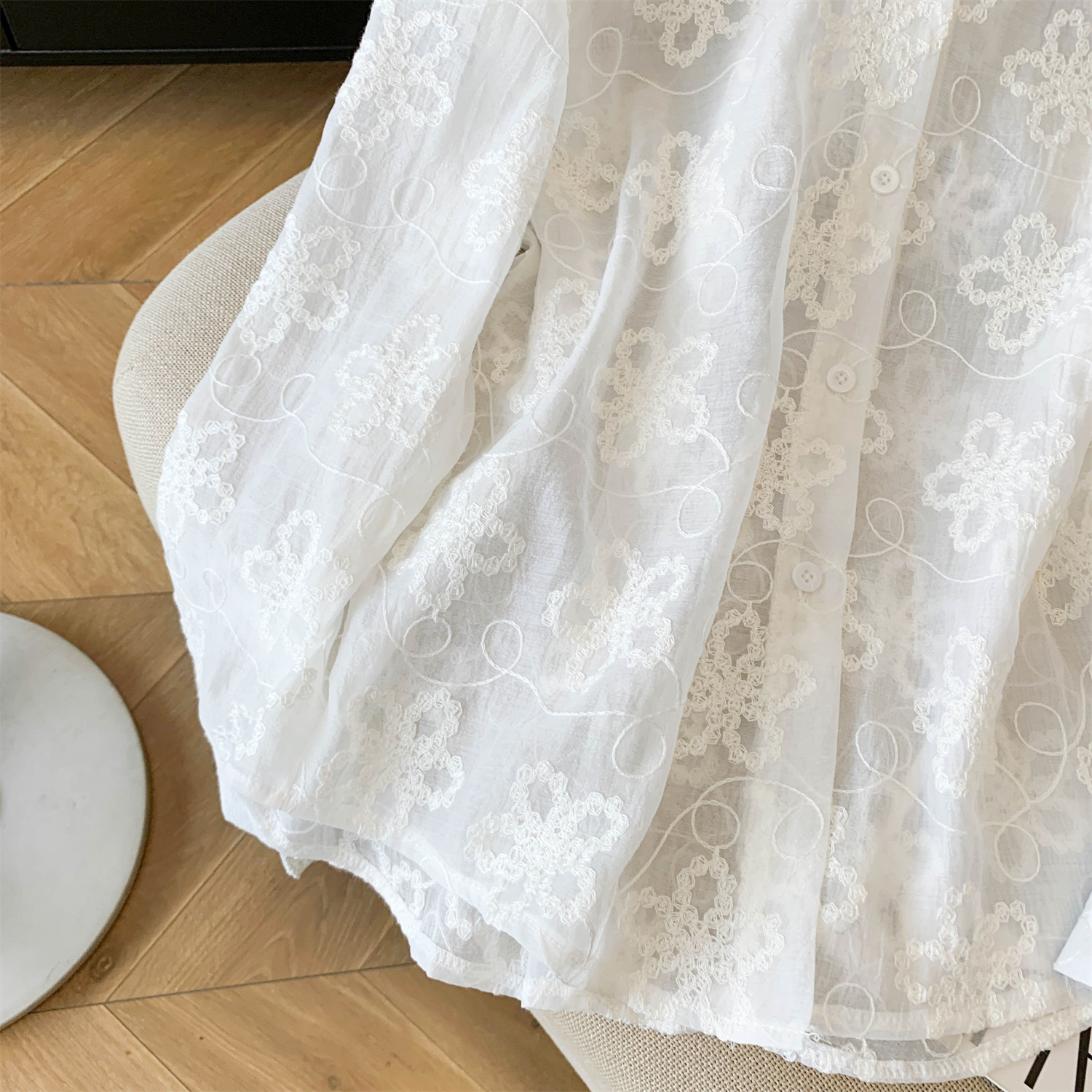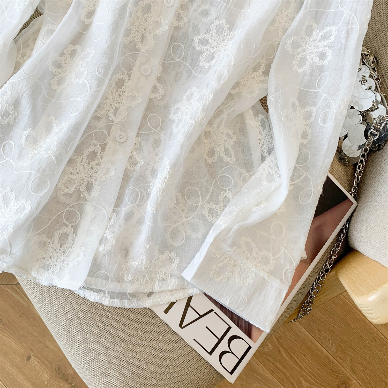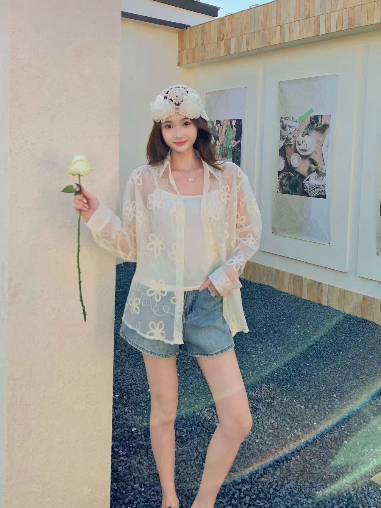 봄 아모이 레이스 자수 얇은 스타일 긴팔 자외선 차단 의류 에어컨 셔츠 맨위 루즈핏 슬림해 보이는 다용도 셔츠 짧은 외투