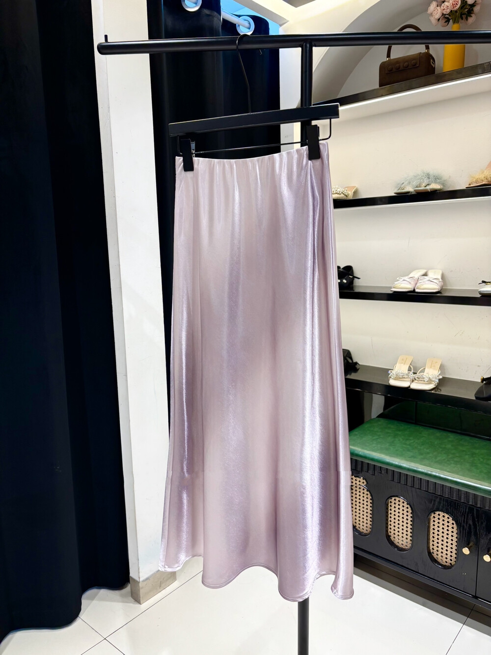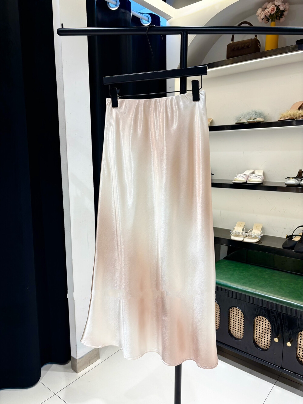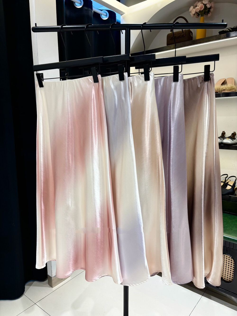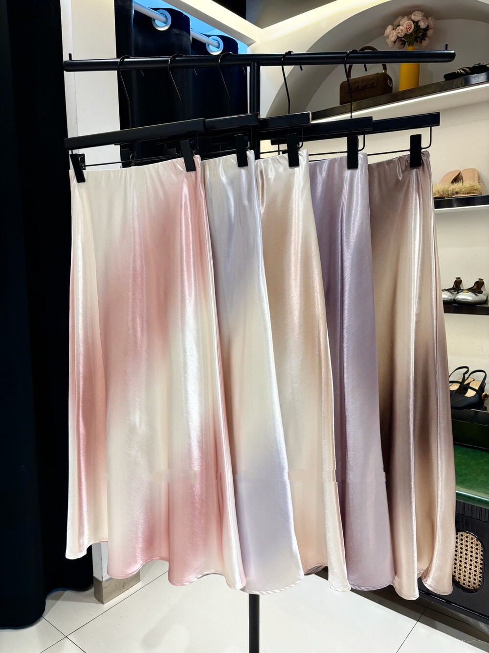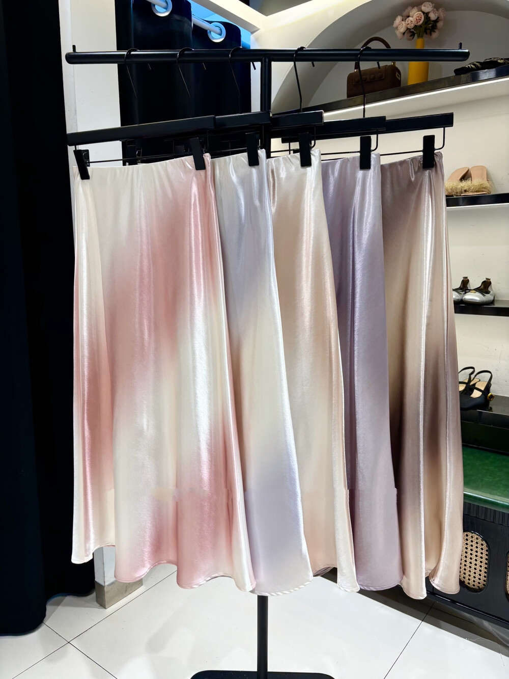 여름 켜기 새로운 우아함 품격 새틴 점차적으로 숱이 플래시 광택 허리밴드 한 마디 반신 스커트