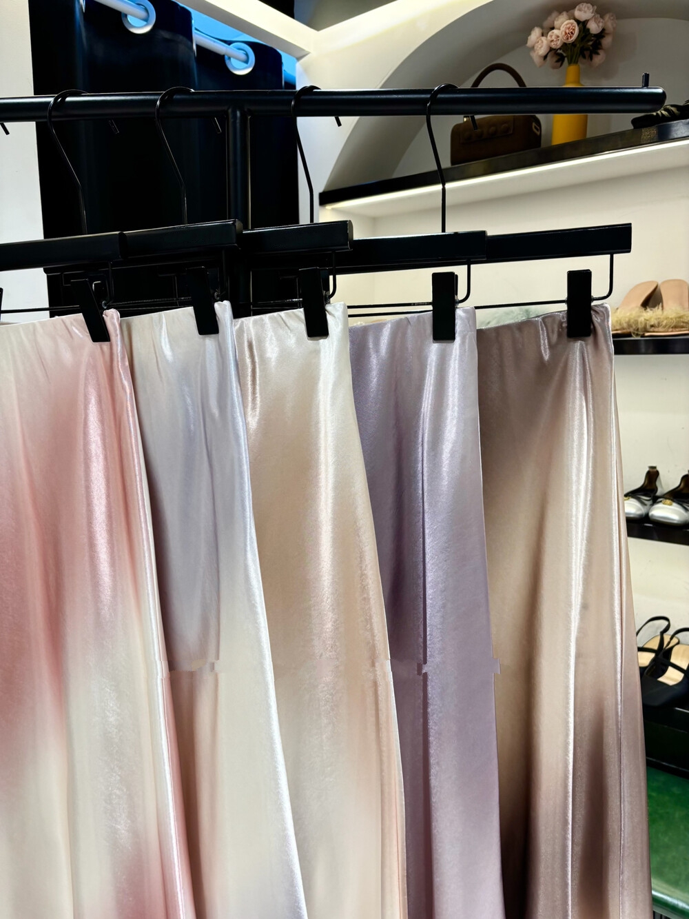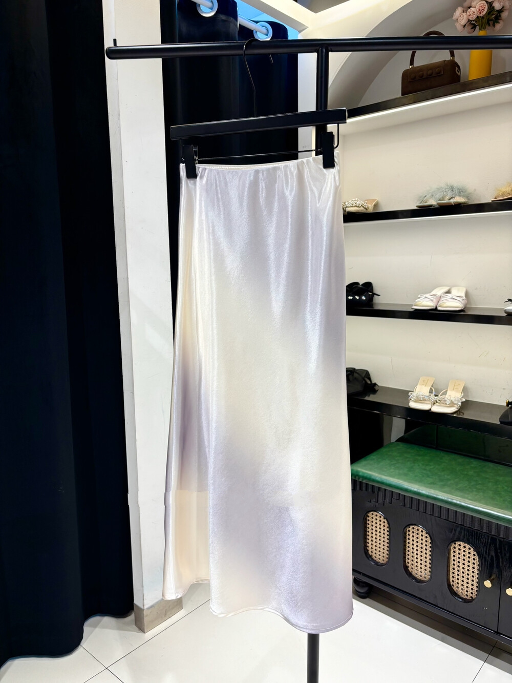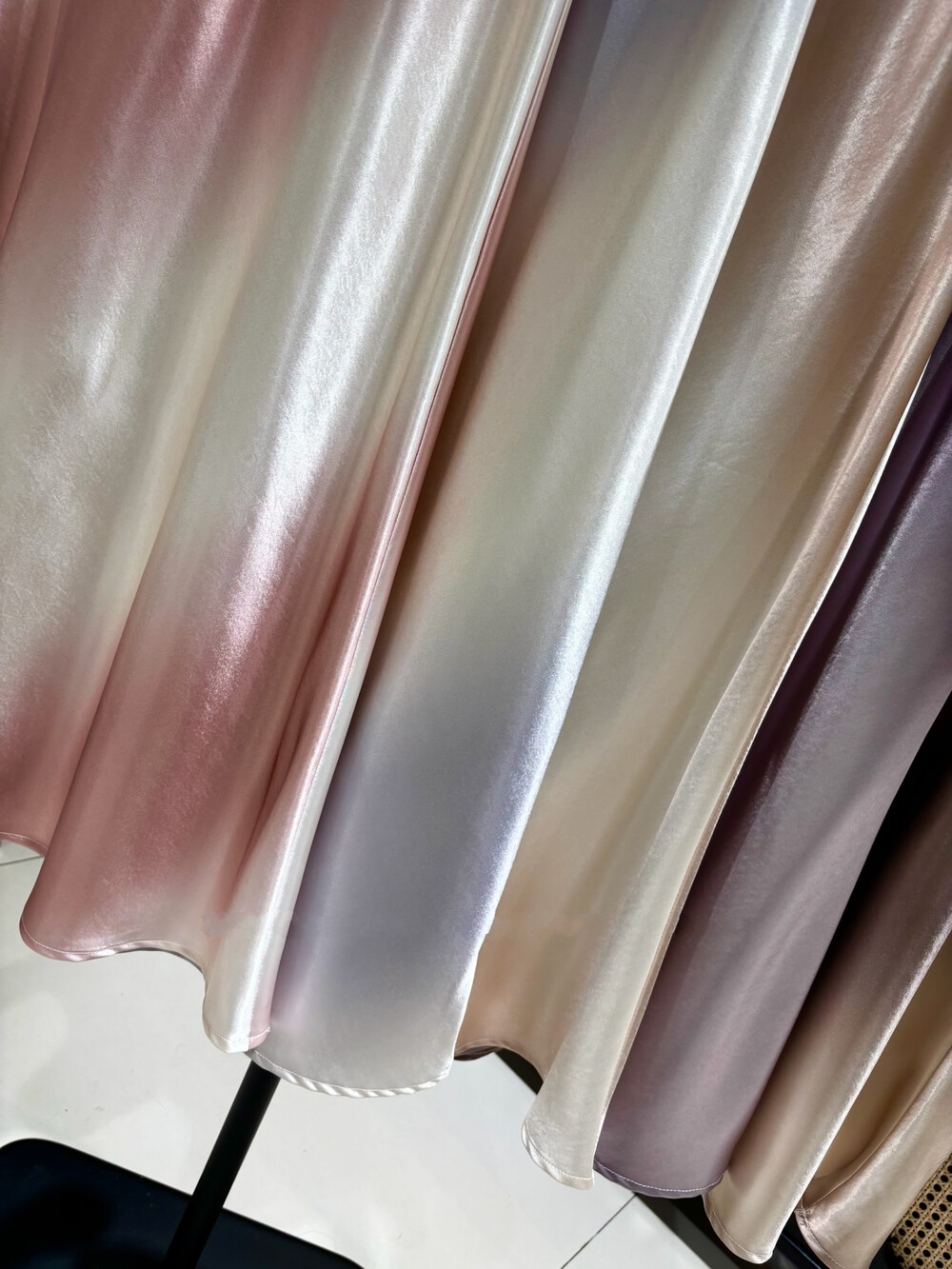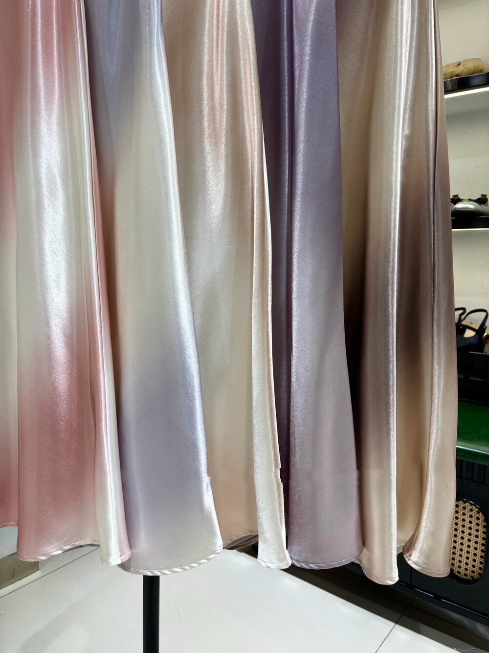 여름 켜기 새로운 우아함 품격 새틴 점차적으로 숱이 플래시 광택 허리밴드 한 마디 반신 스커트