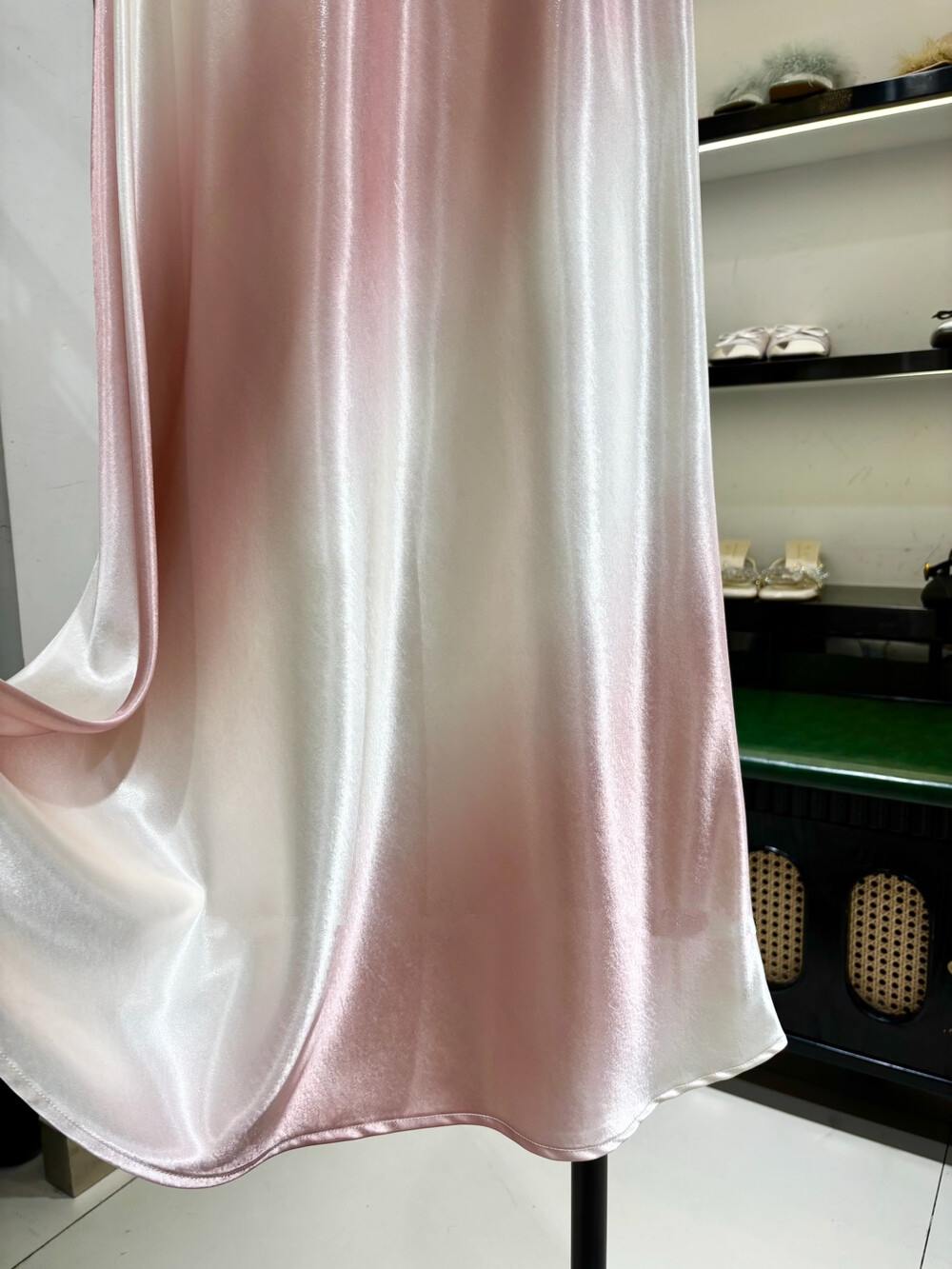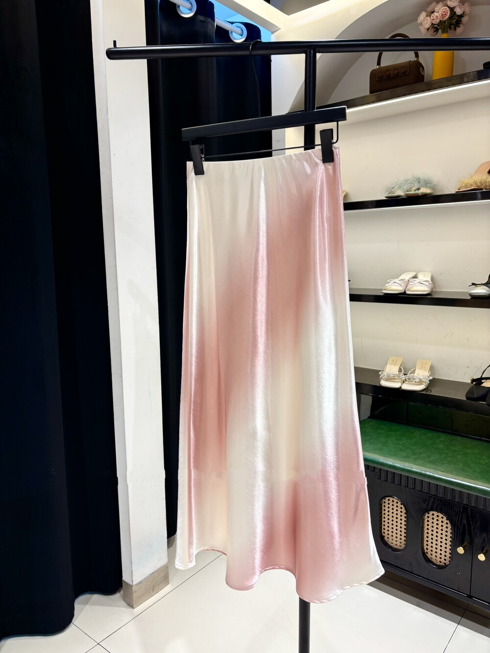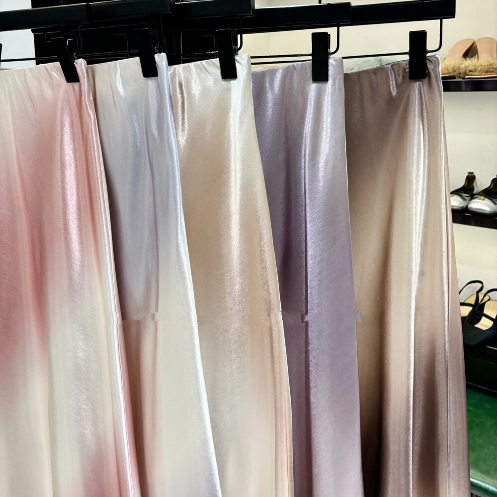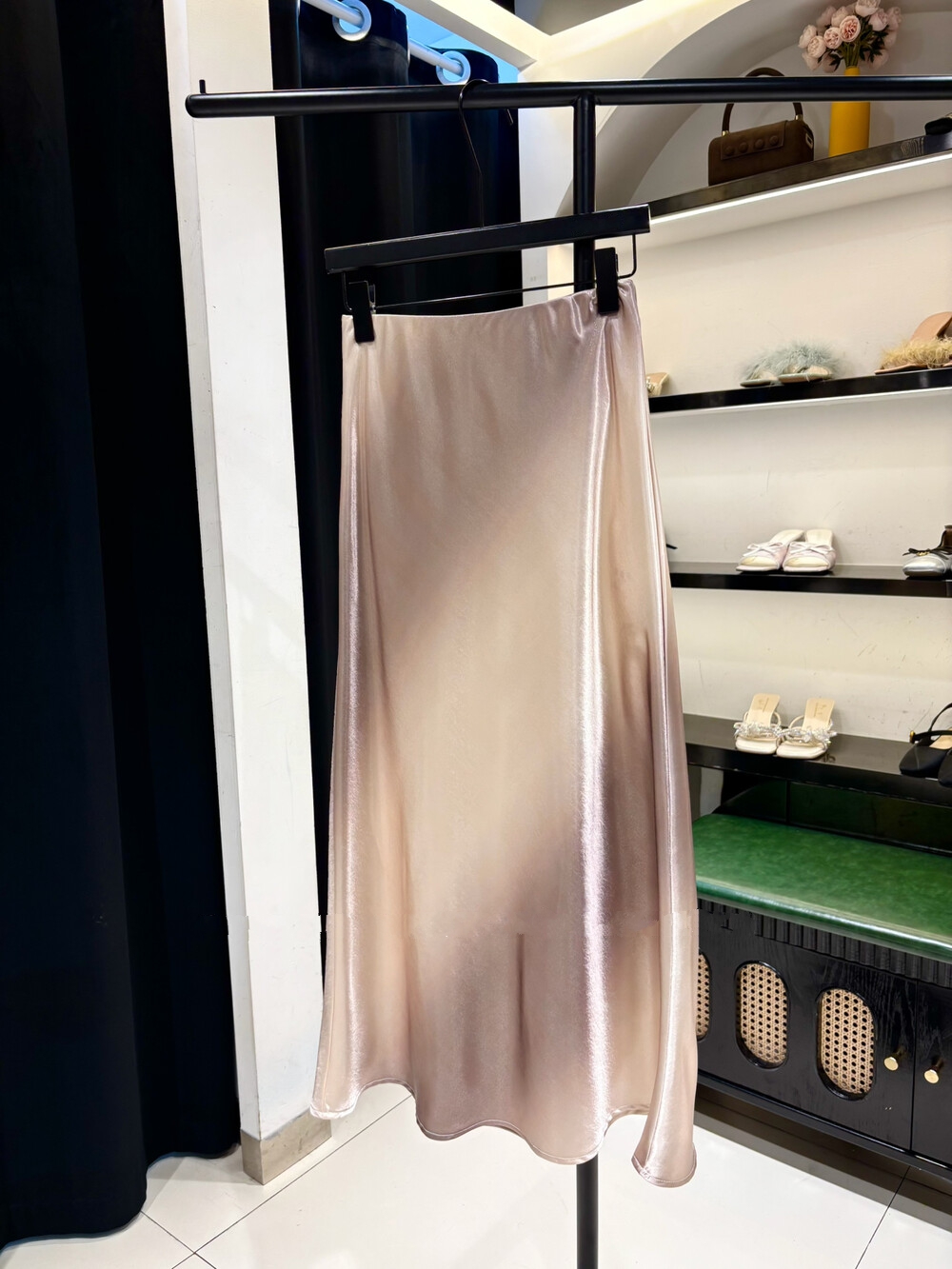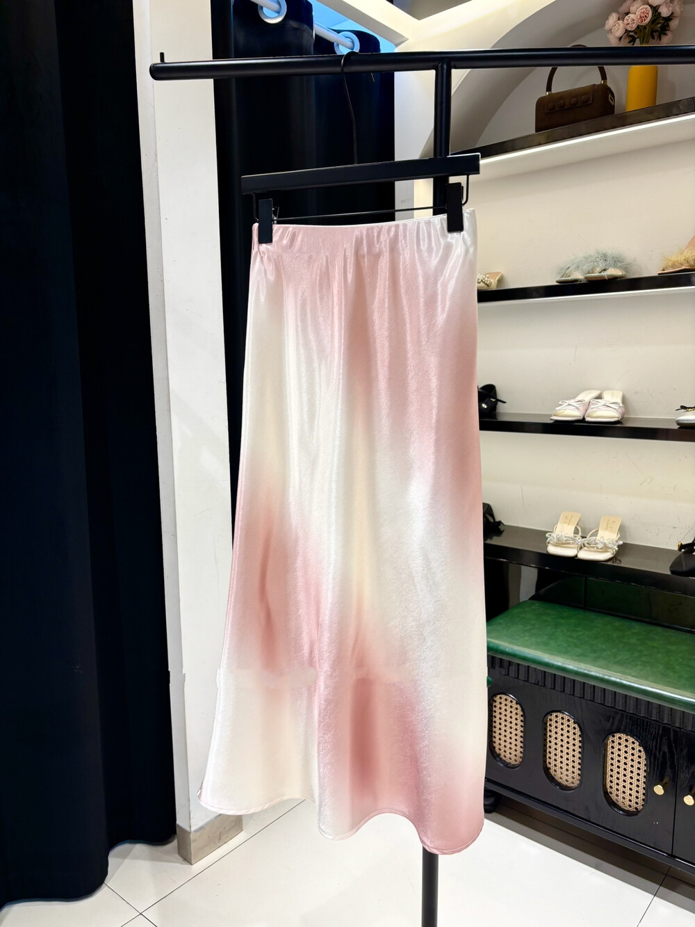 여름 켜기 새로운 우아함 품격 새틴 점차적으로 숱이 플래시 광택 허리밴드 한 마디 반신 스커트