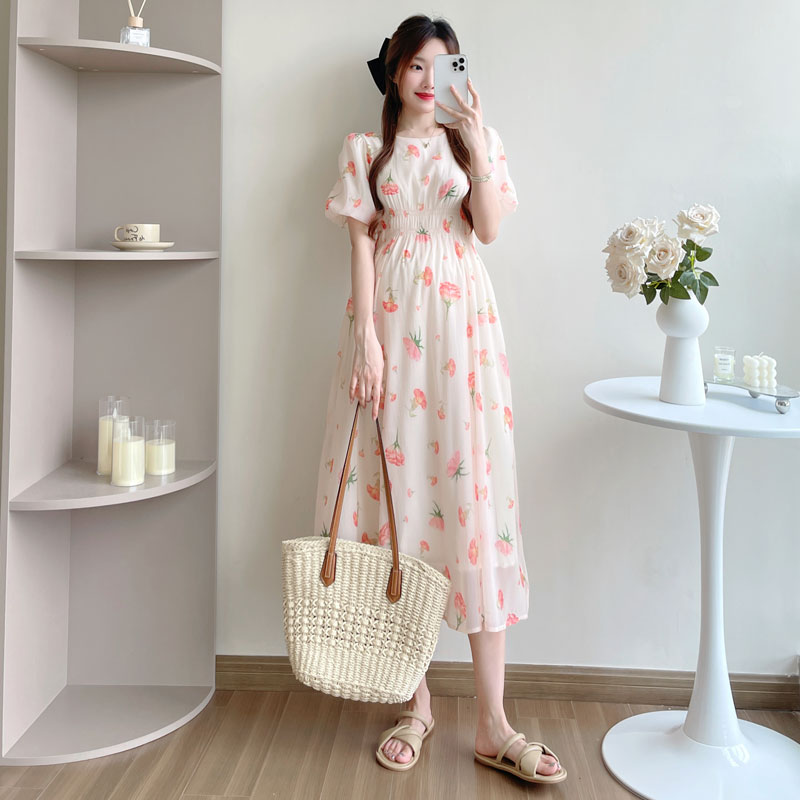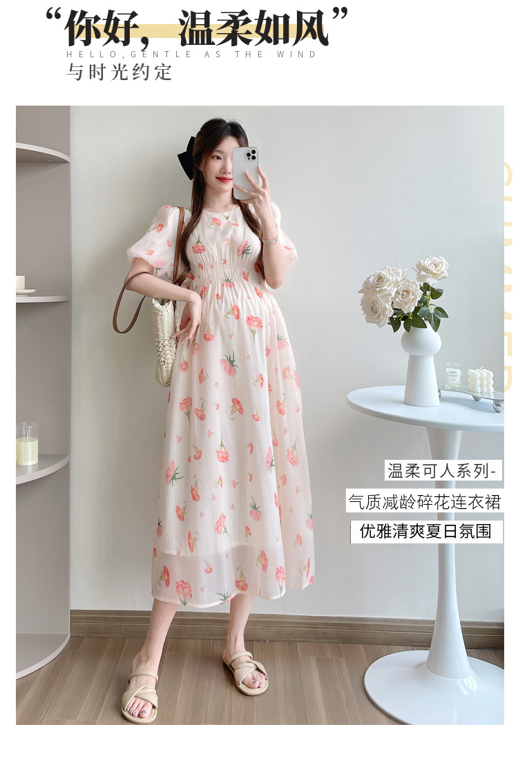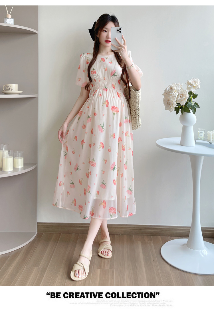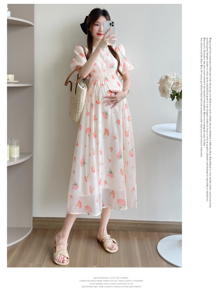 실사 지금 또는 2026 출산 착용 여름 새로운 프랑스식 광장 칼라 꽃무늬 임산부 드레스