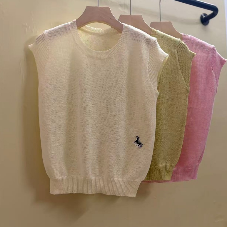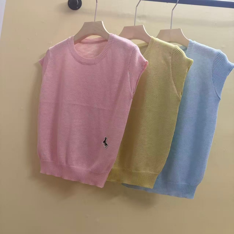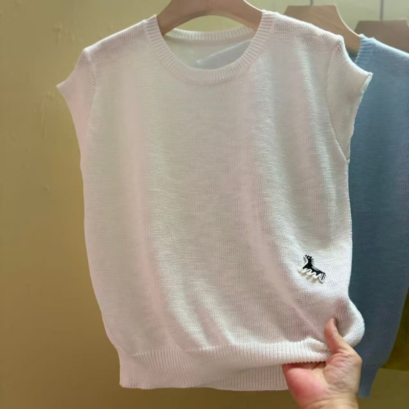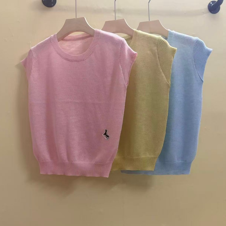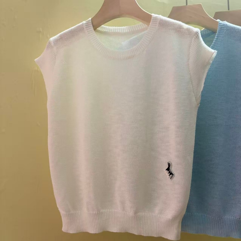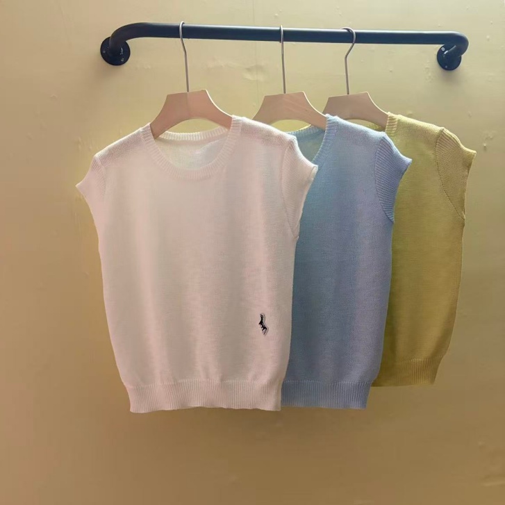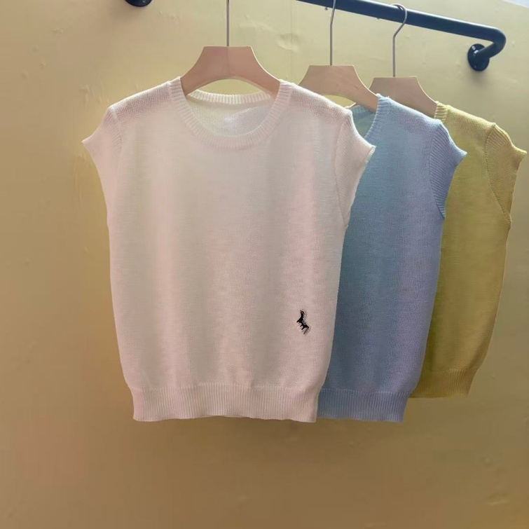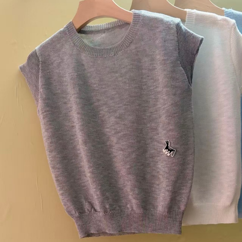 0262 여름 얇고 가벼운 통기성 오래된 돈 라운드 넥 슬림해 보이는 반팔 니트 스웨터