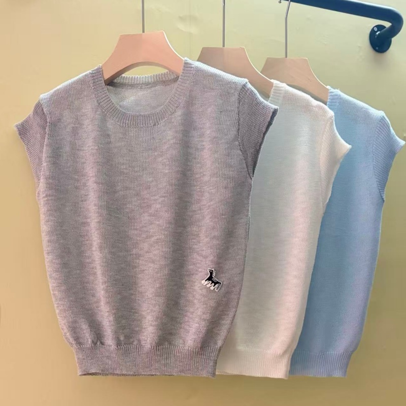 mz 반팔 니트 스웨터 여성 26 여름 질감 센스 부드러운 찹쌀 라운드 넥 슬림해 보이는 느긋한 센스 통기성 맨위