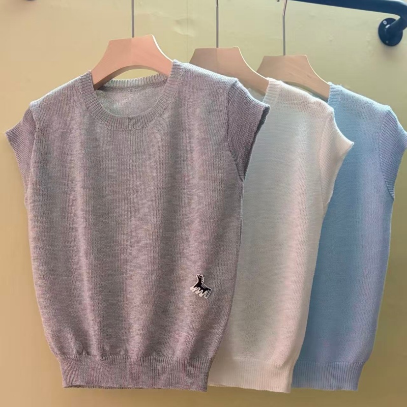 mz 작은 키 레이스 꽃 장식 항공기 소매 26 여름 신제품 아마 라운드 넥 여성 티셔츠 니트 스웨터