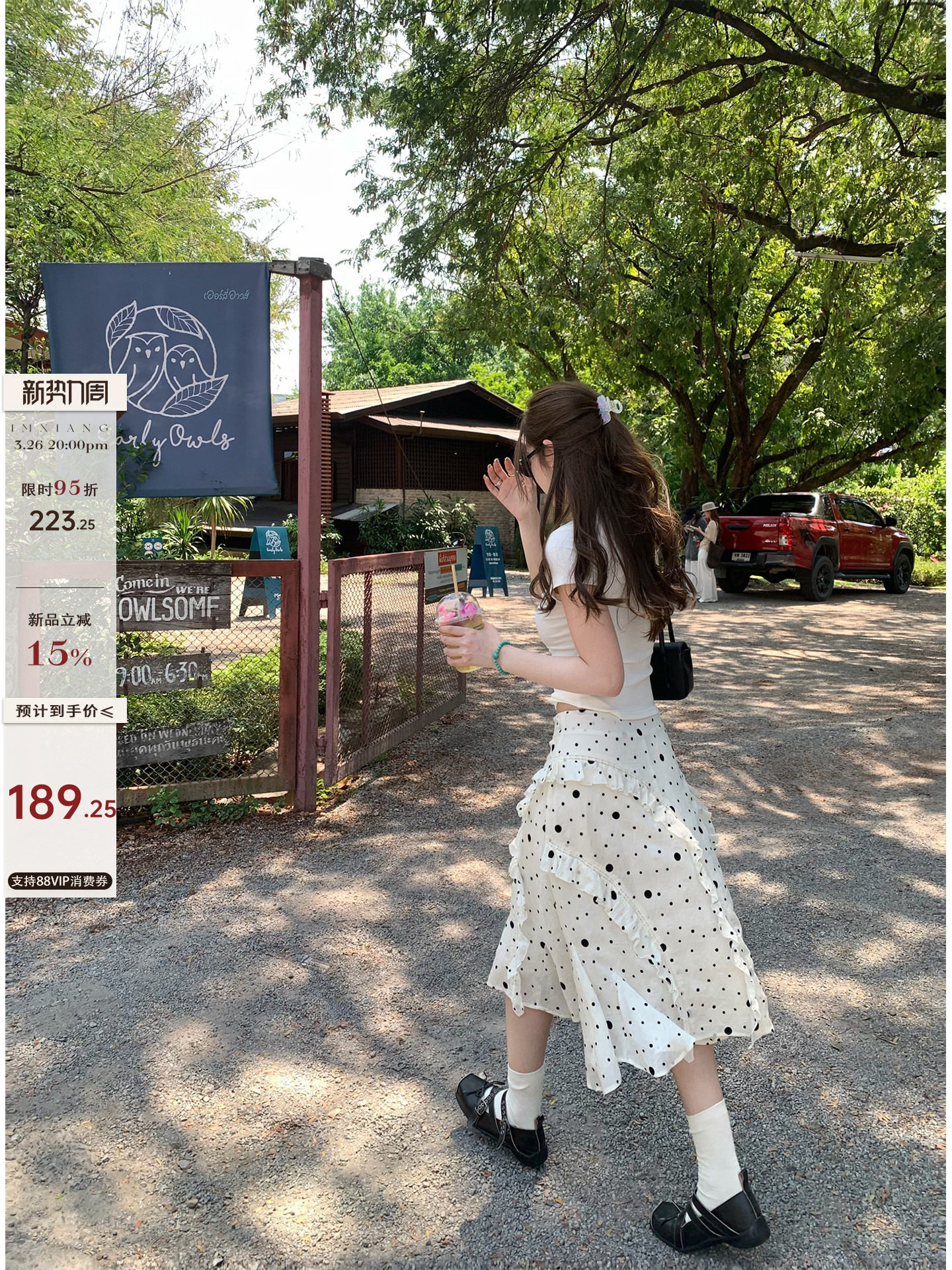 im ~까지 똑똑한 자르기 72 라이 경기 서울 식물 플러시 도트 무늬 중간 길이 스커트 우아한 불규칙 프릴 반신 스커트