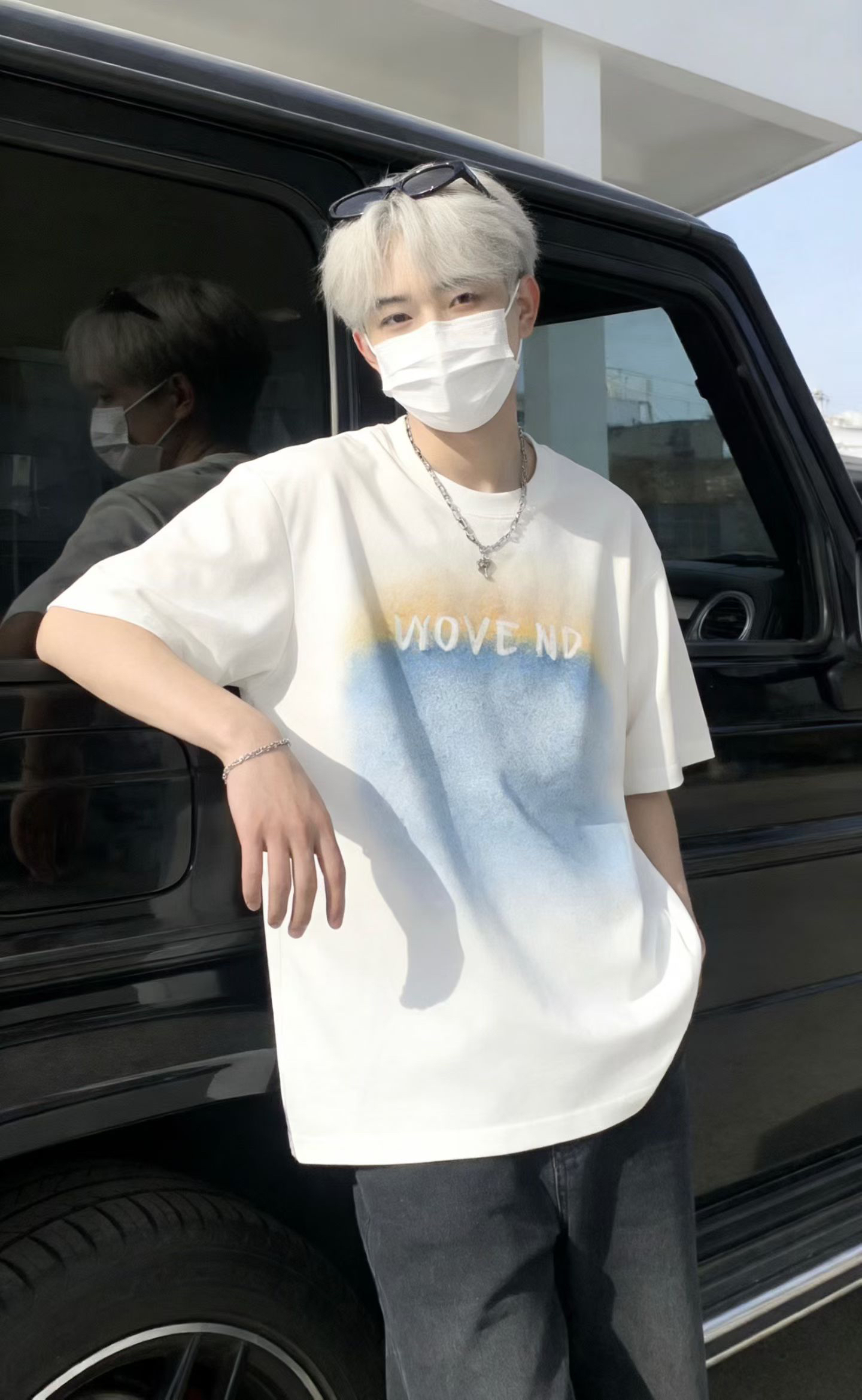 오리지널 sh 남녀 같은 단락 루즈핏 자수 라운드 넥 프린트 반팔 티셔츠 커플 트렌드