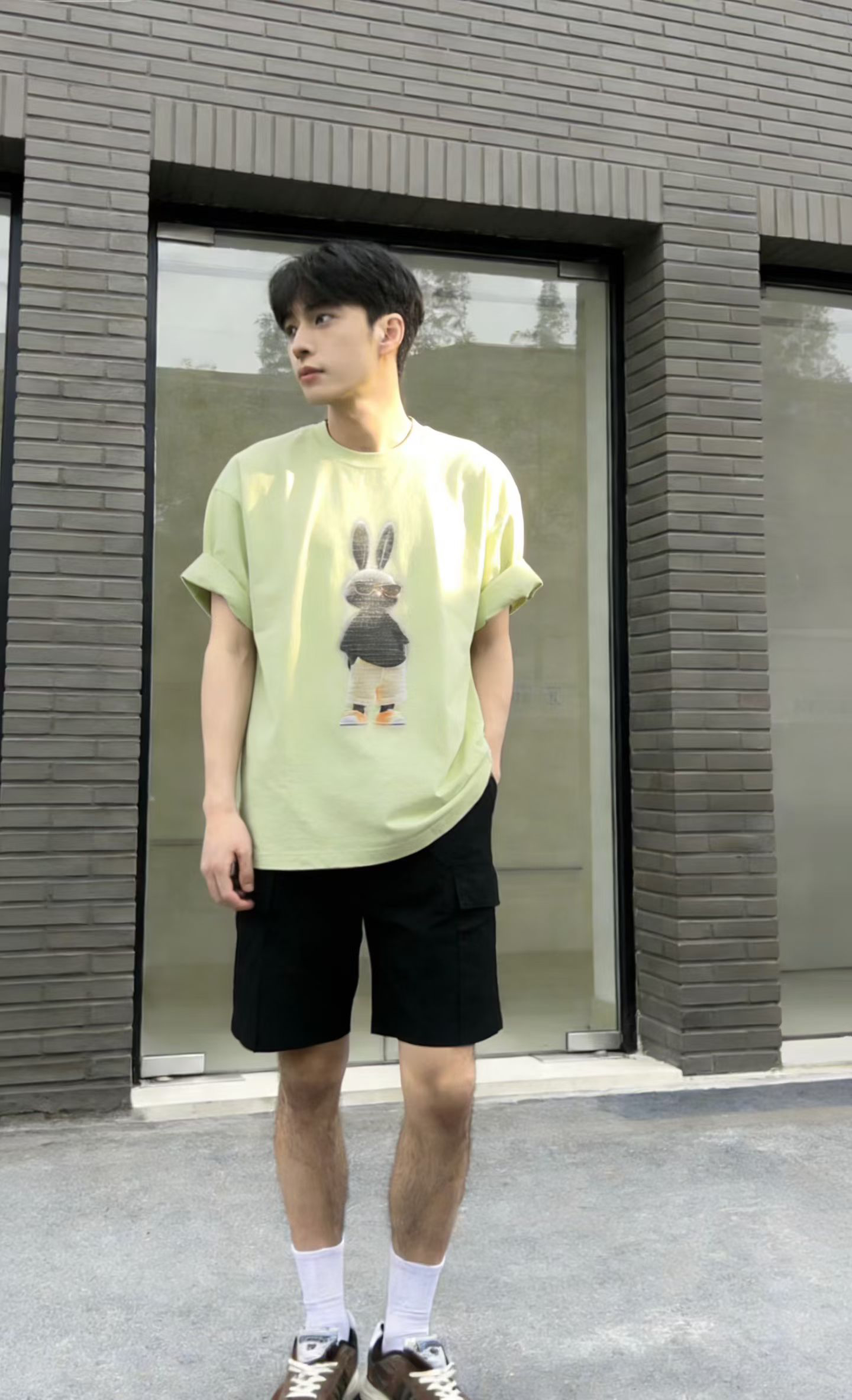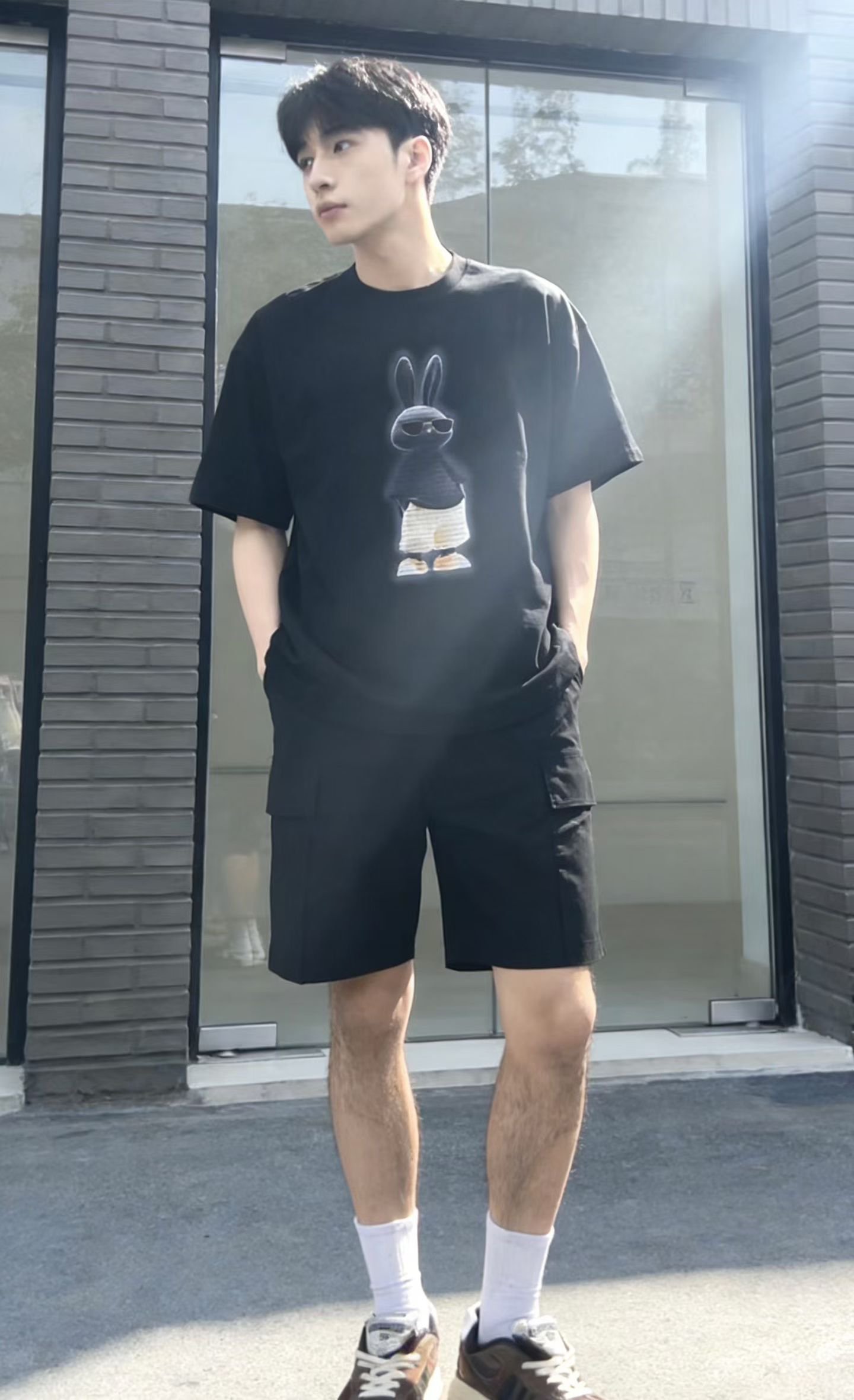 오리지널 sh 남녀 같은 단락 루즈핏 자수 라운드 넥 프린트 반팔 티셔츠 커플 트렌드