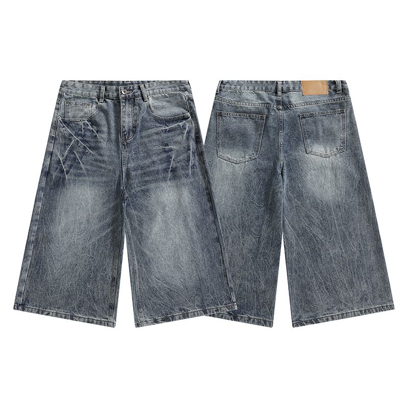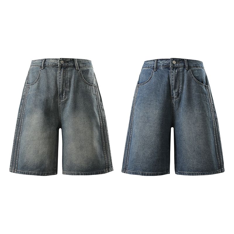 실사 2026 여름 새로운 아메리칸 워싱 그라데이션 넓은 다리 데님 바지 남자 루즈핏 캐주얼 다용도 반바지
