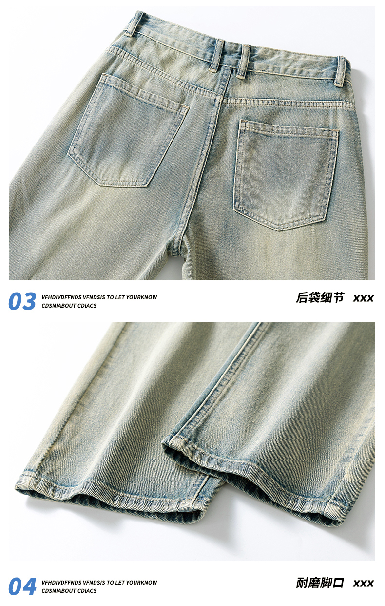 실사 2026 여름 새로운 아메리칸 레트로 루즈핏 넓은 다리가 짧다. 바지 다용도 도루 센스 스트레이트 7부 바지 청바지