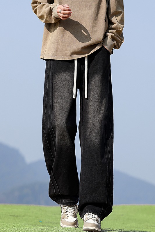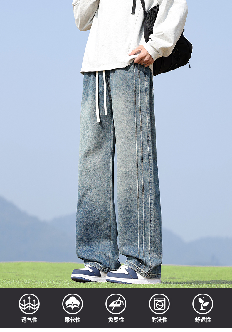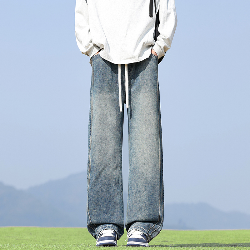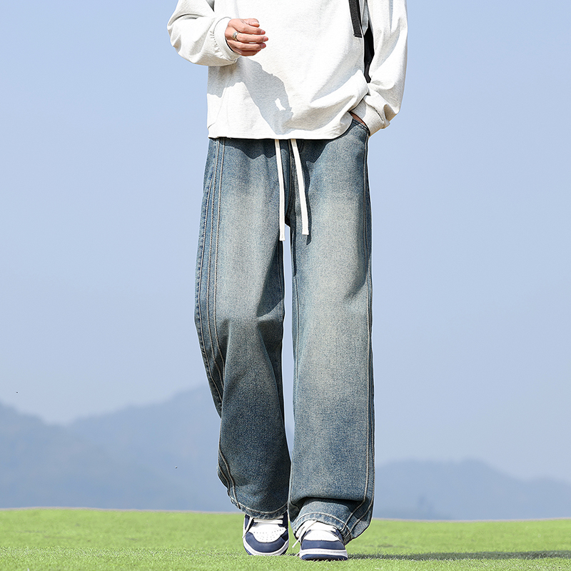 실사 2026 봄 새로운 무거운 아메리칸 워싱 2021m 핏 스타일 다용도 청바지 남녀 루즈핏 부츠컷