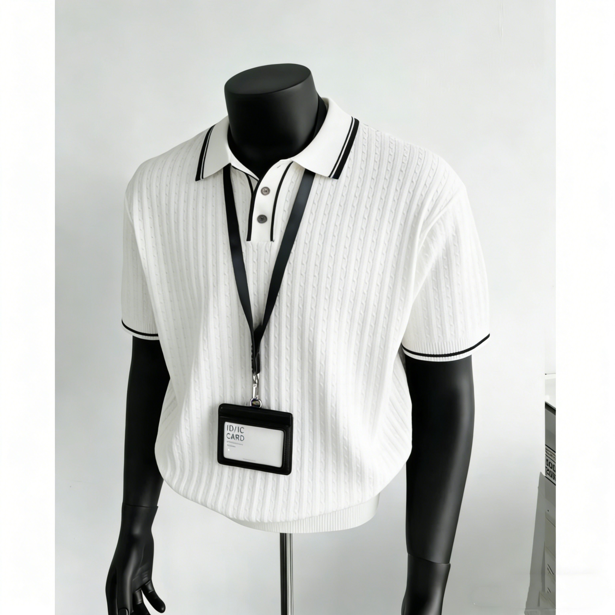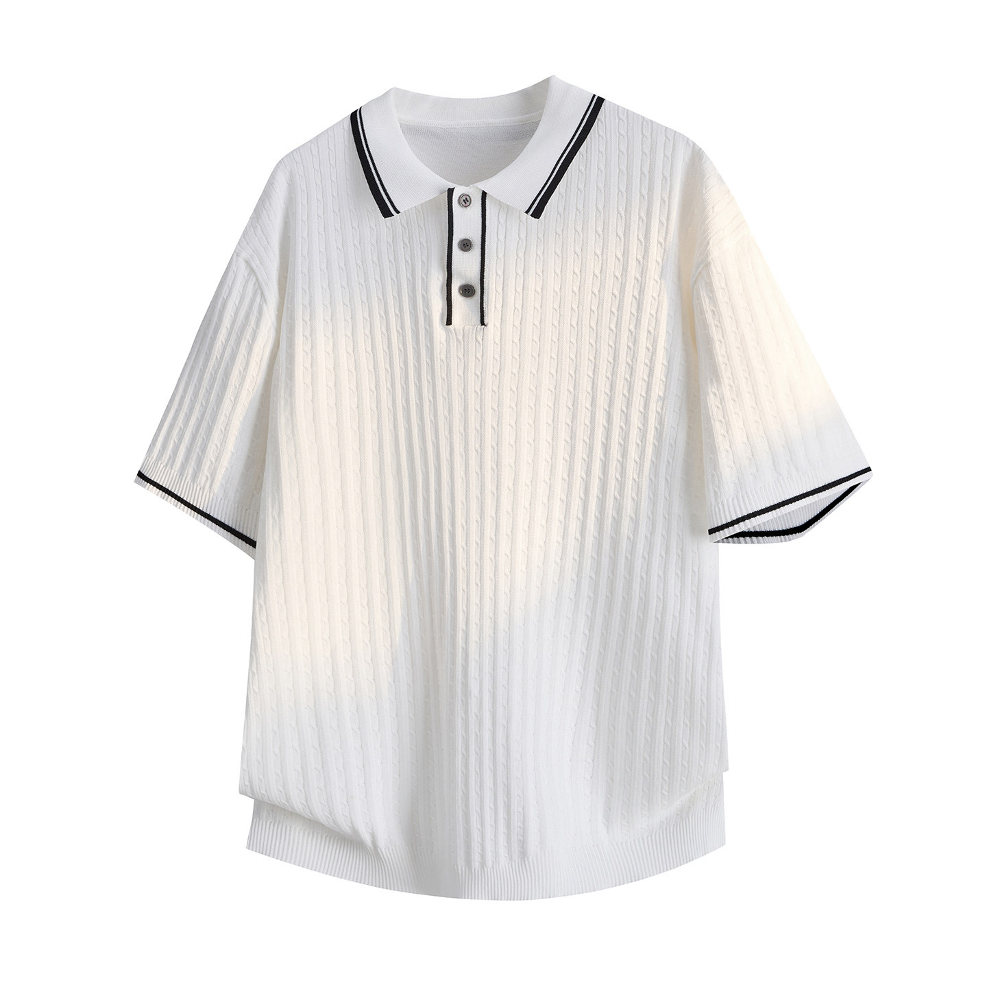 홀로우 아웃 얼음 실크 하프 지퍼 POLO 셔츠 남자 반팔 몸매 가꾸기 화이트 니트 스웨터 남성 2026 새로운 여름