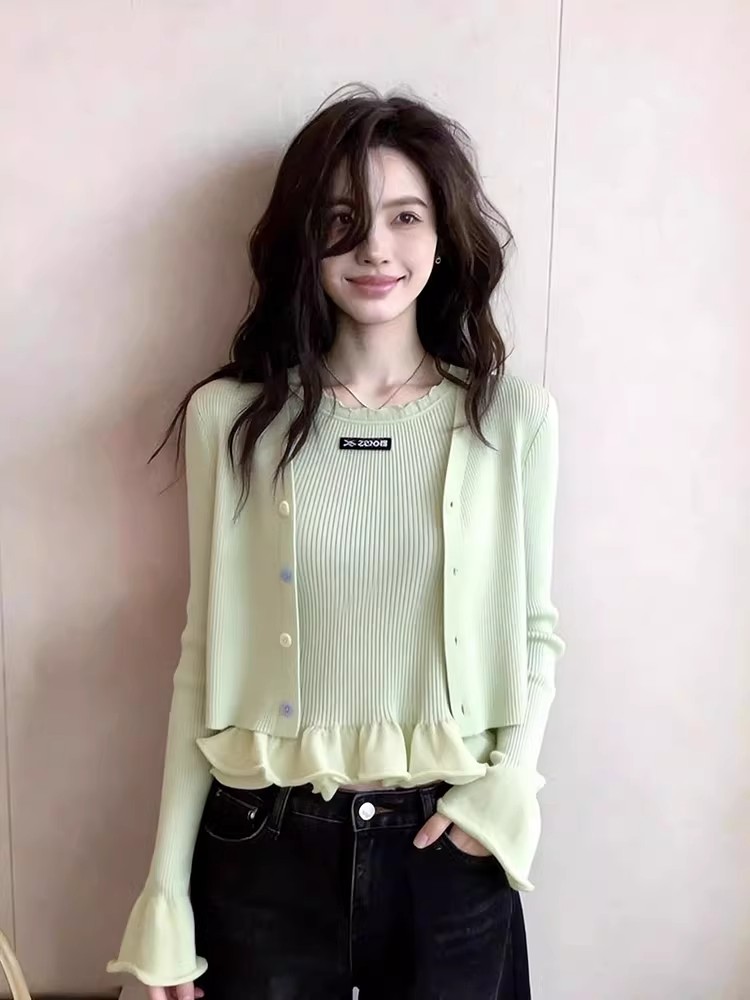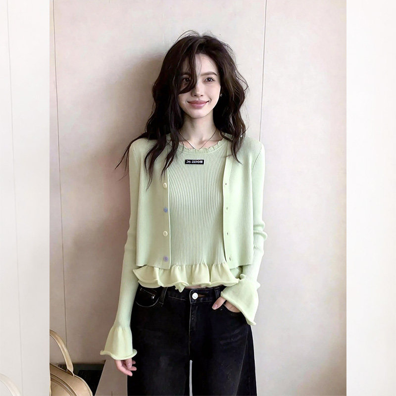 한 부서 V넥 긴팔 니트 오픈 가디건 여성 가을 새로운 다용도 슬림해 보이는 외부 가져 가라. 재킷 부드러운 찹쌀 연령 감소 작은 맨위