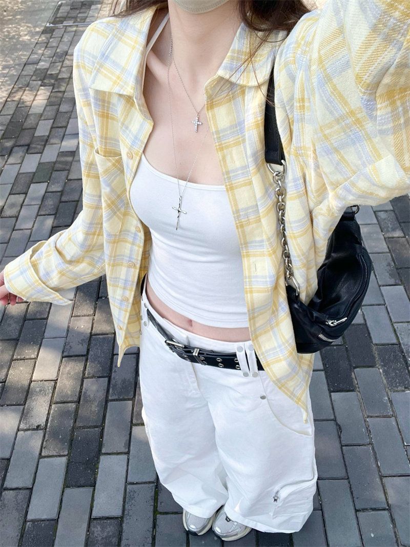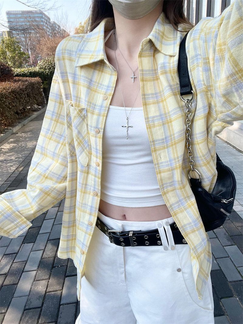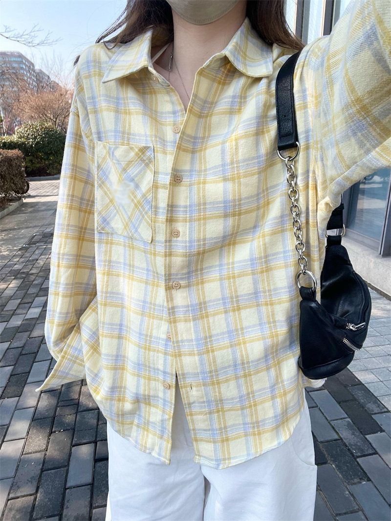 법률 시스템 고급 센스 새로운 스택 착용 격자 무늬 셔츠 여성 긴 소매 자외선 차단 느긋한 바람 외출용 편안함 다용도 셔츠
