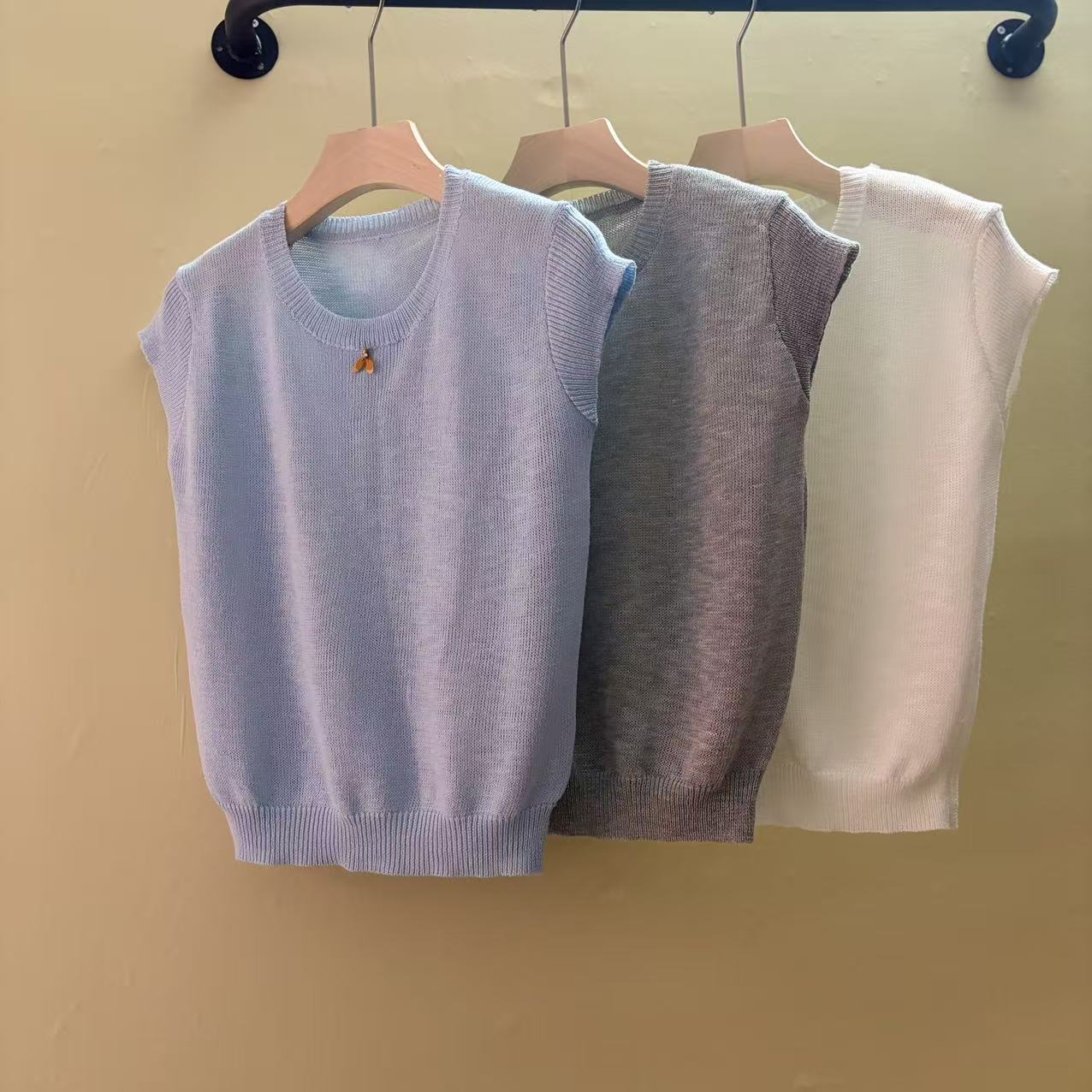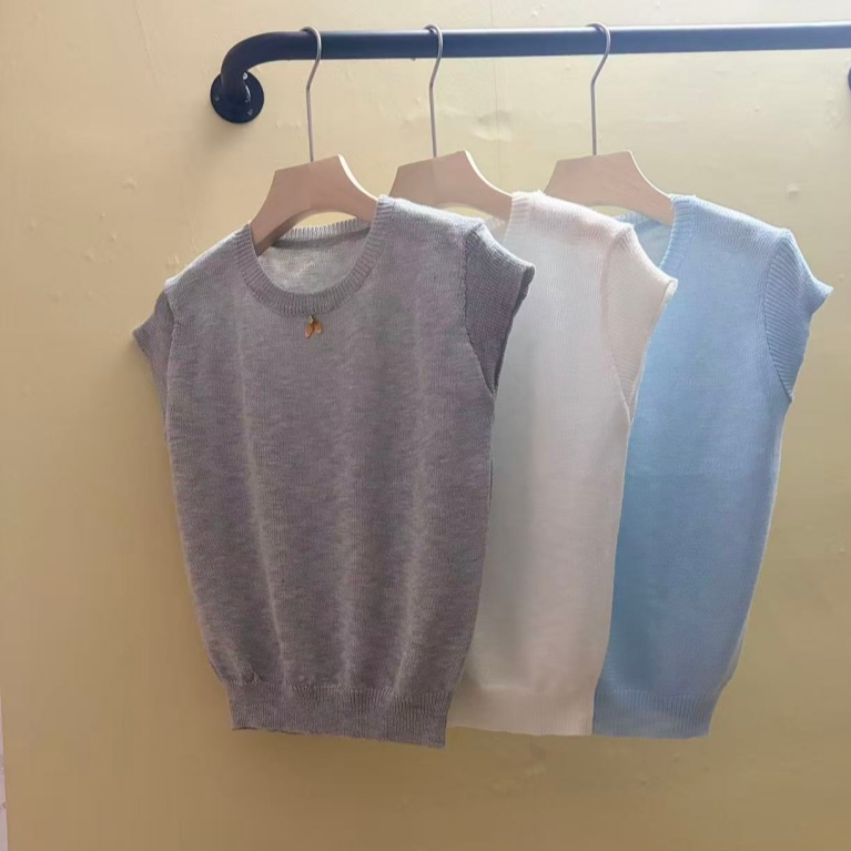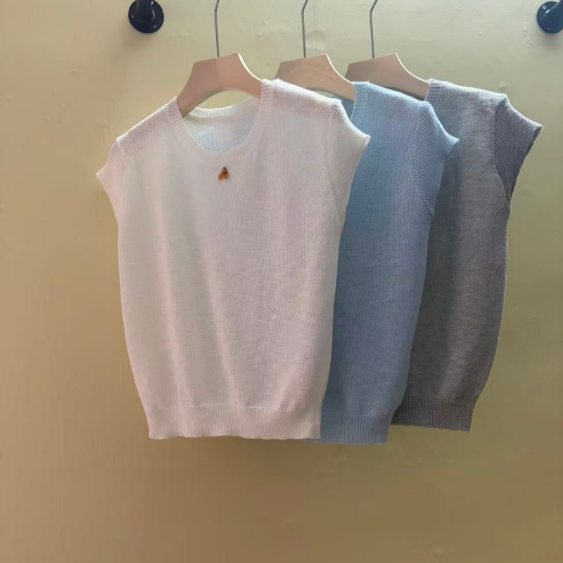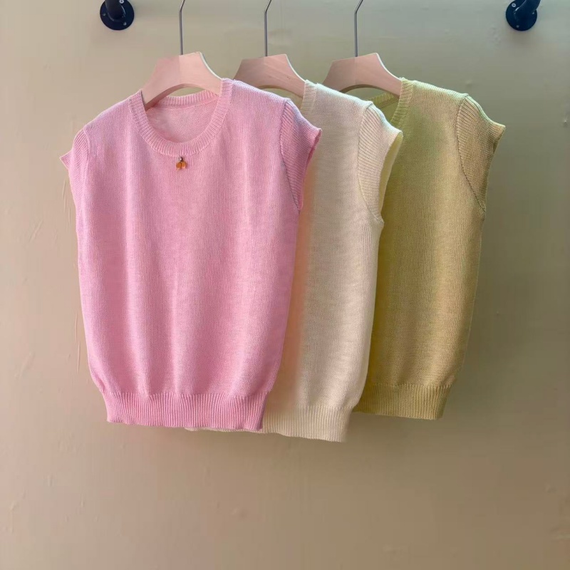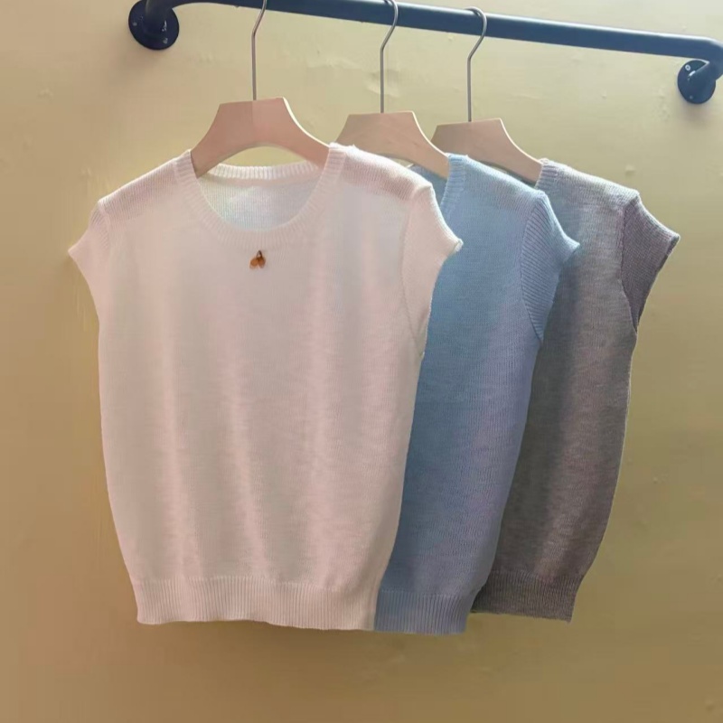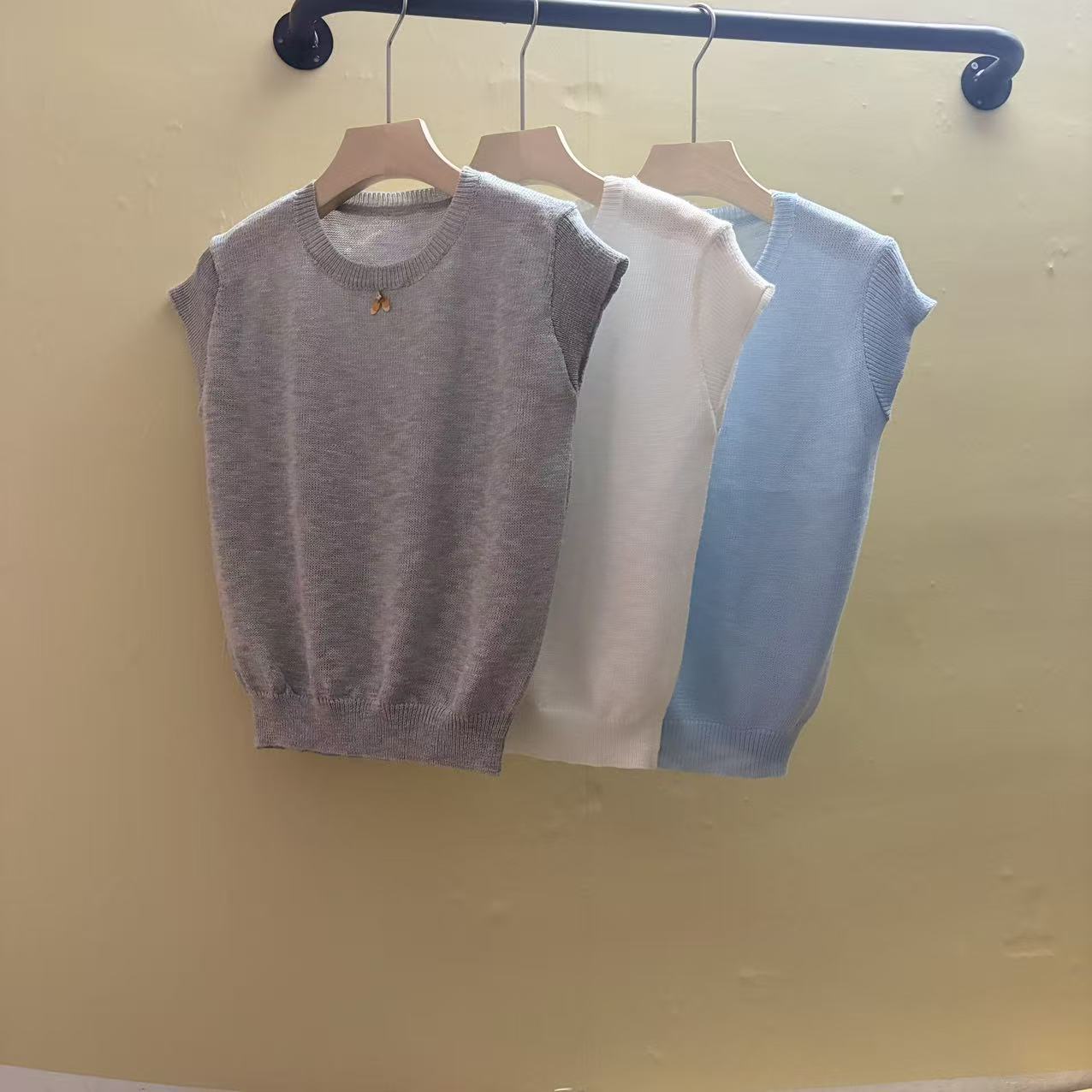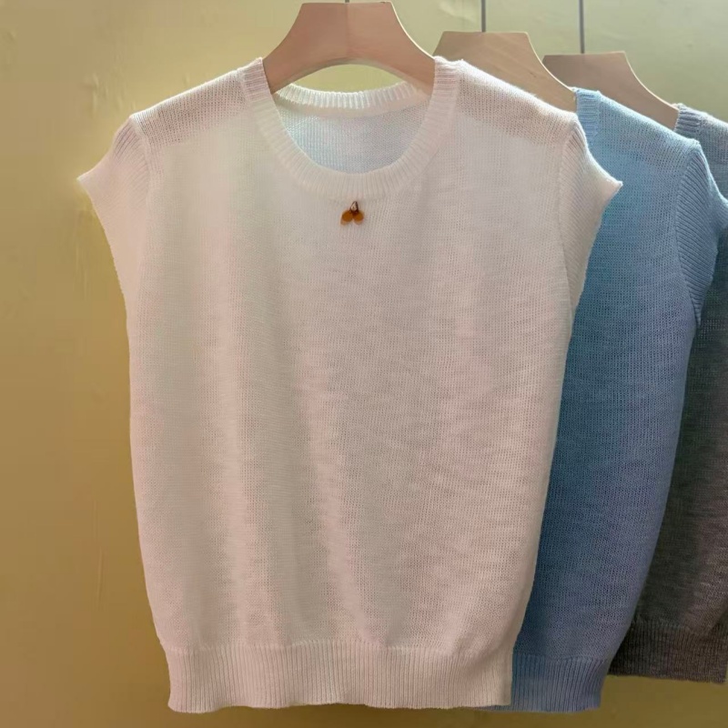 mz 반팔 니트 스웨터 여성 26 여름 질감 센스 부드러운 찹쌀 라운드 넥 슬림해 보이는 느긋한 센스 통기성 맨위