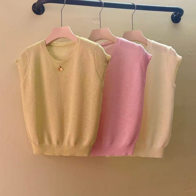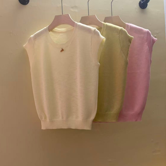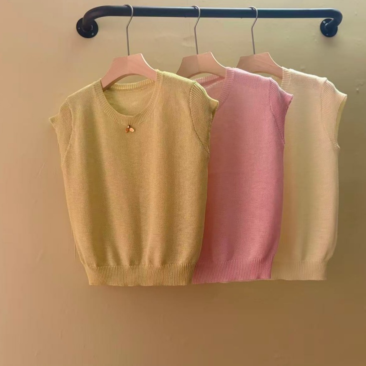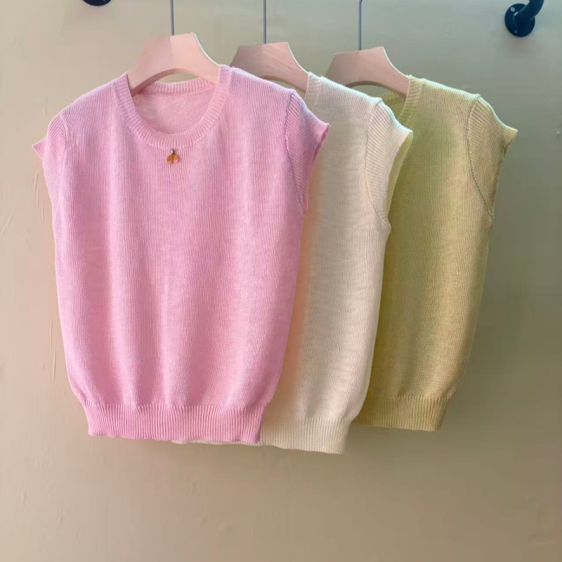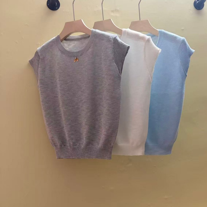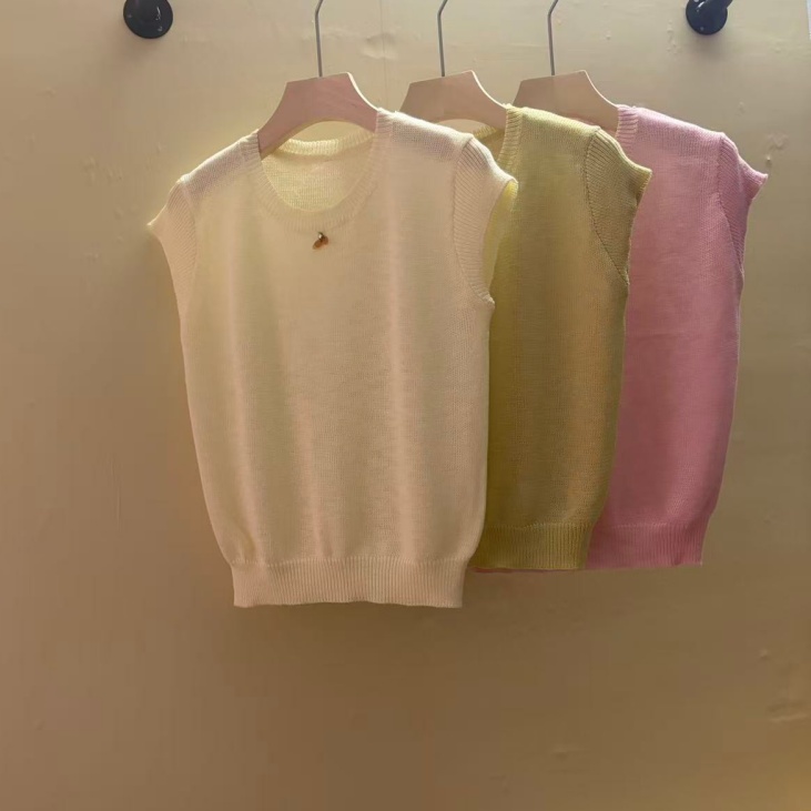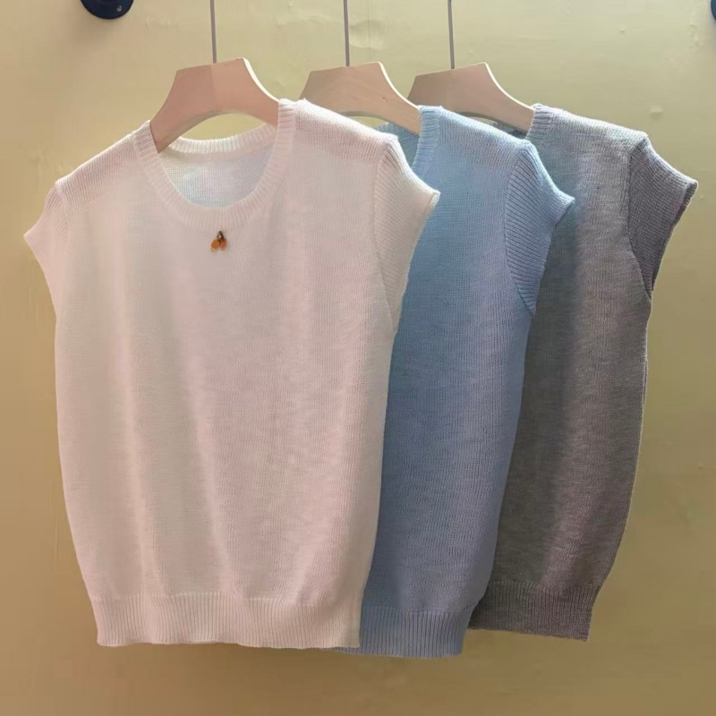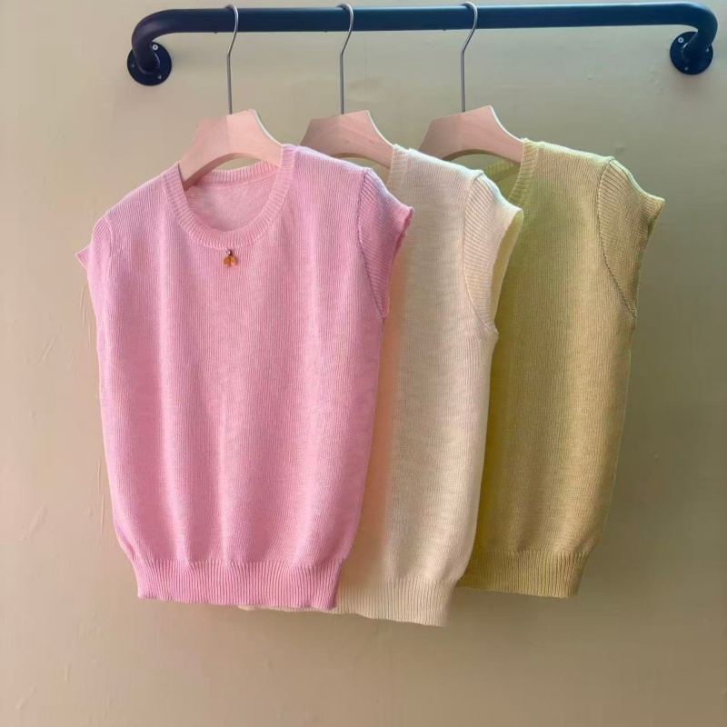 mz 반팔 니트 스웨터 여성 26 여름 질감 센스 부드러운 찹쌀 라운드 넥 슬림해 보이는 느긋한 센스 통기성 맨위